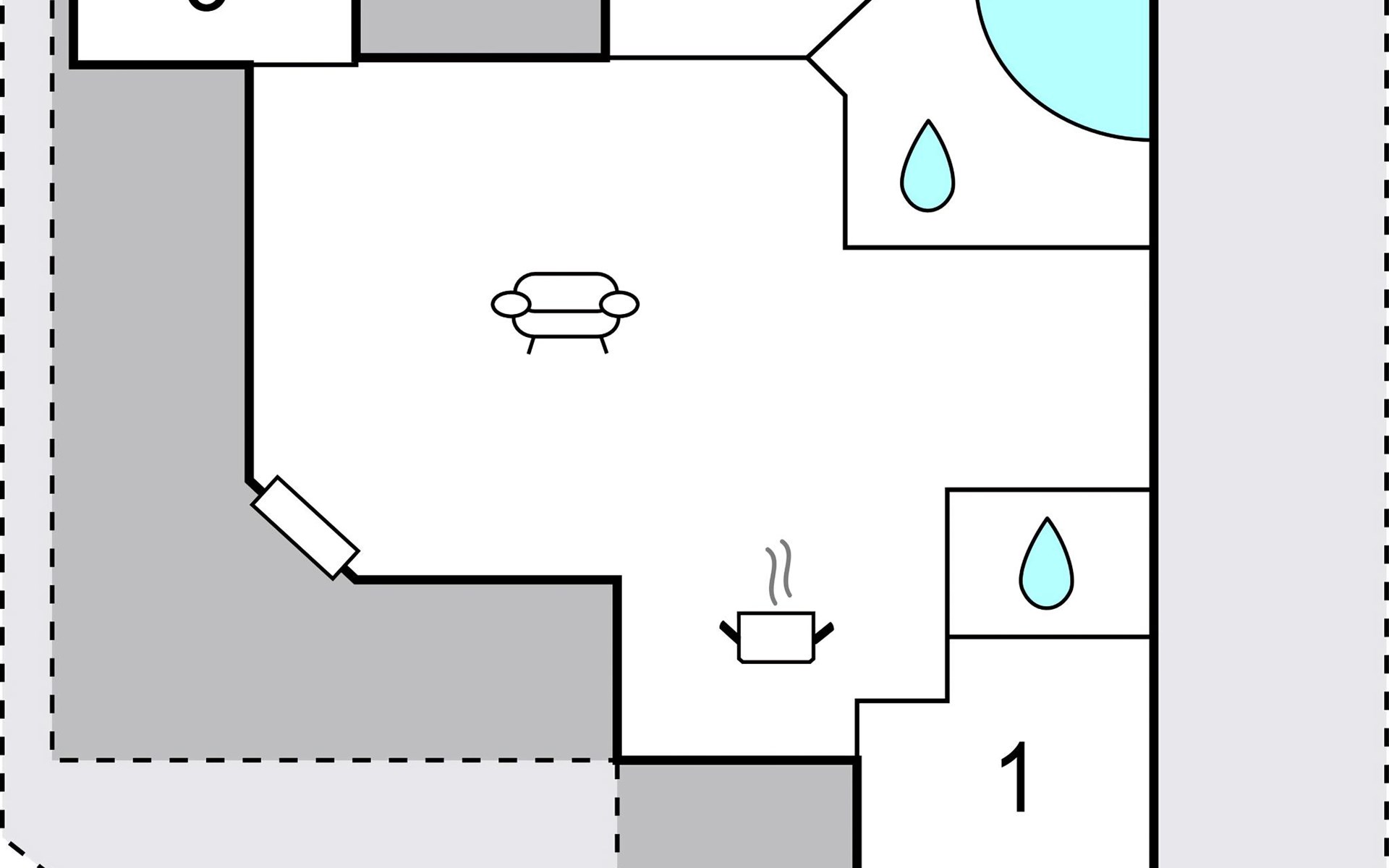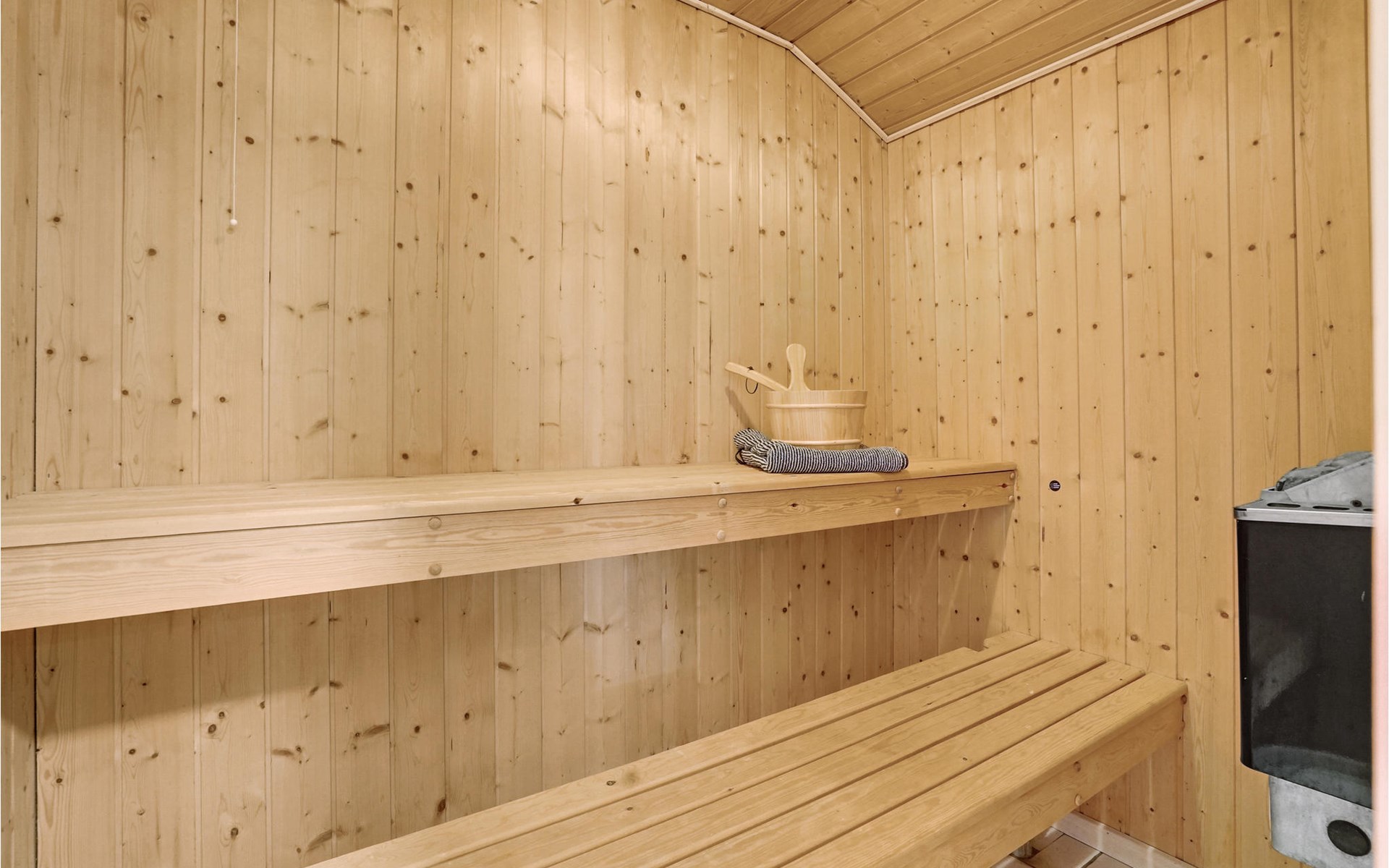 Das Haus verfügt über drei Schlafzimmer, eine Gästetoilette, ein Badezimmer mit Whirlwanne für zwei Personen und eine Sauna.