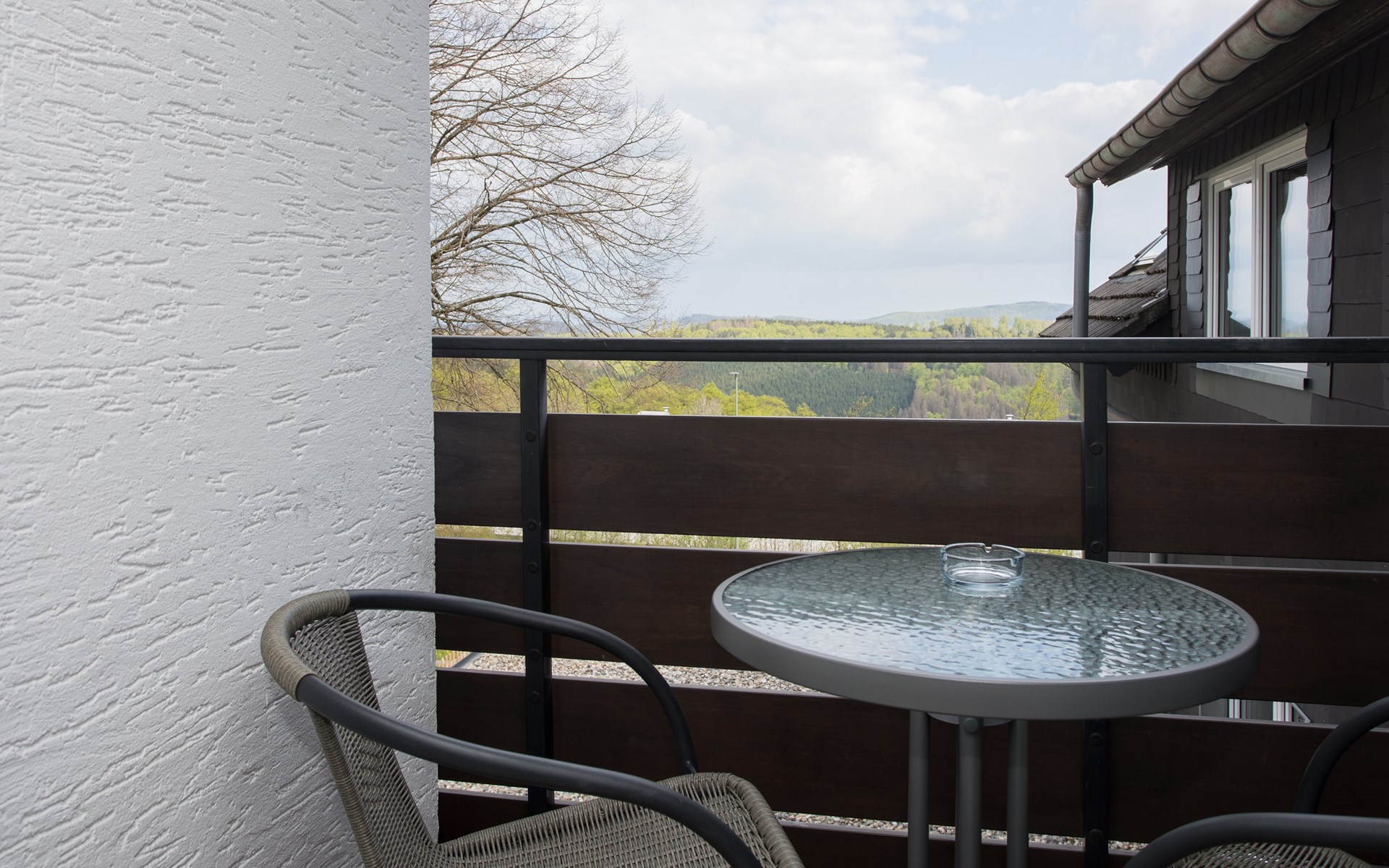 Von der Sitzgelegenheit (Tisch mit 2 Stühlen) auf dem Balkon kann man den Blick über die Bergwelt des Sauerlandes genießen. Hier lässt es sich mit seinem treuen Vierbeiner wunderbar wandern, denn in dieser Unterkunft ist ein Haustier erlaubt. So kann es Sie im Urlaub begleiten. Falls Sie während Ihres Aufenthaltes eine Waschmaschine nutzen möchten, ist dies kostenlos im gemeinsamen Abstellraum möglich, in dem man auch Fahrräder und Skier unterbringen kann.