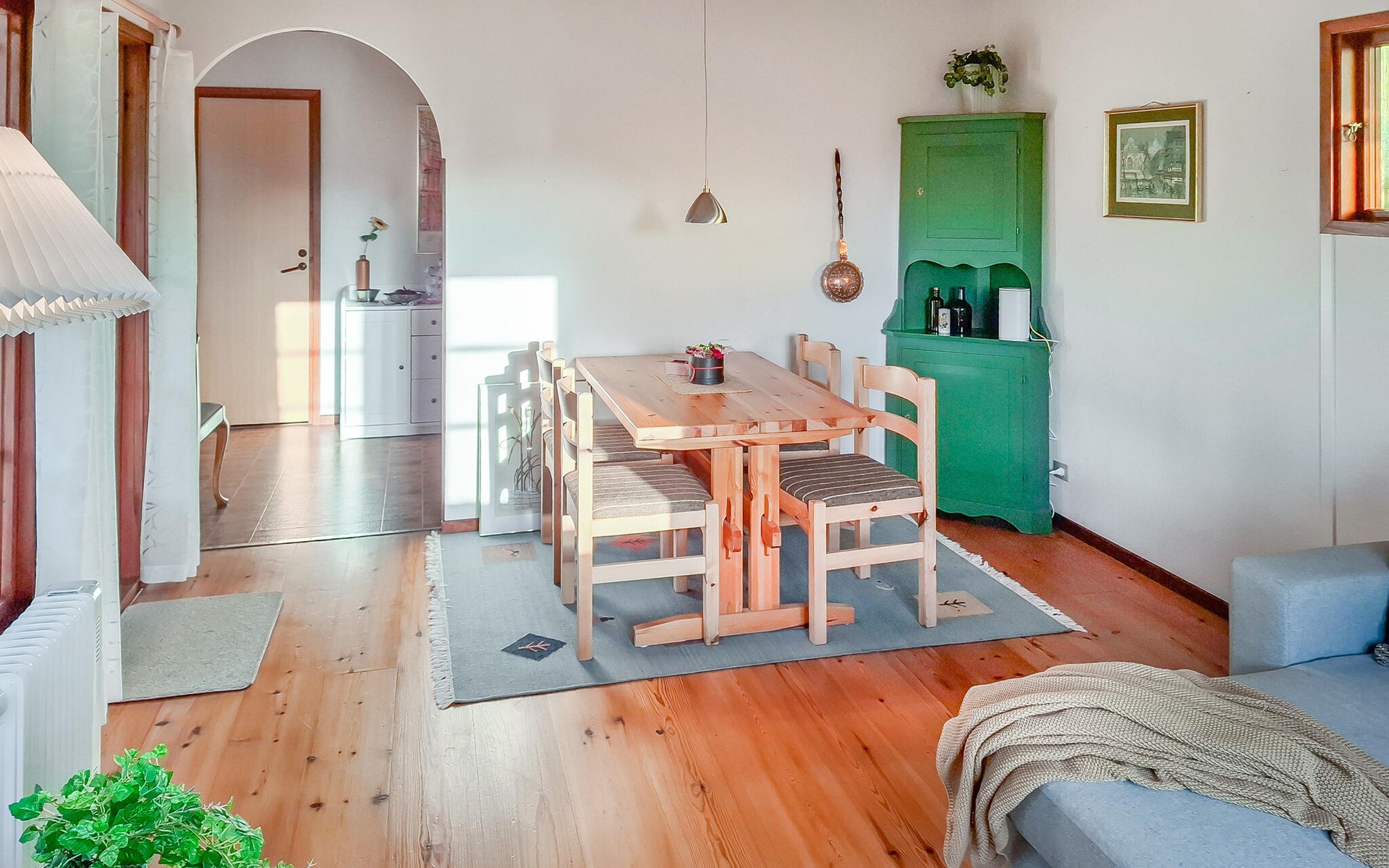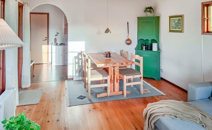 Betreten Sie den einladenden Wohnbereich mit bequemer Sofaecke, Fernseher und liebevoll gestalteter Einrichtung. Lassen Sie den Tag bei einem guten Buch oder einem Film ausklingen oder genießen Sie gesellige Abende im heimelig gestalteten Essbereich. Kochen Sie in der praktischen Küche und bereiten Sie gemeinsam leckere Mahlzeiten zu.