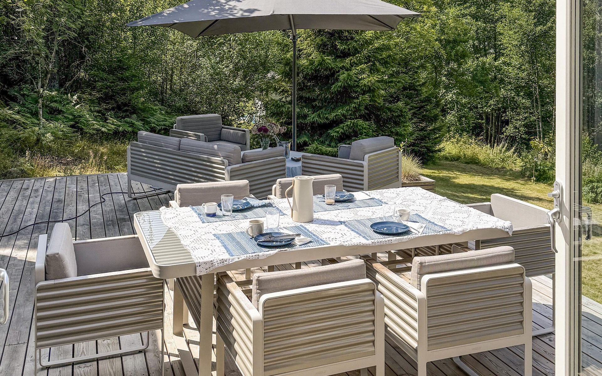 Beginnen Sie den Tag auf großen Holzterrasse, deren Stufen Sie direkt zur Wiese bringen. Frühstücken Sie ausgiebig und lassen Sie den Blick über das weitläufige Naturgrundstück schweifen, bevor Sie Pläne für den kommenden Tag schmieden. Genießen Sie den Abend bei frisch Gegrilltem, einem guten Glas Wein und in entspannter Atmosphäre im Freien.
