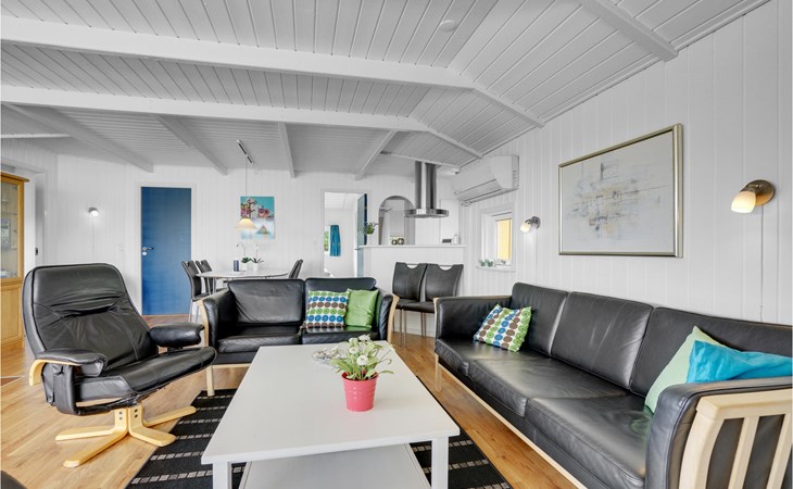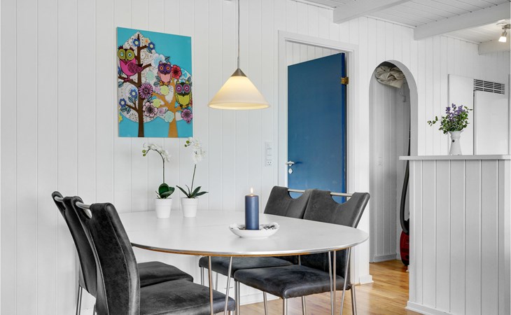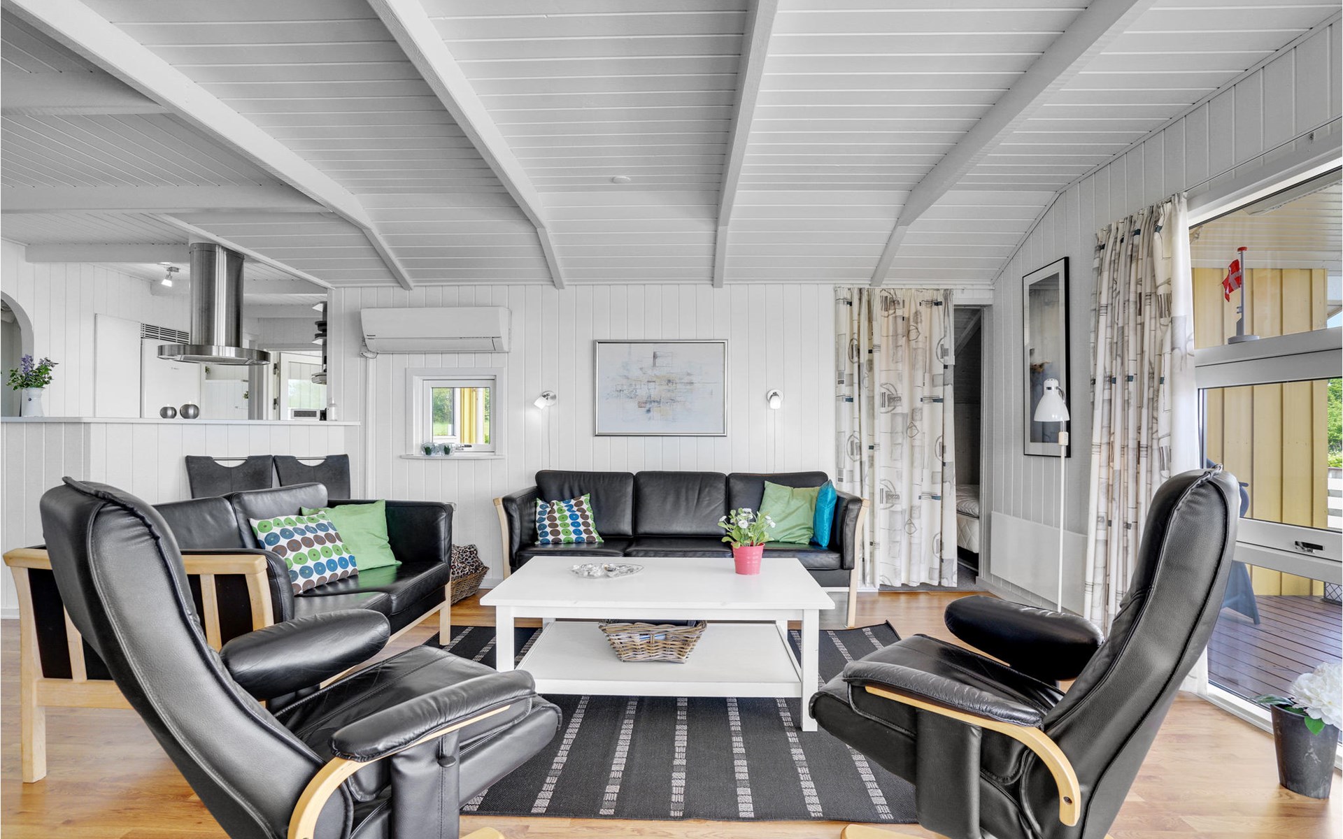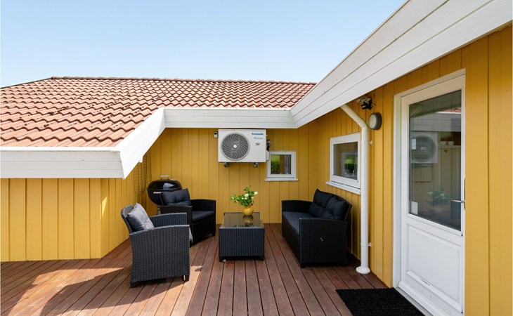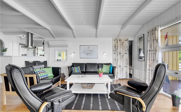 Gepflegtes Ferienhaus mit Panoramablick auf das Wasser im gemütlichen Ferienhausgebiet Hejlsminde. Das Haus liegt auf einem großen und offenen Naturgrundstück, auf dem Sie ungestört sind. Der Innenbereich des Hauses ist hell und komfortabel, mit Wohnzimmer und und offener Küche. Im Wohnzimmer gibt es einen schönen Holzofen für die kühlen Abende. Vom Wohnzimmer aus haben Sie Zugang zur großen, teilweise überdachten Holzterrasse, auf der sich mehrere schöne Ecken mit Aussicht befinden. Es gibt 3 Schlafzimmer, in einem befindet sich ein Schlafsofa von guter Qualität und eine Nische mit 2 Betten im Wohnzimmer. Darüber hinaus gibt es ein geräumiges Badezimmer mit Dusche und Eingang zur Sauna, sowie einer Gästetoilette. Genießen Sie die Gegend bei Hejlsminde am Lillebælt in einer malerischen Gegend in der Nähe von Wald, Strand, Sehenswürdigkeiten und Naturattraktionen. Die Stadt hat einen gemütlichen Hafen und mehrere Orte bieten einen Ausblick auf Fünen. Nutzen Sie die vielen schönen Wander- und Radwege, die in der Natur angelegt sind. Besuchen Sie die Marktstadt Christiansfeld, die zum UNESCO-Weltkulturerbe gehört. Für Kuchenliebhaber ist Christiansfeld auch eine Reise wert, denn die Stadt ist berühmt für ihren köstlichen Lebkuchen. Nicht weit von Hejlsminde entfernt liegt das wunderschöne Naturgebiet Skamlingsbanken. In Kolding und Umgebung gibt es eine Vielzahl von Erlebnissen - unabhängig davon, ob Sie Urlaub mit Kindern machen, Aktivurlaub wünschen oder sich für Kunst und Kultur begeistern. Dazu gehören das Kunstmuseum Trapholt, das Koldinghus, die Fußgängerzonen mit der gemütlichen Café-Umgebung oder das Kolding Storcenter, das mit seinen vielen Geschäften unter einem Dach zum Power-Shopping einlädt.