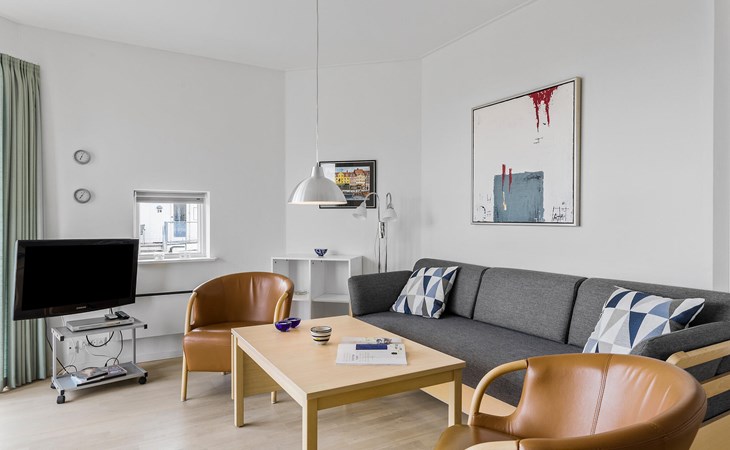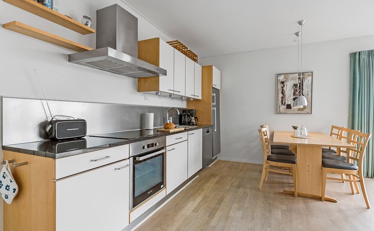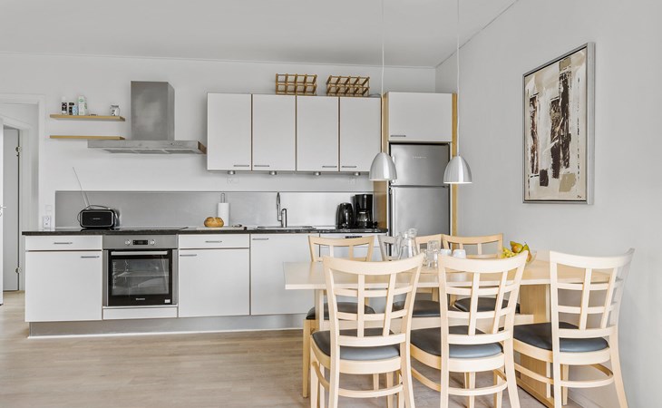 Genießen Sie Ihre Urlaubszeit in Gudhjem, einem malerischen Küstenort auf der Insel Bornholm, der mit seinem charmanten Hafen und den bunten Häusern sofort verzaubert. Genießen Sie die entspannte Atmosphäre bei einem Spaziergang entlang der Hafenpromenade oder verweilen Sie in einem der gemütlichen Cafés mit Blick aufs Meer. Für Aktivurlauber bietet die Umgebung zahlreiche Möglichkeiten. Wandern Sie entlang der beeindruckenden Klippenpfade und entdecken Sie die faszinierende Felsformation Helligdomsklipperne. Radfahren ist auf Bornholm ein besonderes Vergnügen, dank der gut ausgebauten Radwege, die durch idyllische Landschaften und entlang der Küste führen. Kulturell Interessierte sollten die nahegelegene Rundkirche von Østerlars besuchen, eine der ältesten und größten ihrer Art in Dänemark. Ein weiterer Höhepunkt ist das Kunstmuseum Bornholm, das eine beeindruckende Sammlung regionaler Kunst beherbergt. Für einen entspannten Tag am Meer besuchen Sie die Sandstrände von Balka und Dueodde, die mit ihrem feinen weißen Sand und kristallklaren Wasser begeistern.
