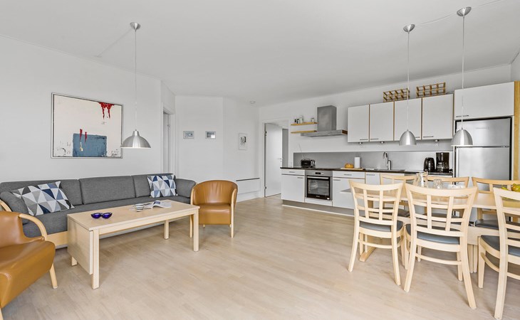 Willkommen in dieser einladenden Ferienwohnung, als Teil einer Wohnanlage, die zahlreiche gleichgeschnittene Wohnungen anbietet. Falls Sie mit befreundeten Familien oder der Großfamilie verreisen wollen, finden Sie hier eine große Auswahl an Unterkünften, um Ihren Urlaub gemeinsam zu verbringen. Treten Sie in diese schöne und lichtdurchflutete Wohnung ein und genießen das helle Ambiente und die Behaglichkeit, die durch die hohe Qualität der Einrichtung geschaffen wird. Gehen Sie Ihrem Ferienalltag beim Kochen, Essen, Spielen und Relaxen nach und genießen die beiden Terrassenbereiche sowohl vor der Eingangstüre als auch im Anschluss an das Wohnzimmer. Erhaschen Sie dabei auch einen Blick auf das Meer, das nicht weit zu Fuß entfernt ist.