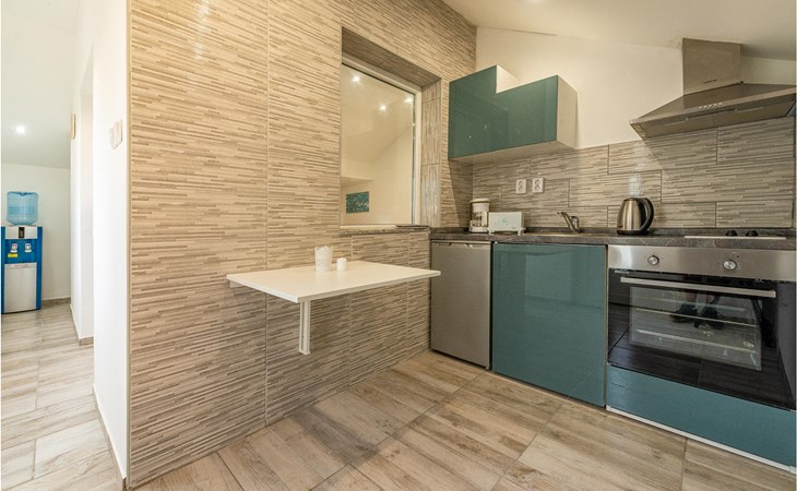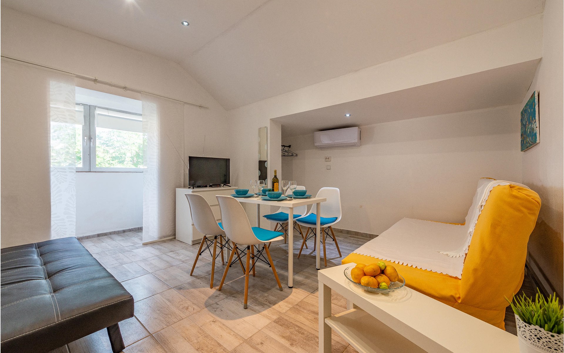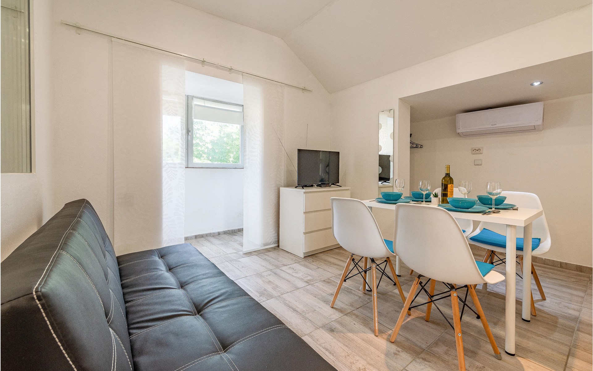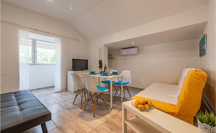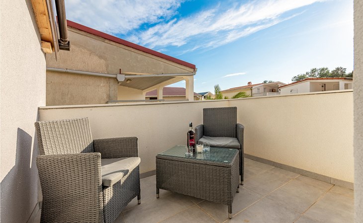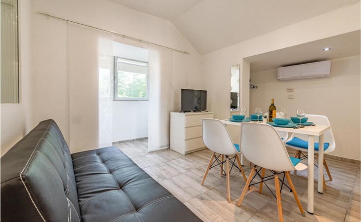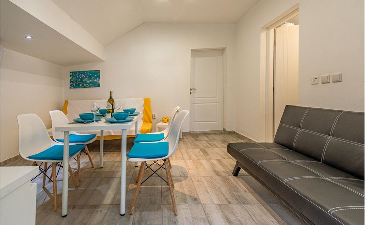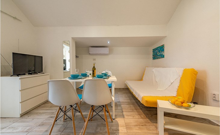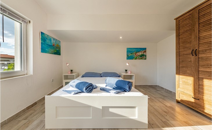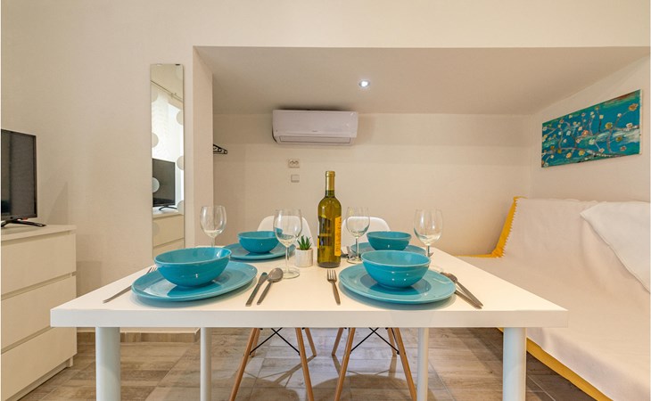 Die Wohnung begrüßt ihre Gäste im 1. Stock eines Hauses. Mit ihrer modernen und ansprechenden Einrichtung ist sie der ideale Ort für einen erholsamen Urlaub zu jeder Jahreszeit. Eine Klimaanlage sorgt auch in heißen Sommern für angenehme Raumtemperaturen.