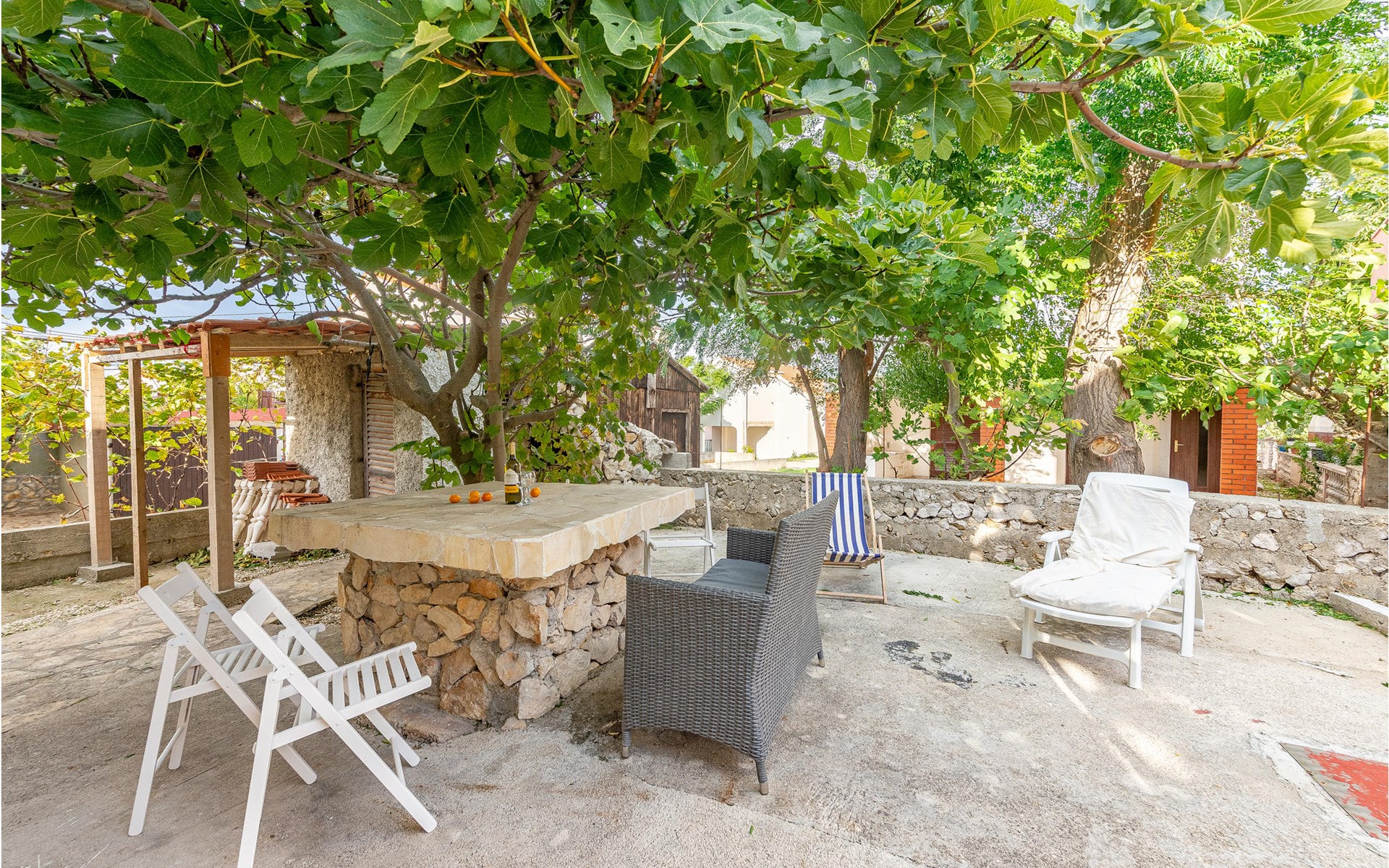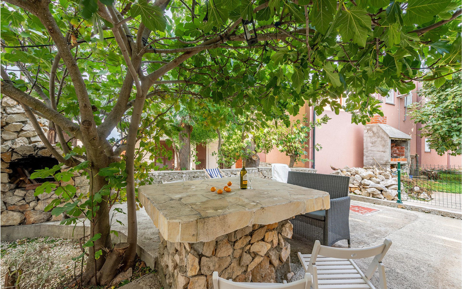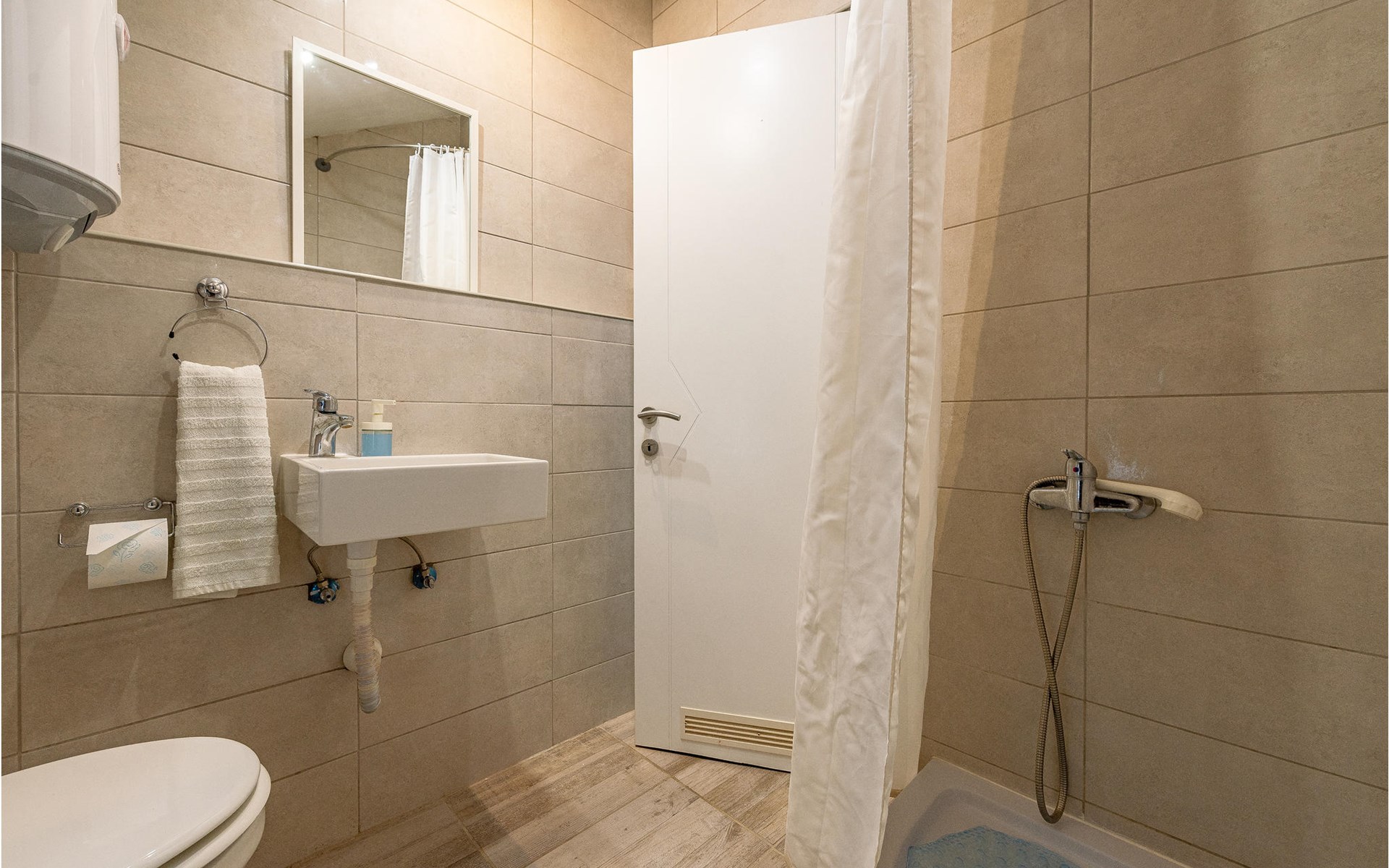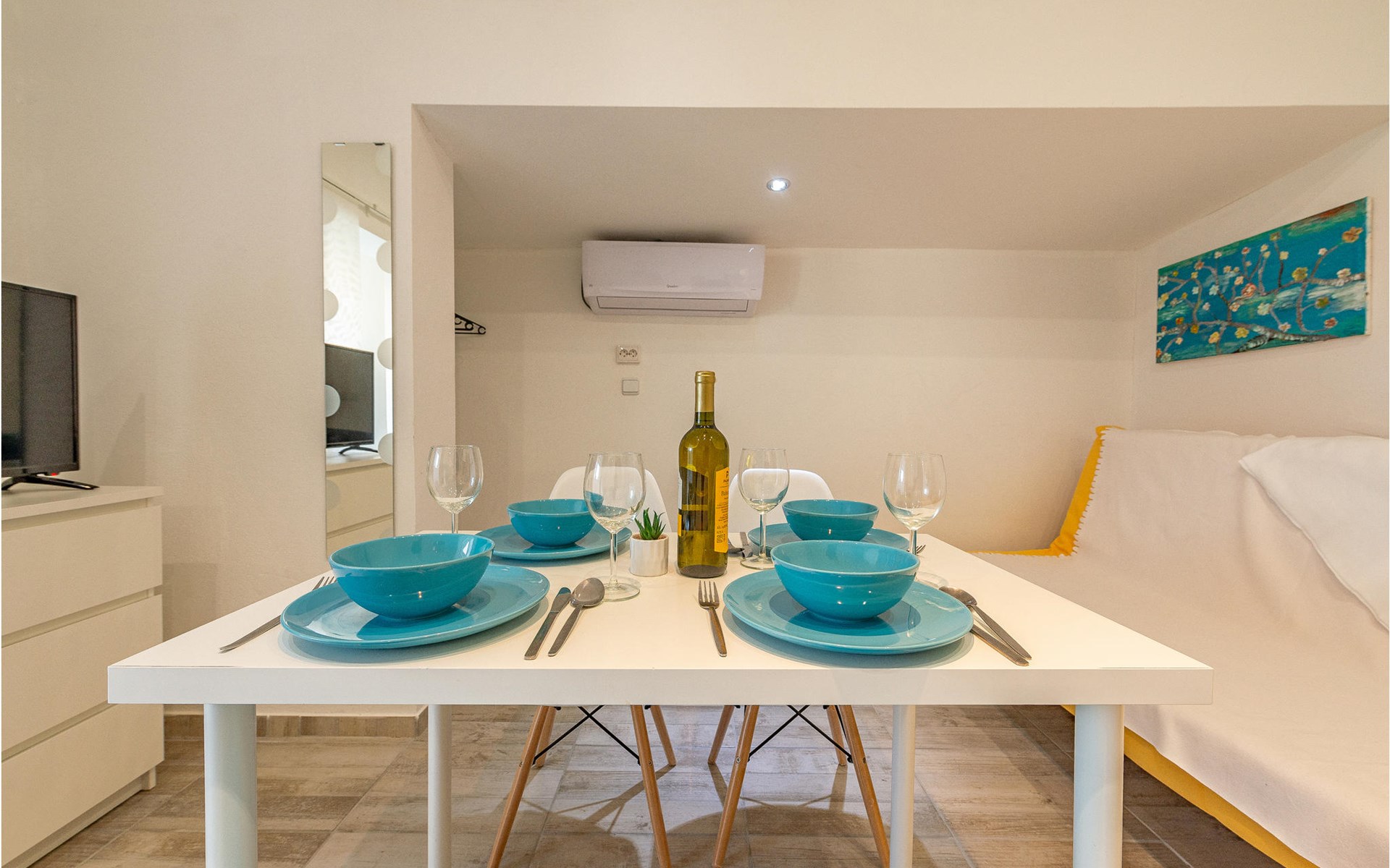 Die Wohnung begrüßt ihre Gäste im 1. Stock eines Hauses. Mit ihrer modernen und ansprechenden Einrichtung ist sie der ideale Ort für einen erholsamen Urlaub zu jeder Jahreszeit. Eine Klimaanlage sorgt auch in heißen Sommern für angenehme Raumtemperaturen.