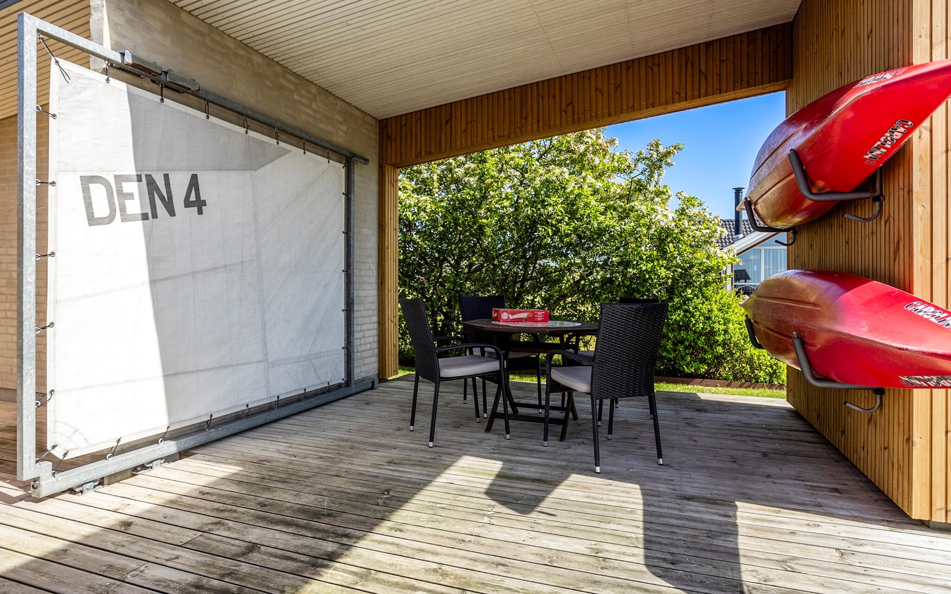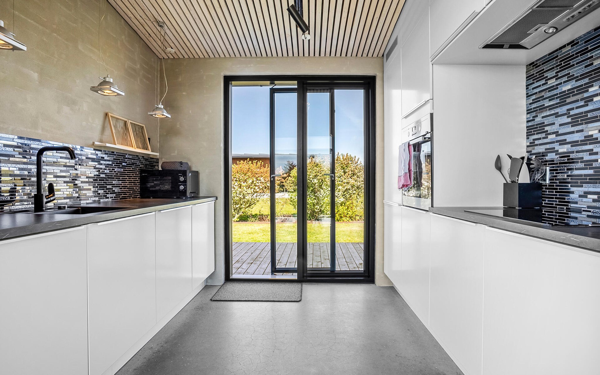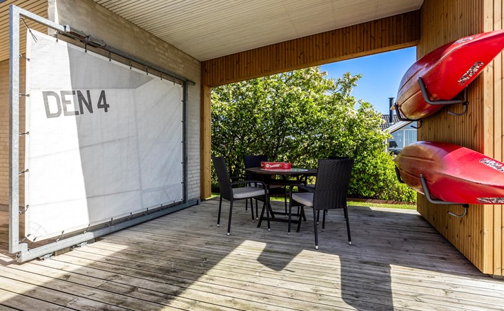 Das Haus verfügt über eine teilweise überdachte Terrasse mit Blick auf den Fjord. Sollte es auf der Terrasse zu windig sein, haben Sie die Möglichkeit, sich in den windgeschützten Sonnenhof zurückzuziehen.
