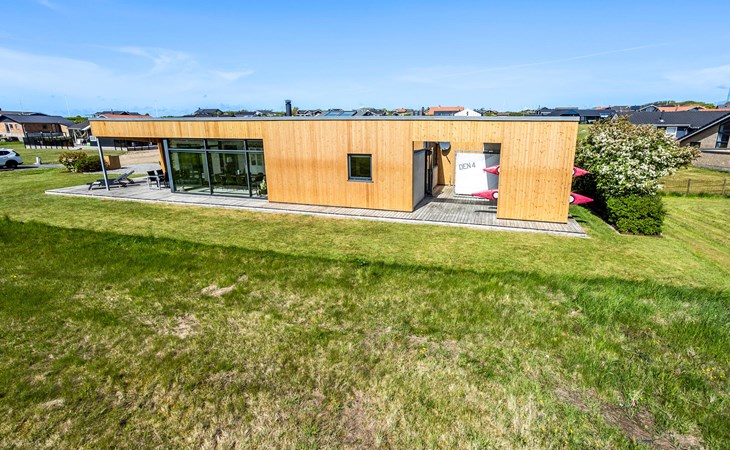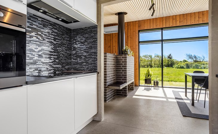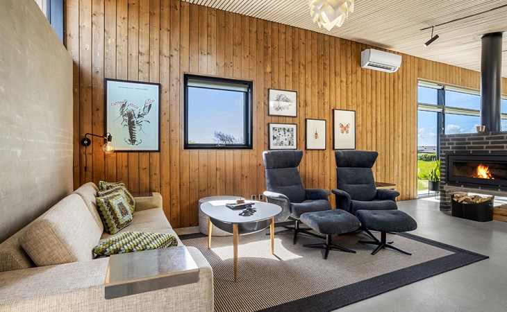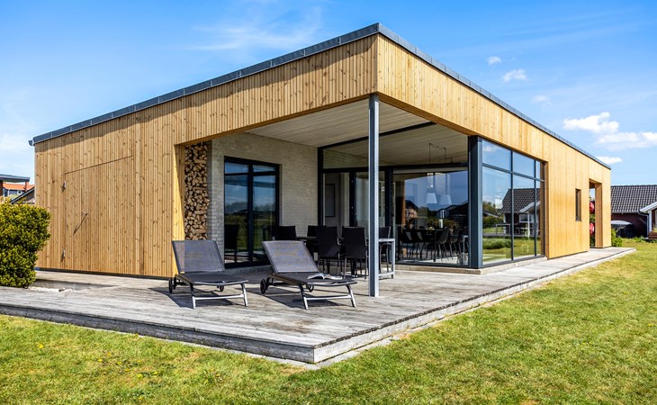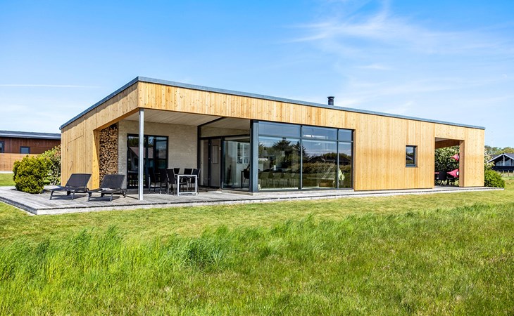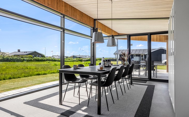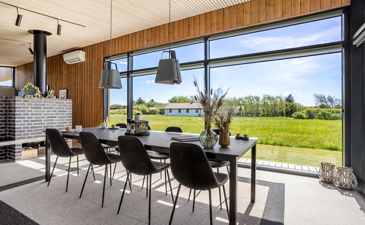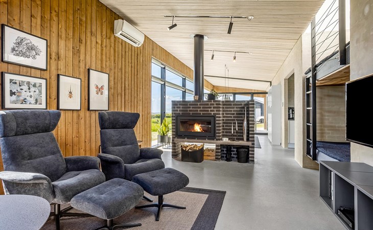 Dieses Ferienhaus liegt mit Blick über den Limfjord. Das von einem Architekt entworfene Haus ist aus erwählten und für die Region typischen Materialien gebaut worden. Besonders hervorzuheben sind die weiten Fensterpartien und der offene Dachfirst, beides Faktoren, die den fantastischen Lichteinfall begünstigen.