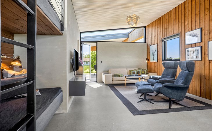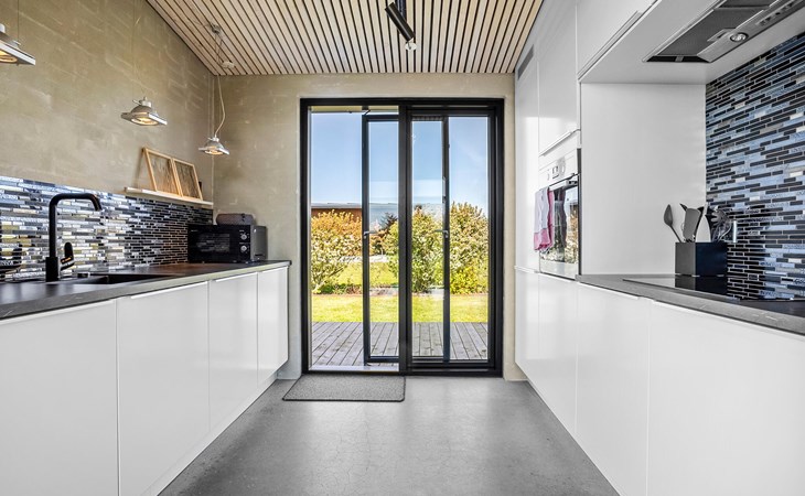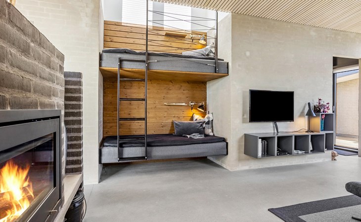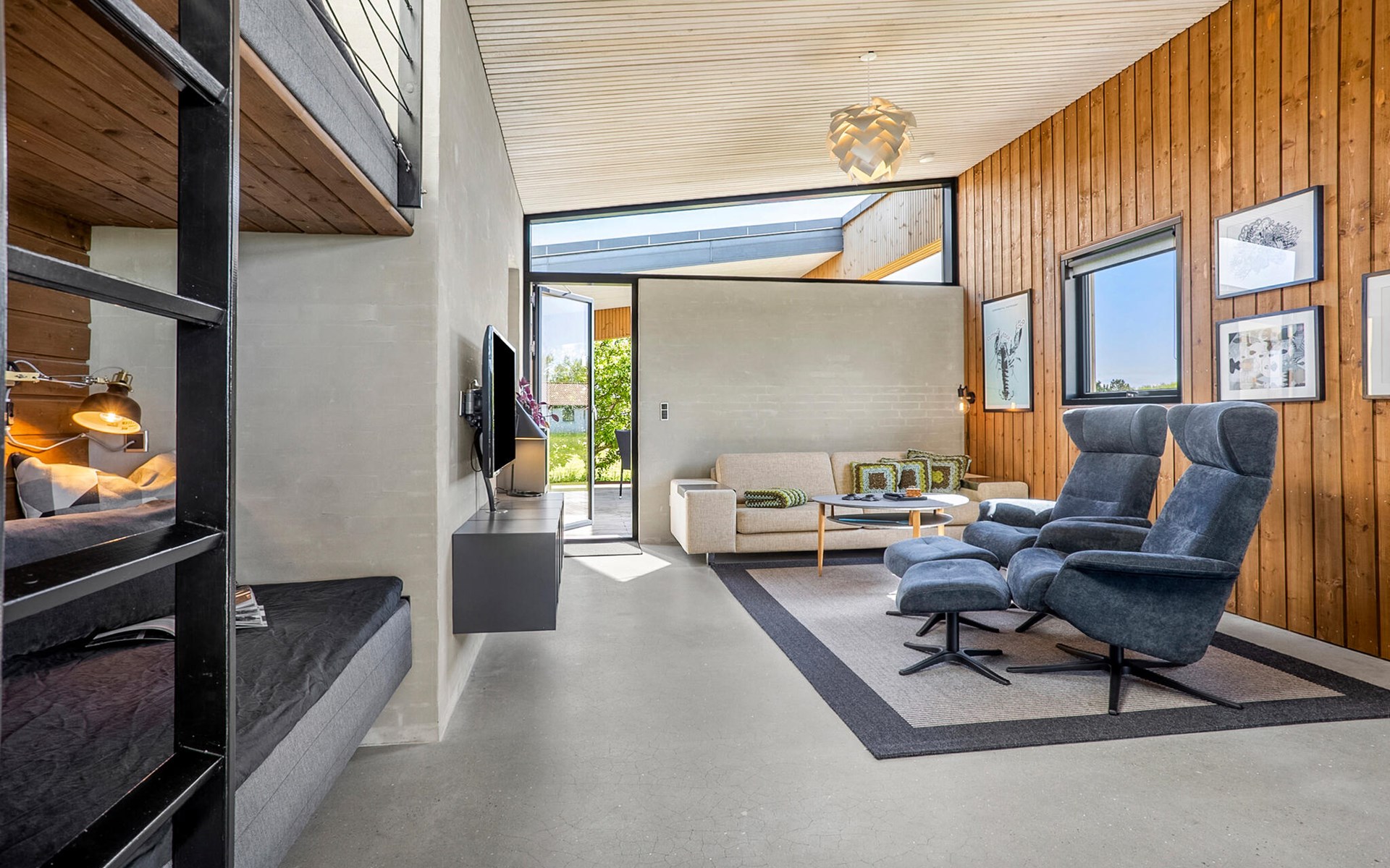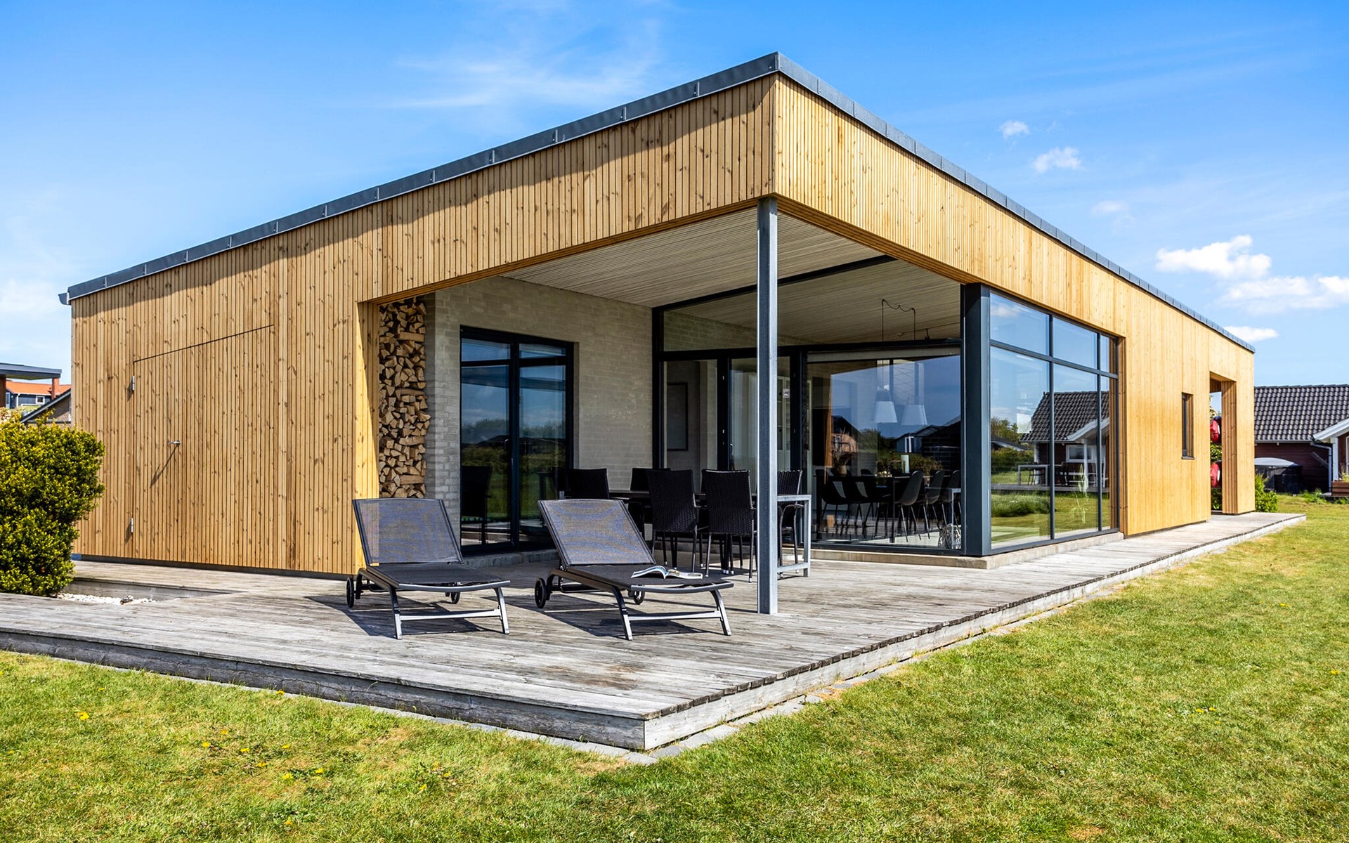 Dieses Ferienhaus liegt mit Blick über den Limfjord. Das von einem Architekt entworfene Haus ist aus erwählten und für die Region typischen Materialien gebaut worden. Besonders hervorzuheben sind die weiten Fensterpartien und der offene Dachfirst, beides Faktoren, die den fantastischen Lichteinfall begünstigen.