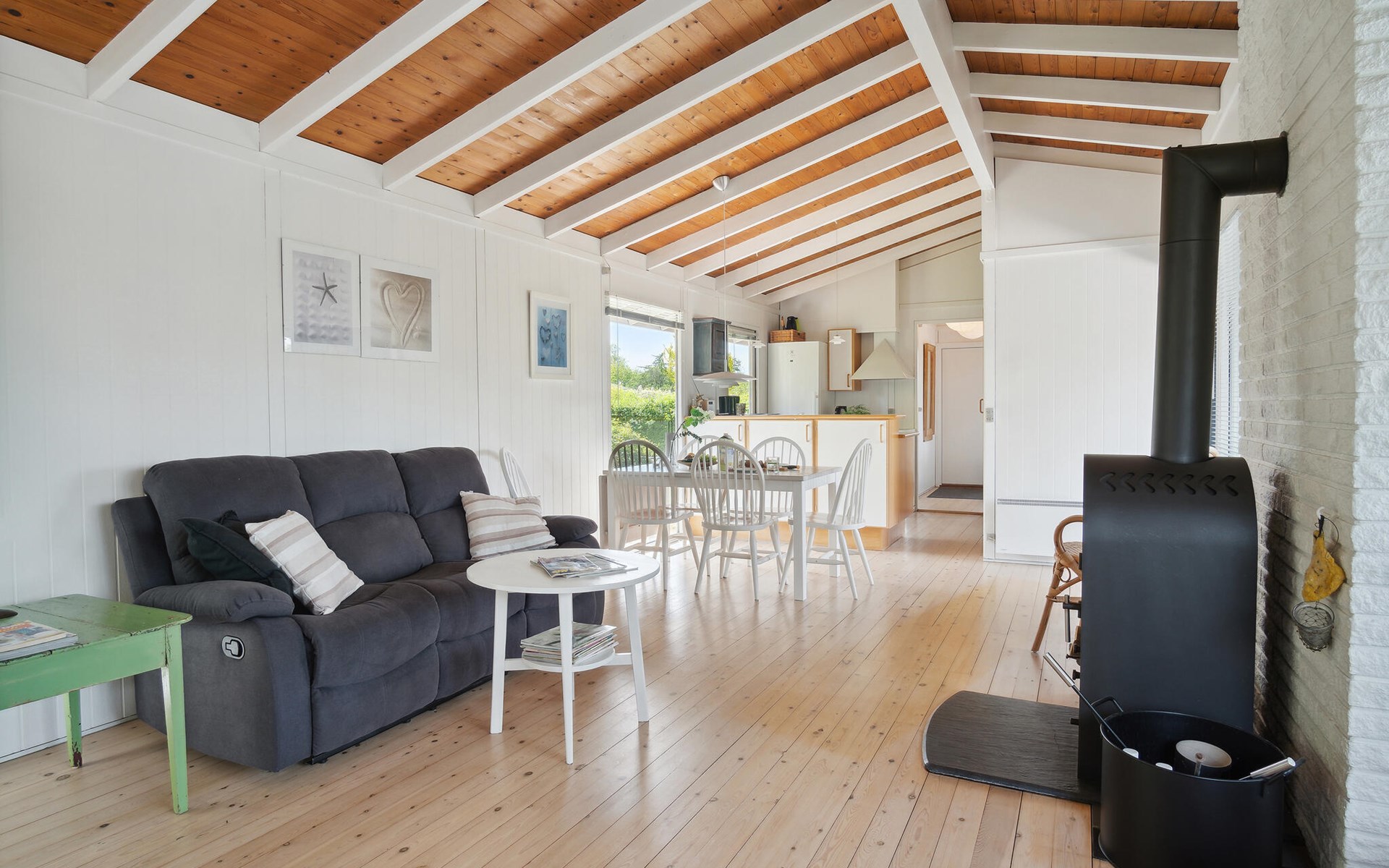 Kommen Sie hier an und fühlen sich wohl. Das Haus empfängt Sie mit einfachem Komfort und lädt Sie ein die schönsten Wochen im Jahr hier zu verbringen. Genießen Sie gemeinsame Stunden beim Spielen am Esstisch oder einem gemütlichen Filmabend auf dem Sofa, das vom knisternden Kaminfeuer vervollständigt wird. Treten Sie vom Wohnraum auf die Terrasse, die in den Sommermonaten zu Ihrem zweiten Wohnzimmer wird. Setzen Sie sich in die Sonne oder genießen den Schatten unter den Dächern. Am Abend können Sie zusammen grillen und Ihren Kindern beim Spielen und Toben auf dem Rasen zuschauen.