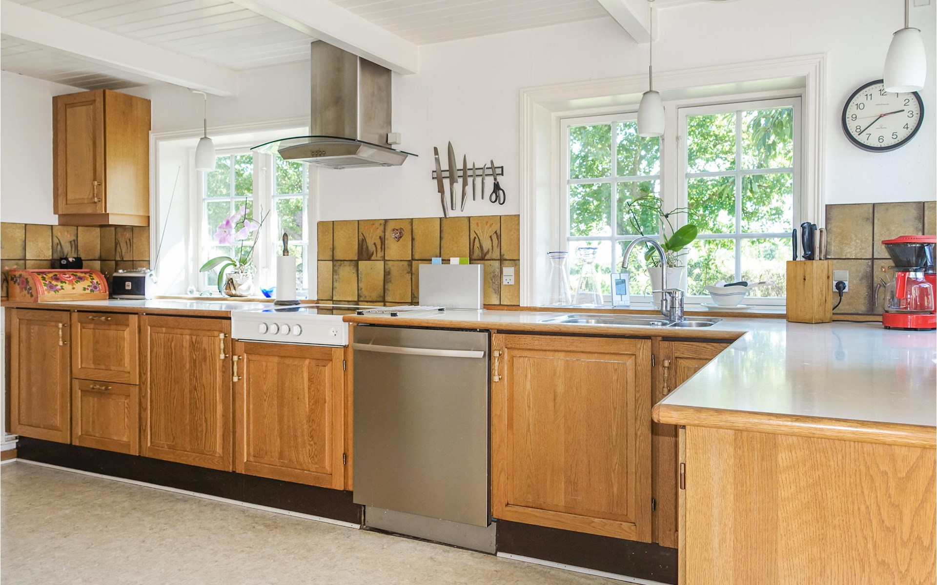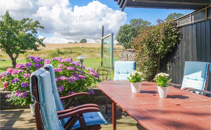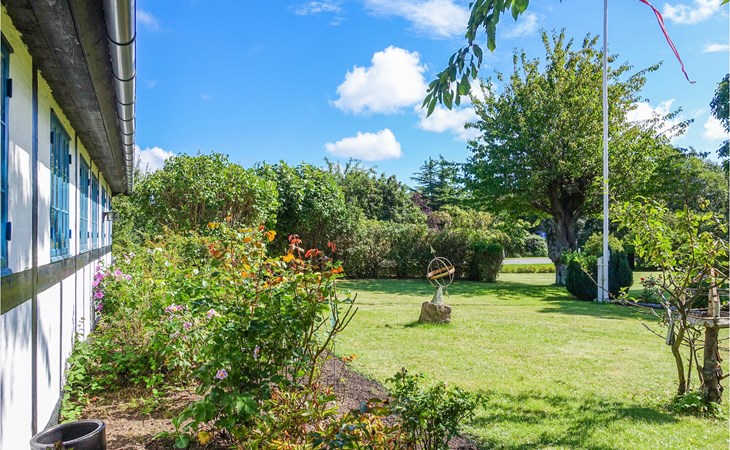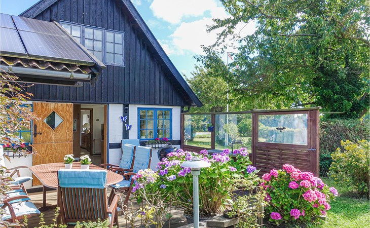 Bei schönem Wetter können Sie Ihre Ferienzeit auf der gemütlichen Terrasse mit Loungemöbeln und Grill verlegen. Die Kinder können sich im schönen, großen Garten mit zwei Fußballtoren und einem Sandkasten vergnügen. Das Grundstück ist neben Feldern gelegen und eröffnet zwischen den Bäumen einen wunderbaren Blick auf das Meer. Bis zum nächsten Badesteg sind es nur 200 Meter, so dass Sie nur einen Katzensprung vom nächsten Sprung ins Wasser entfernt sind.