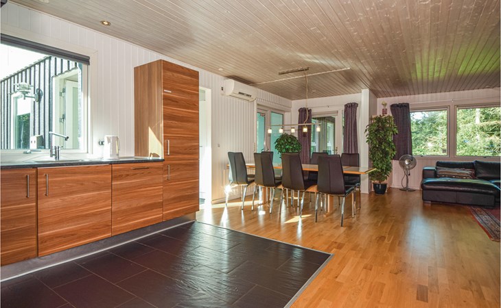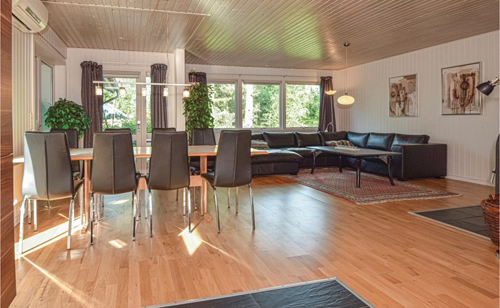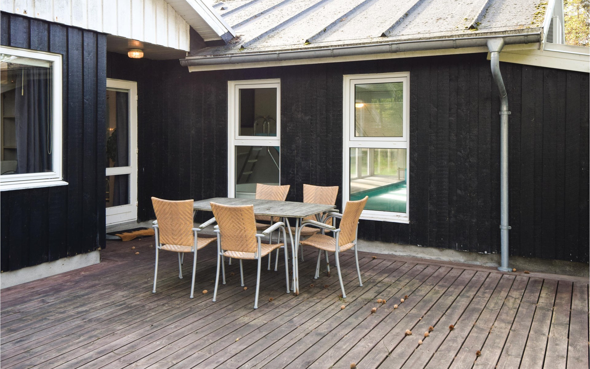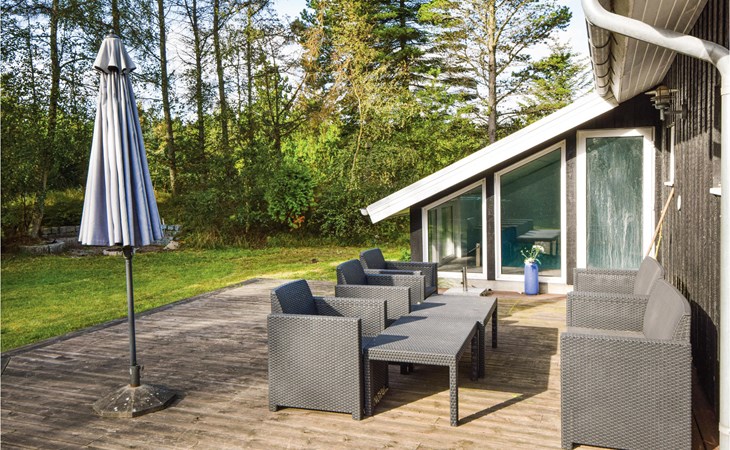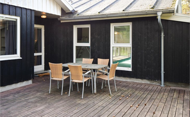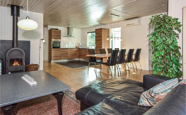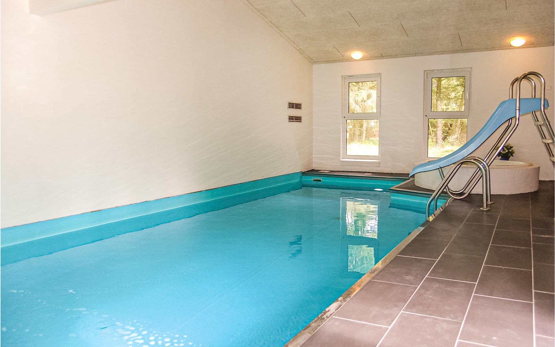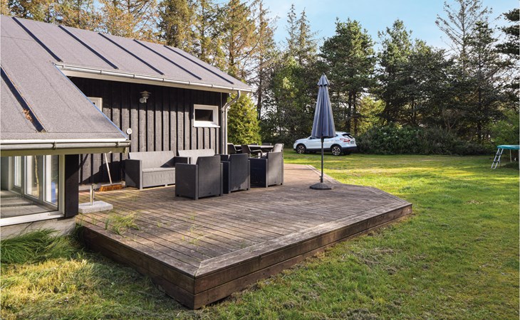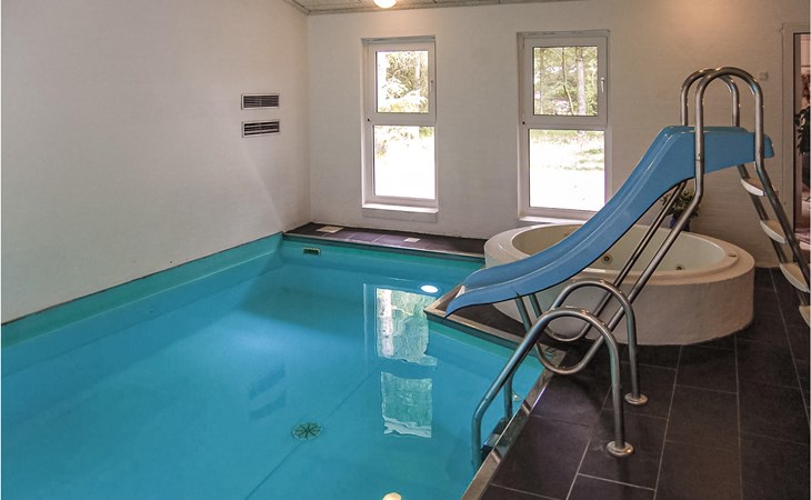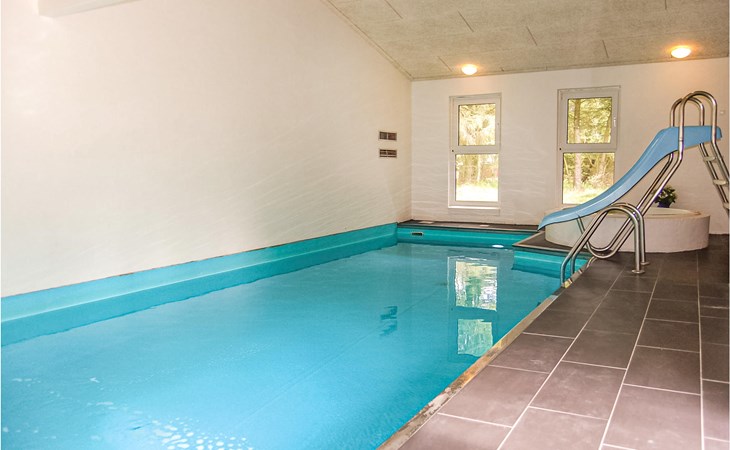 Dieses schöne Ferienhaus liegt auf einem großen, geschlossenen Naturgrundstück im östlichen Teil von Blåvand. Ein großes Naturgebiet, das sich bis zum Strand erstreckt, liegt nur wenige Gehminuten entfernt. Die praktische Raumverteilung sowie die zwei Badezimmer machen das Haus auch für zwei Familien ideal. Die Attraktion des Hauses ist jedoch ohne Zweifel der 27 m² große Swimmingpool mit Rutschbahn und Kinderbecken. Hier kann sich groß und klein stundenlang und bei jedem Wetter tummeln. Sauna ist auch im Haus vorhanden. Das Haus ist modern eingerichtet mit hübschen Möbeln, die gut zur übrigen Einrichtung passen.