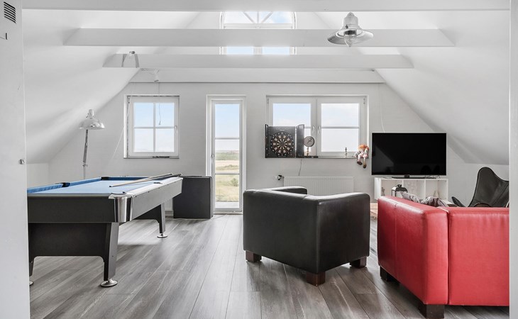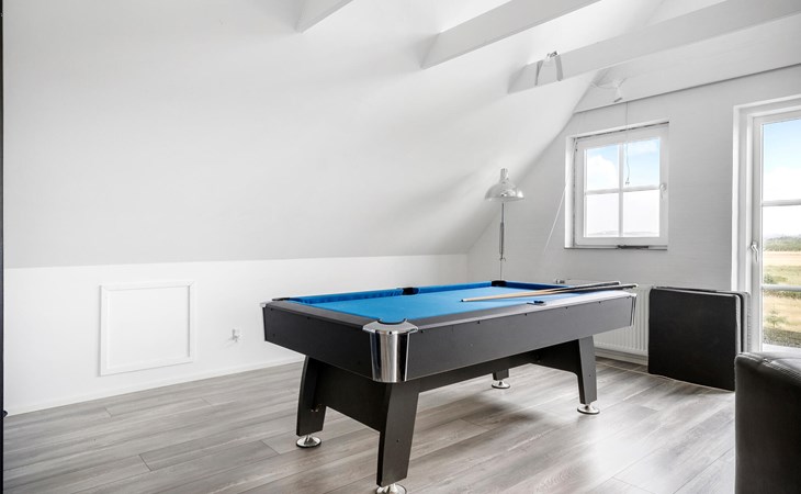 Erleben Sie die Ruhe und Schönheit der dänischen Westküste in diesem geräumigen Ferienhaus, das nur einen kurzen Spaziergang vom malerischen Vejlby Klit Strand entfernt liegt. Dieses Haus bietet Ihnen den idealen Rückzugsort für einen erholsamen Urlaub. Die hellen, freundlich gestalteten Räume schaffen eine einladende Atmosphäre, in der Sie sich sofort wie zu Hause fühlen werden. Die gut ausgestattete Küche bietet alles, was Sie benötigen, um Ihre Lieblingsgerichte zuzubereiten, die Sie im behaglichen Essbereich mit Blick auf den Garten genießen können. Spielen Sie eine Partie Billard oder Dart, bevor Sie zum Strand aufbrechen.