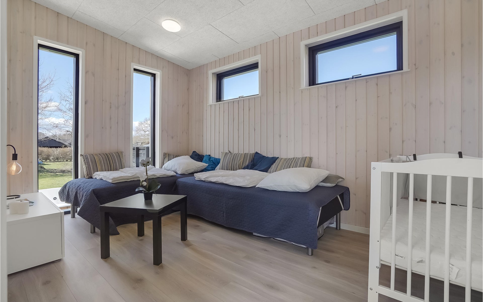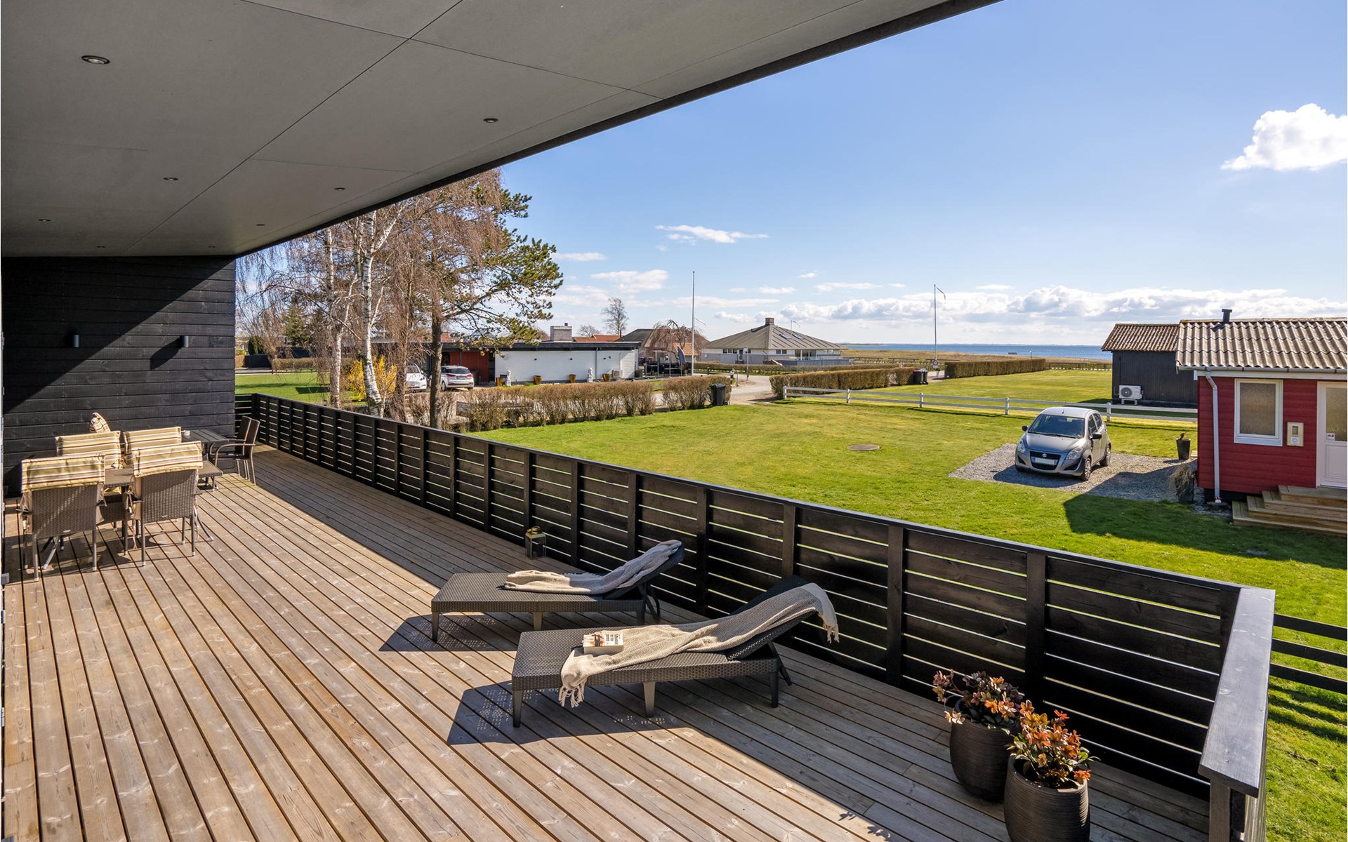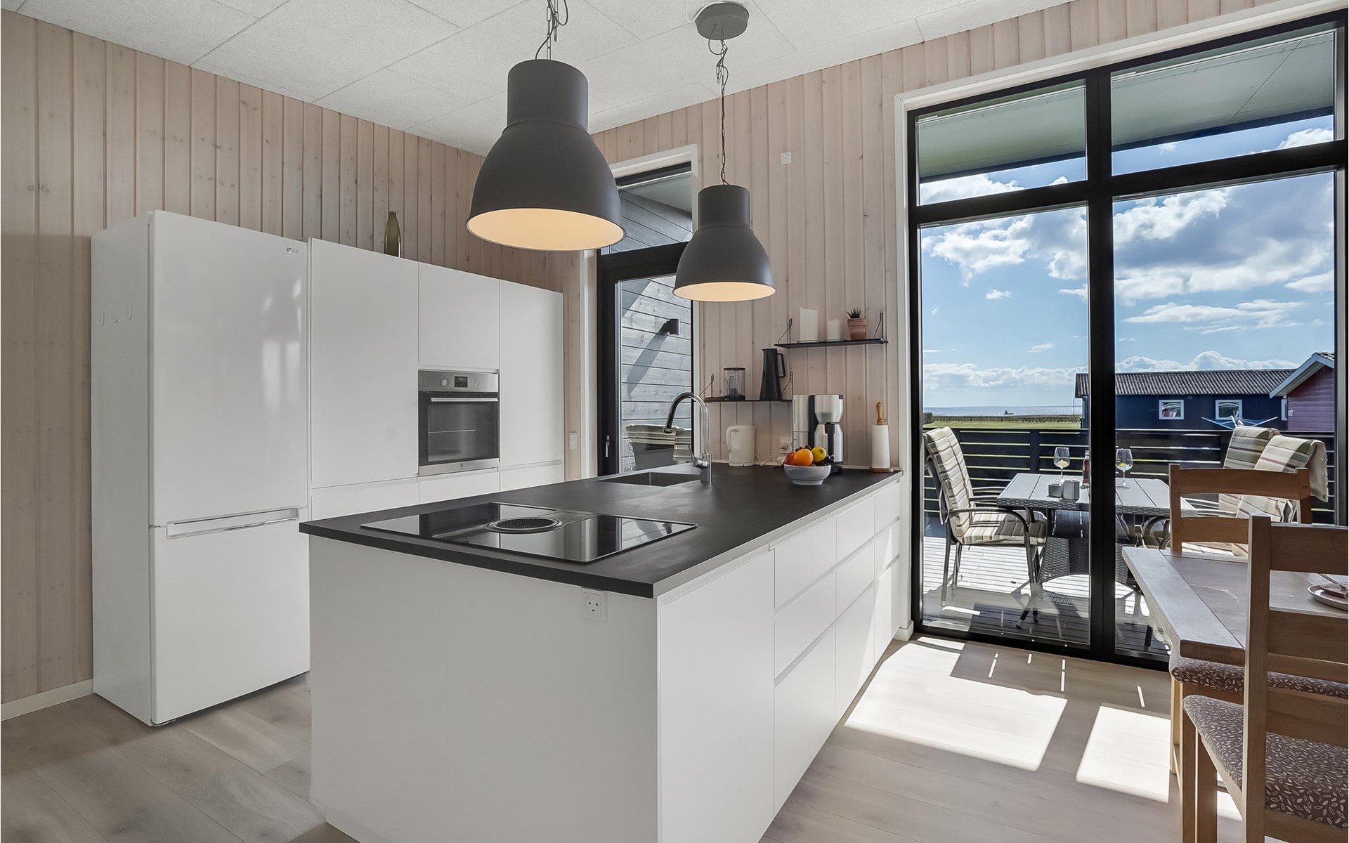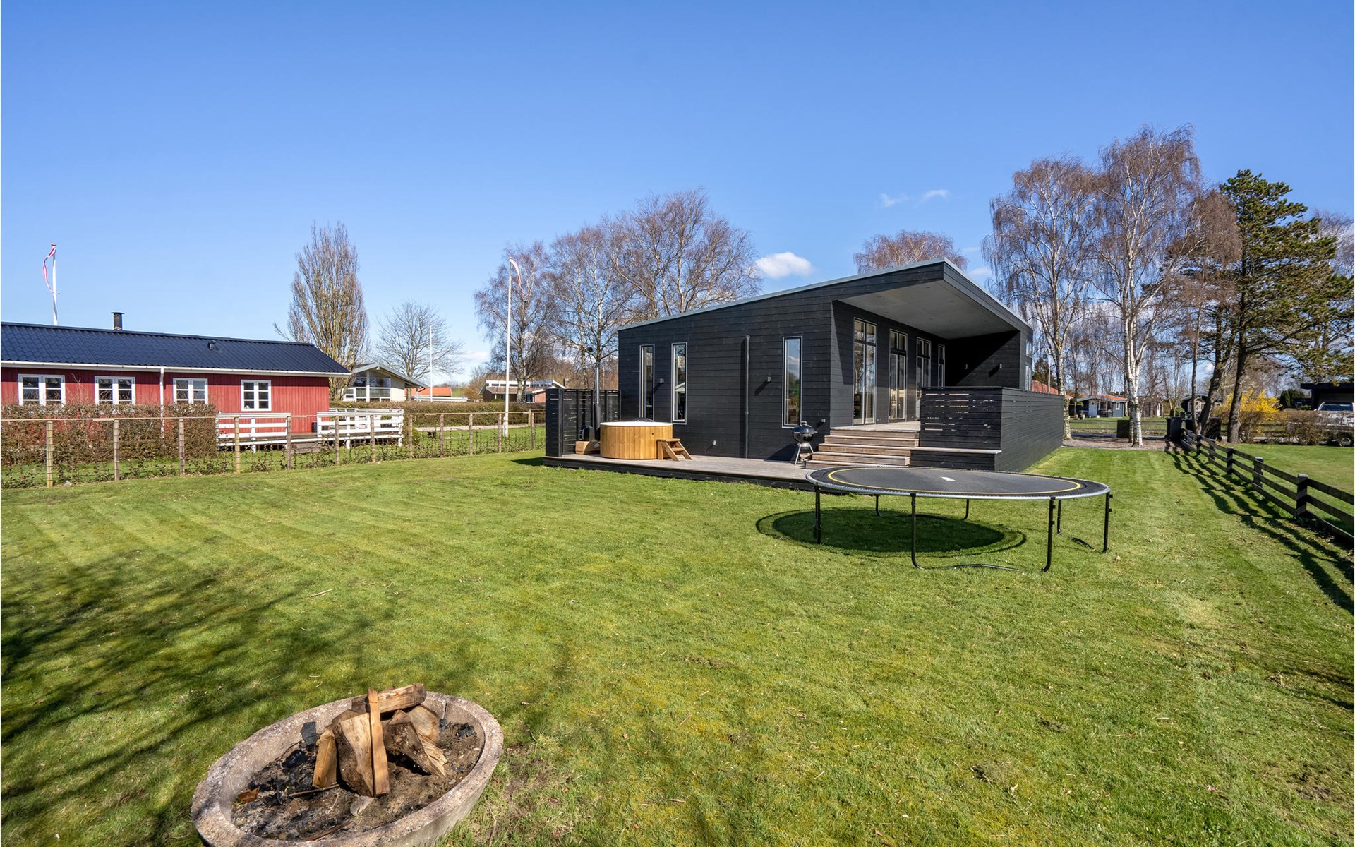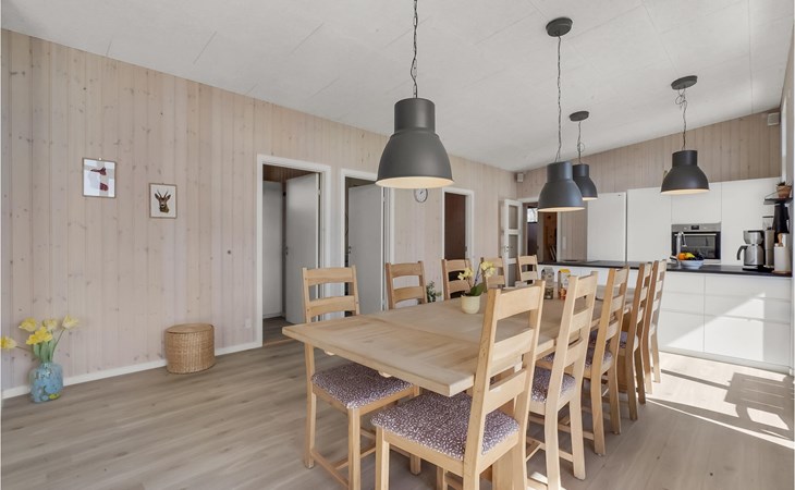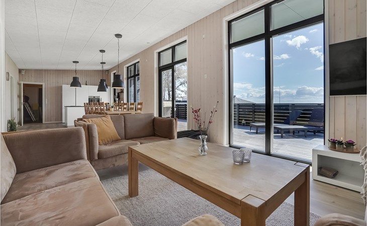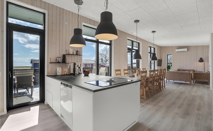 Willkommen in diesem geräumigen Haus, das Ihnen ab Betreten der Türschwelle alles Wünsche von den Lippen ablesen wird. Gemeinsam mit Ihrer Großfamilie oder eine befreundete Familie können Sie sich wohlfühlen. Der große, helle Wohnraum, der das Kochen, Essen und Entspannen auf den Sofas verbrindet, wird zu Ihrem natürlichen Treffpunkt der Gruppe. Hier können Sie Ihren Vorlieben nachgehen und das besondere und moderne Ambiente genießen. Das verfügt über einen große, erhöhte und sichtgeschützte Terrasse, die Ihnen zum einen den Ausblick auf das Wasser verspricht als auch sich perfekt zum Sonnenbaden eignet. Genießen Sie hier auch Ihre gegrillten Mahlzeiten und lassen die Abende mit einem Glas Wein ausklingen, während Ihre Kinder den Garten unsicher machen und auf dem Trampolin springen. Wenn der sternenklare Nachthimmel über Ihnen schimmert und die Kinder im Bett liegen, können Sie sich im Finnischen Holzbad Ihre Muskeln entspannen und sich erholt ins Bett legen.