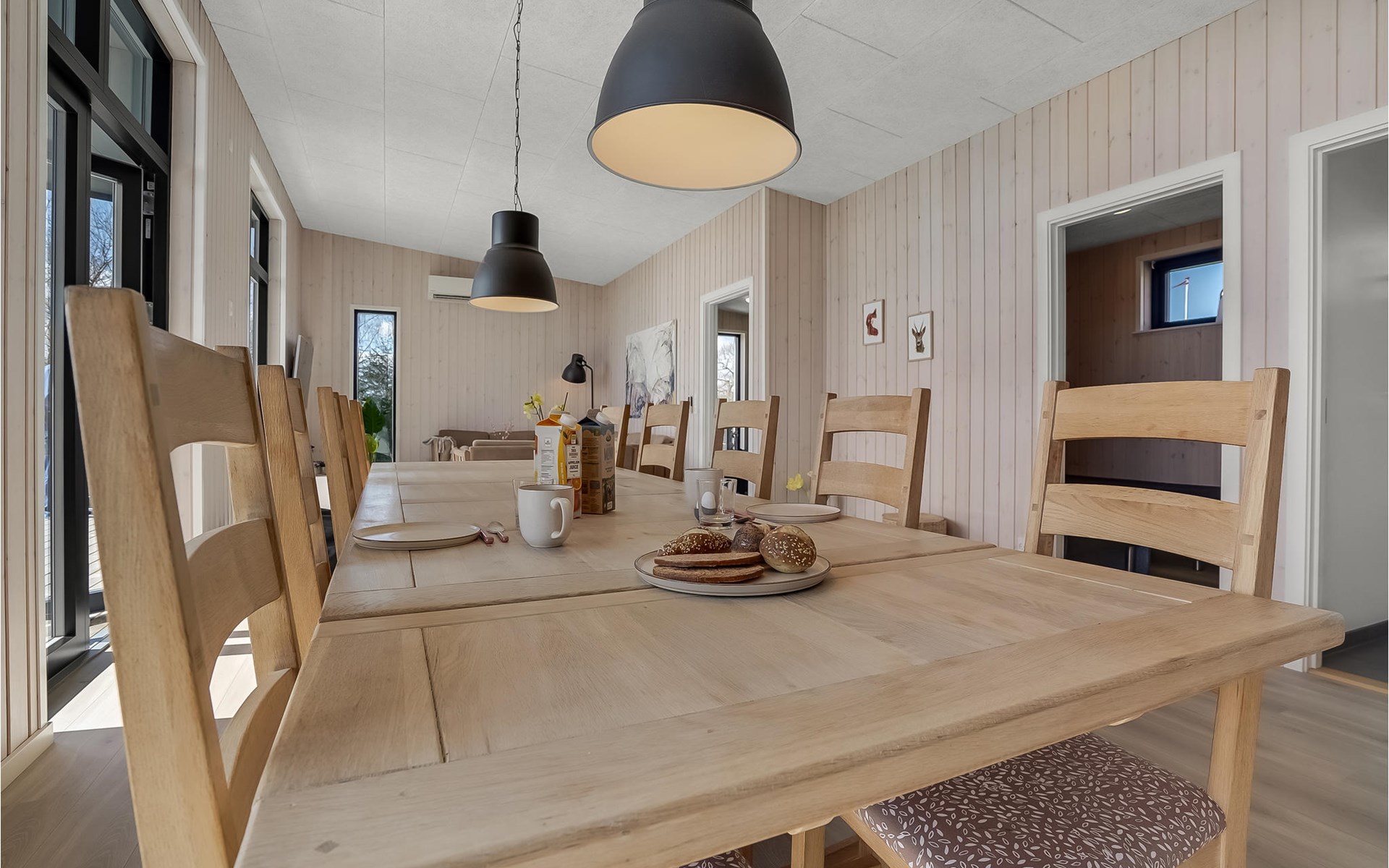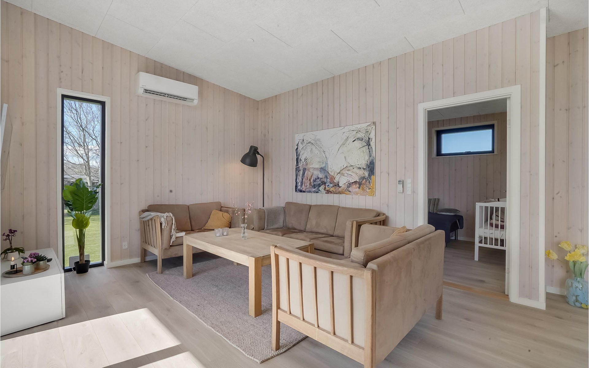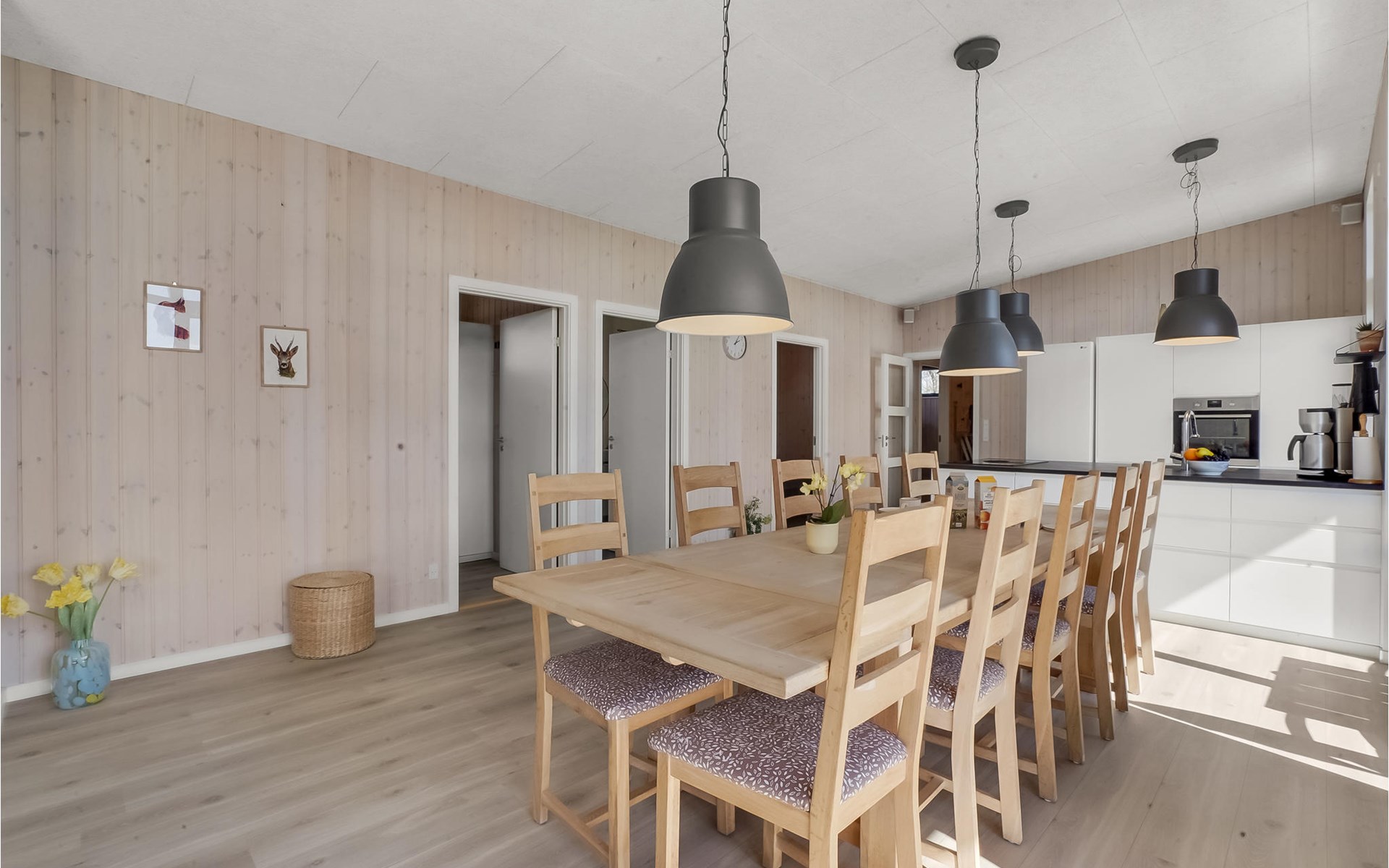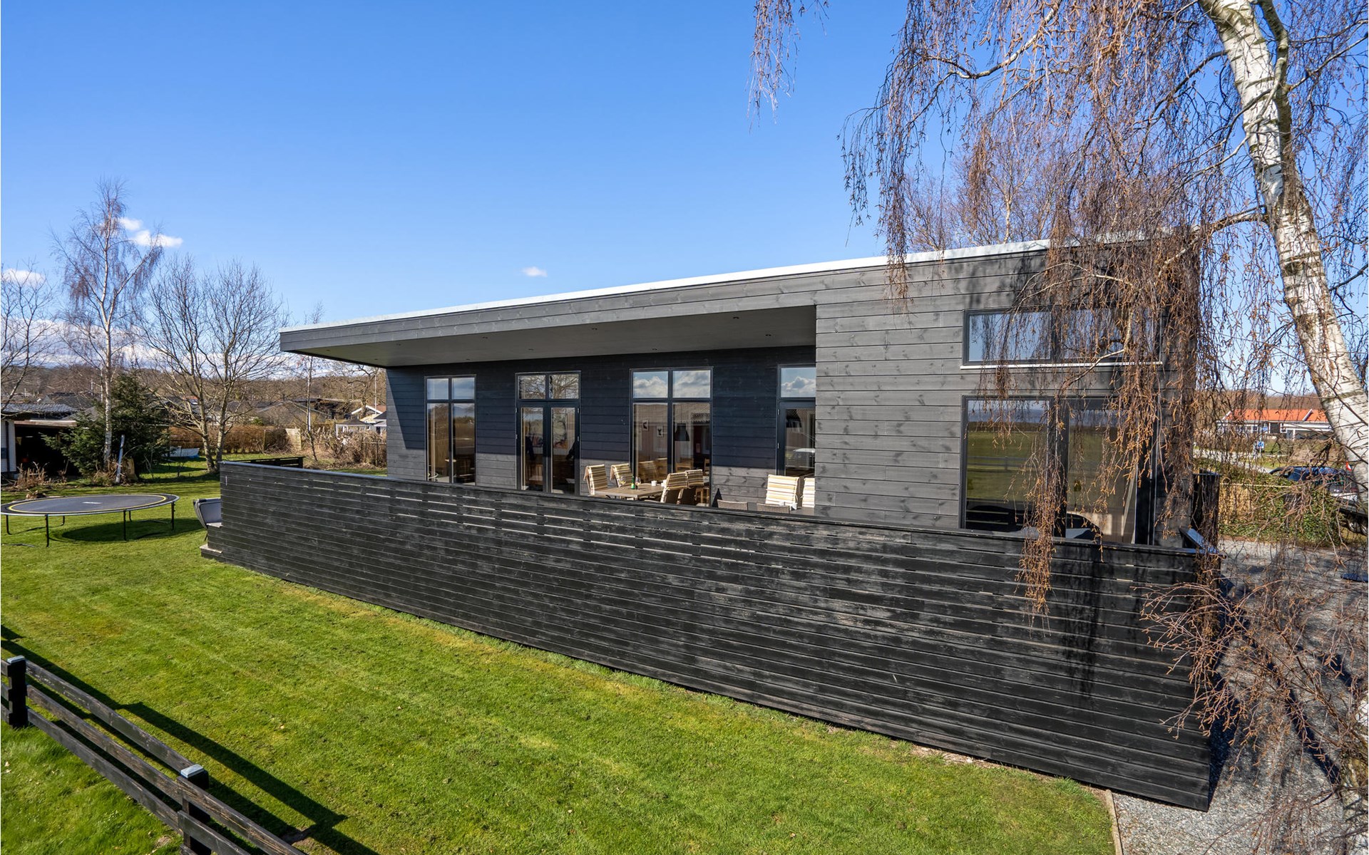 Willkommen in diesem geräumigen Haus, das Ihnen ab Betreten der Türschwelle alles Wünsche von den Lippen ablesen wird. Gemeinsam mit Ihrer Großfamilie oder eine befreundete Familie können Sie sich wohlfühlen. Der große, helle Wohnraum, der das Kochen, Essen und Entspannen auf den Sofas verbrindet, wird zu Ihrem natürlichen Treffpunkt der Gruppe. Hier können Sie Ihren Vorlieben nachgehen und das besondere und moderne Ambiente genießen. Das verfügt über einen große, erhöhte und sichtgeschützte Terrasse, die Ihnen zum einen den Ausblick auf das Wasser verspricht als auch sich perfekt zum Sonnenbaden eignet. Genießen Sie hier auch Ihre gegrillten Mahlzeiten und lassen die Abende mit einem Glas Wein ausklingen, während Ihre Kinder den Garten unsicher machen und auf dem Trampolin springen. Wenn der sternenklare Nachthimmel über Ihnen schimmert und die Kinder im Bett liegen, können Sie sich im Finnischen Holzbad Ihre Muskeln entspannen und sich erholt ins Bett legen.