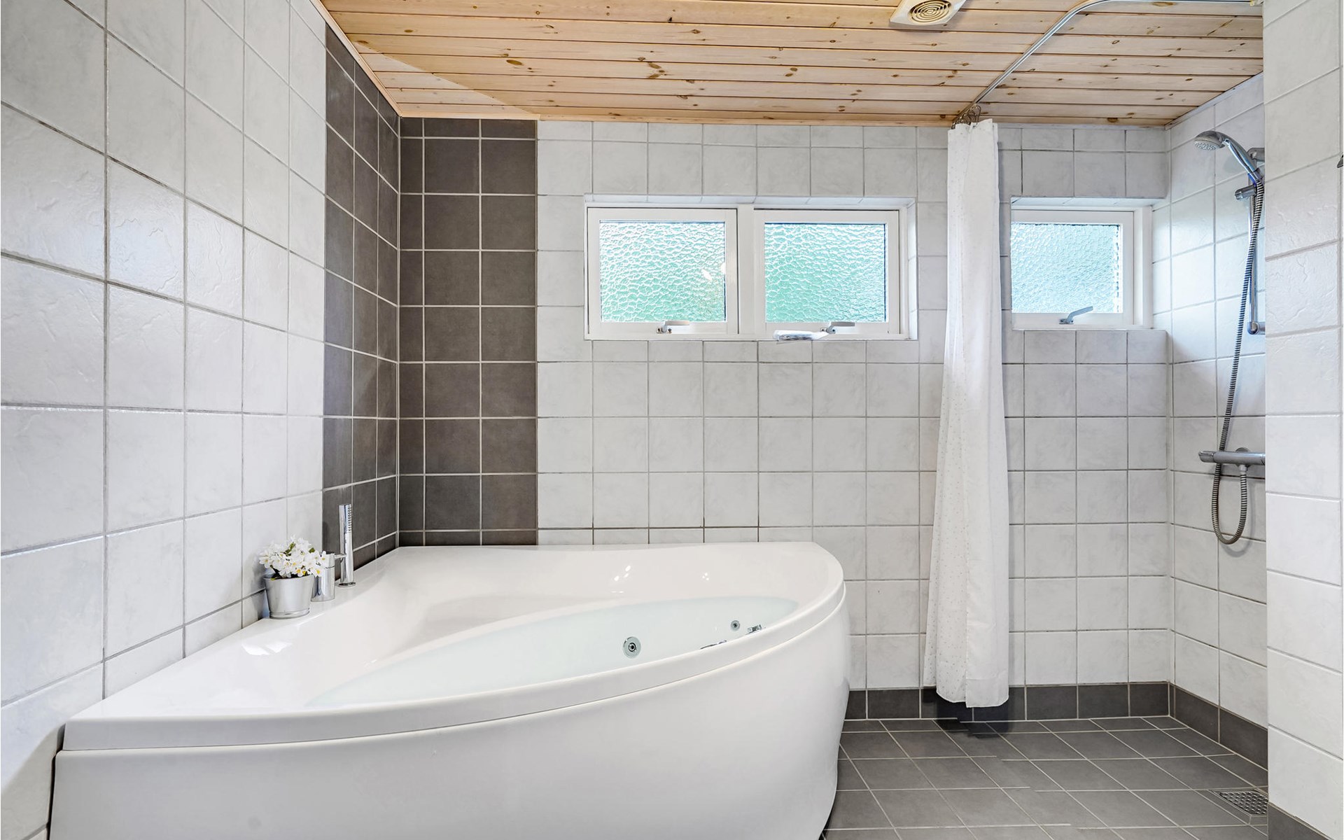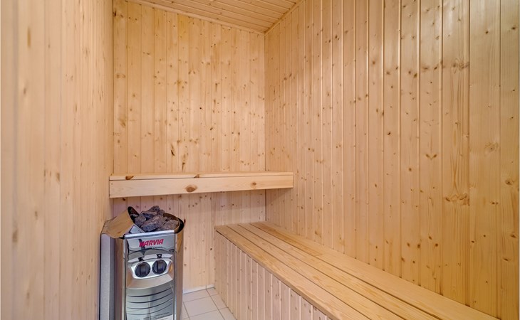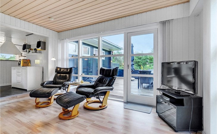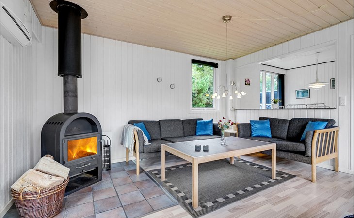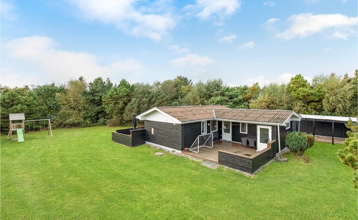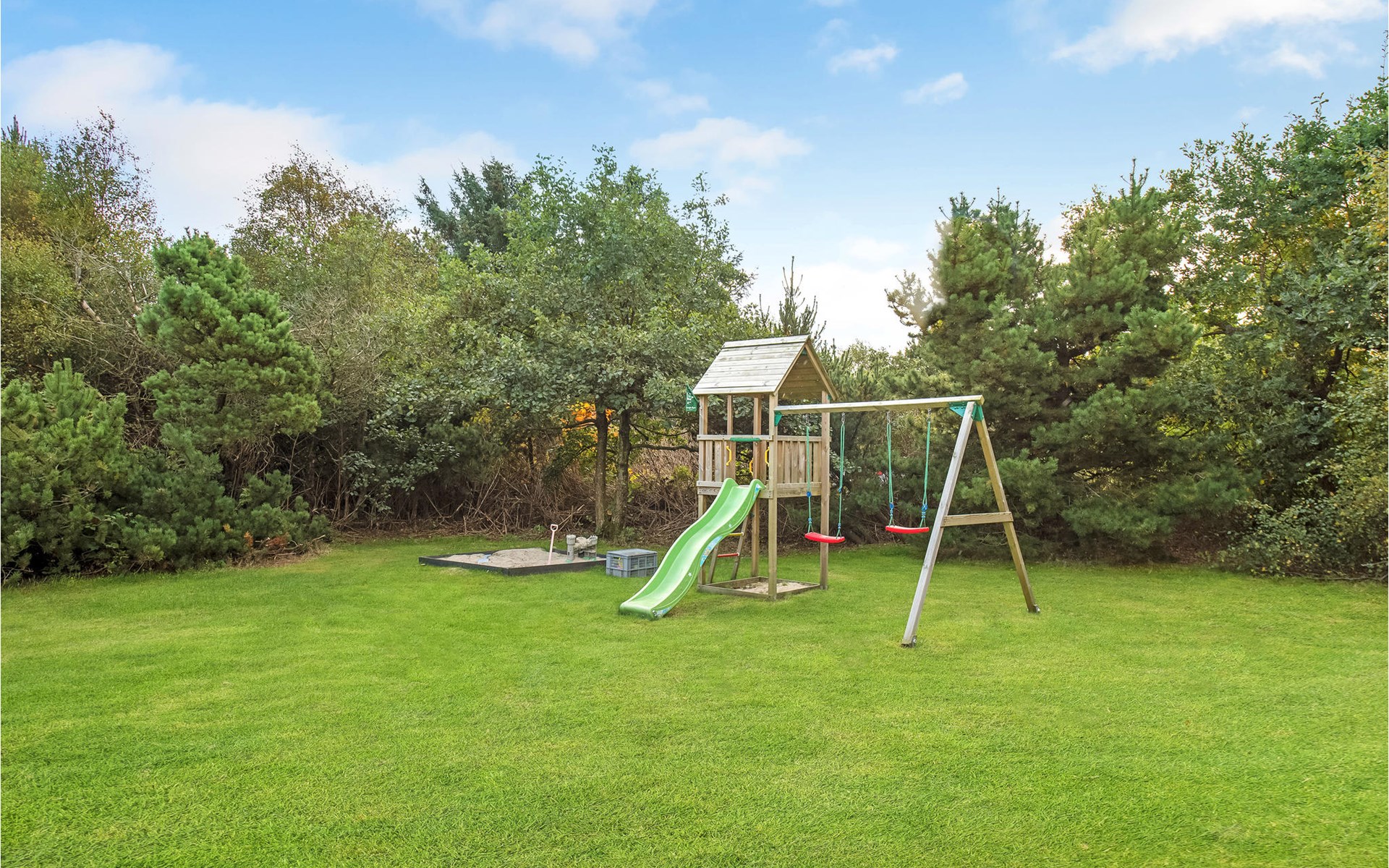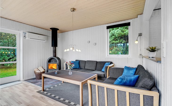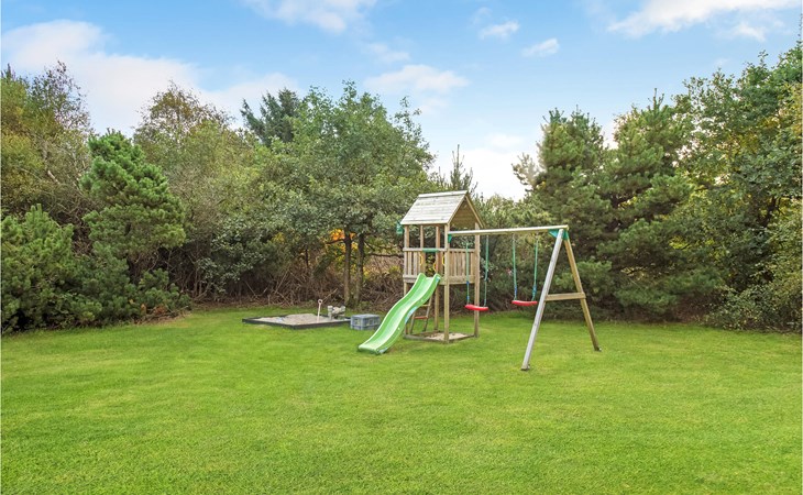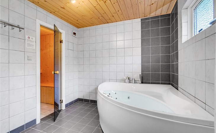 Die Holzwände und -decken schaffen eine gemütliche Atmosphäre. Zur reichen Ausstattung gehört ein Whirlpool für fünf Personen und eine Sauna, die zu verwöhnenden Momenten einladen. Im hellen Wohnzimmer können Sie sich im Sessel neben dem Kaminofen in ein gutes Buch vertiefen oder einen Film gucken. Zudem haben Sie Zugang zu einer großzügigen Terrasse auf einem sichtgeschützten Grundstück, mit Grill und Sonnenliegen. Somit haben Sie ideale Verhältnisse zum Sonnenbaden und eine überdachte Terrasse, wo Sie die frische Luft zu den ständig wechselnden Wolkenformationen genießen können. Außerdem gibt es auch ein Fußballtor, Schaukel und Sandkasten, sowie einen Spielturm. Hier werden alle Angehörigen glücklich werden und die Zeit in Dänemark genießen.
