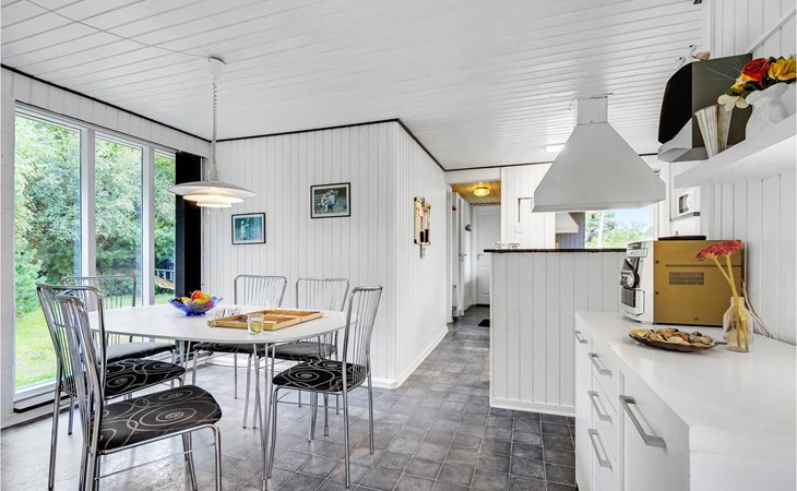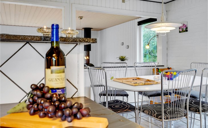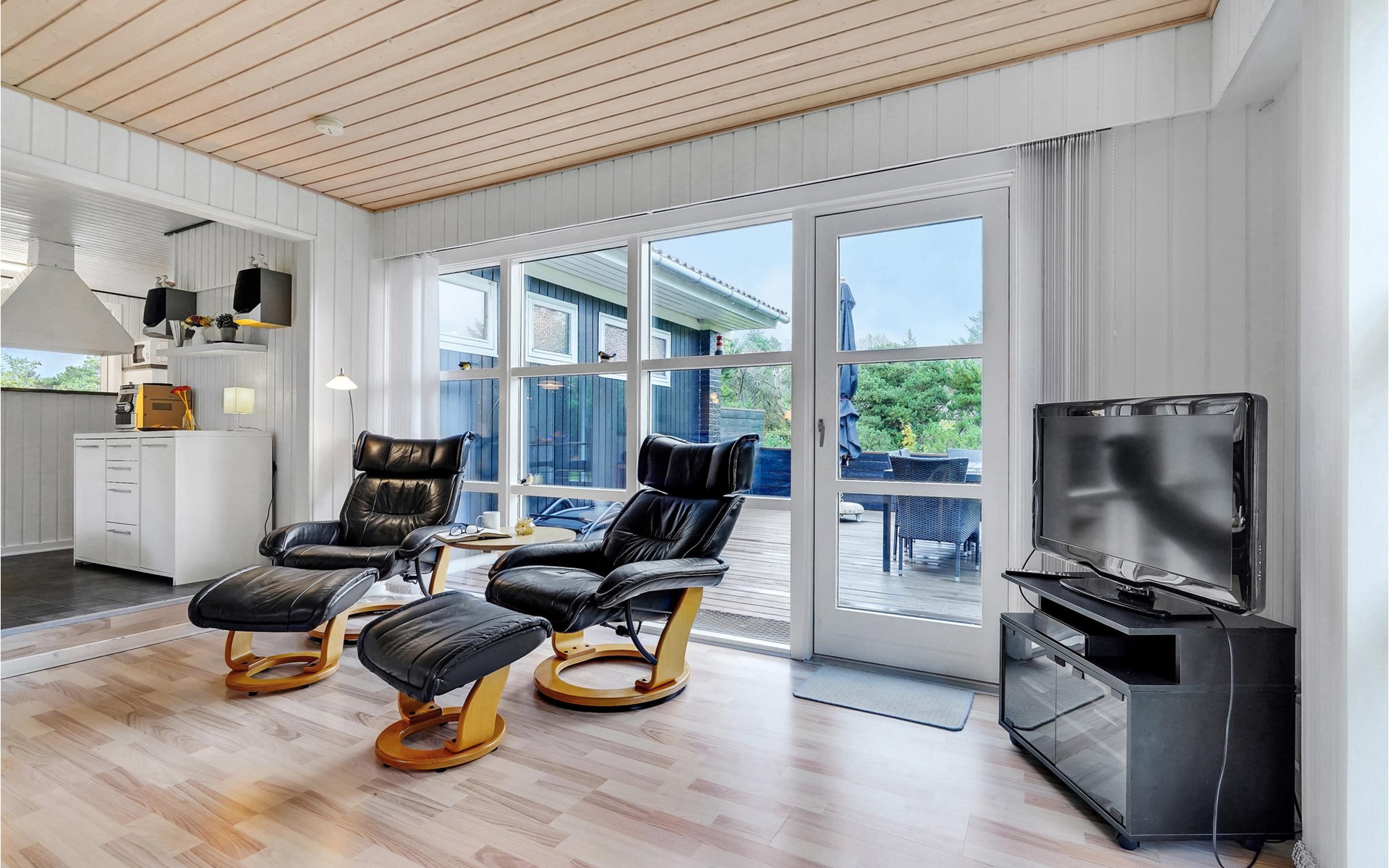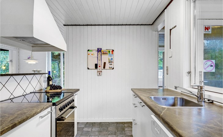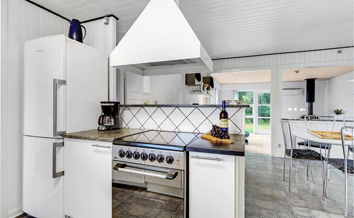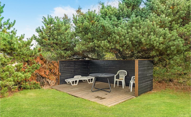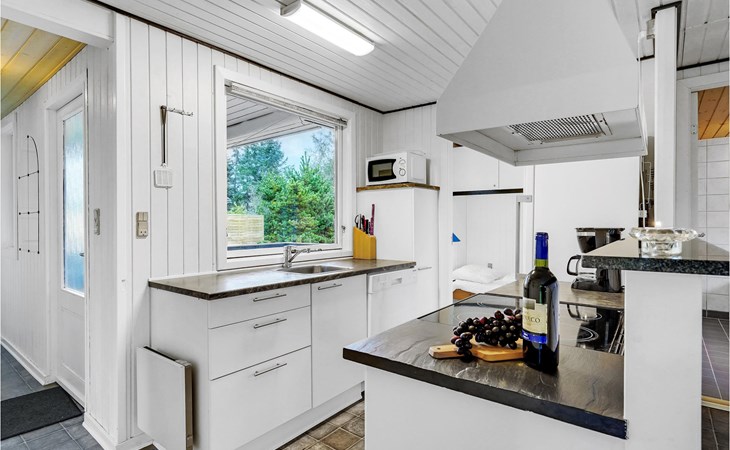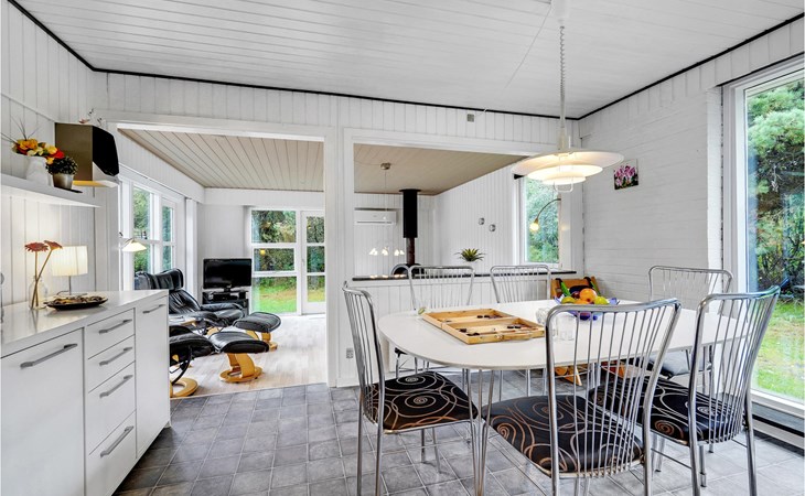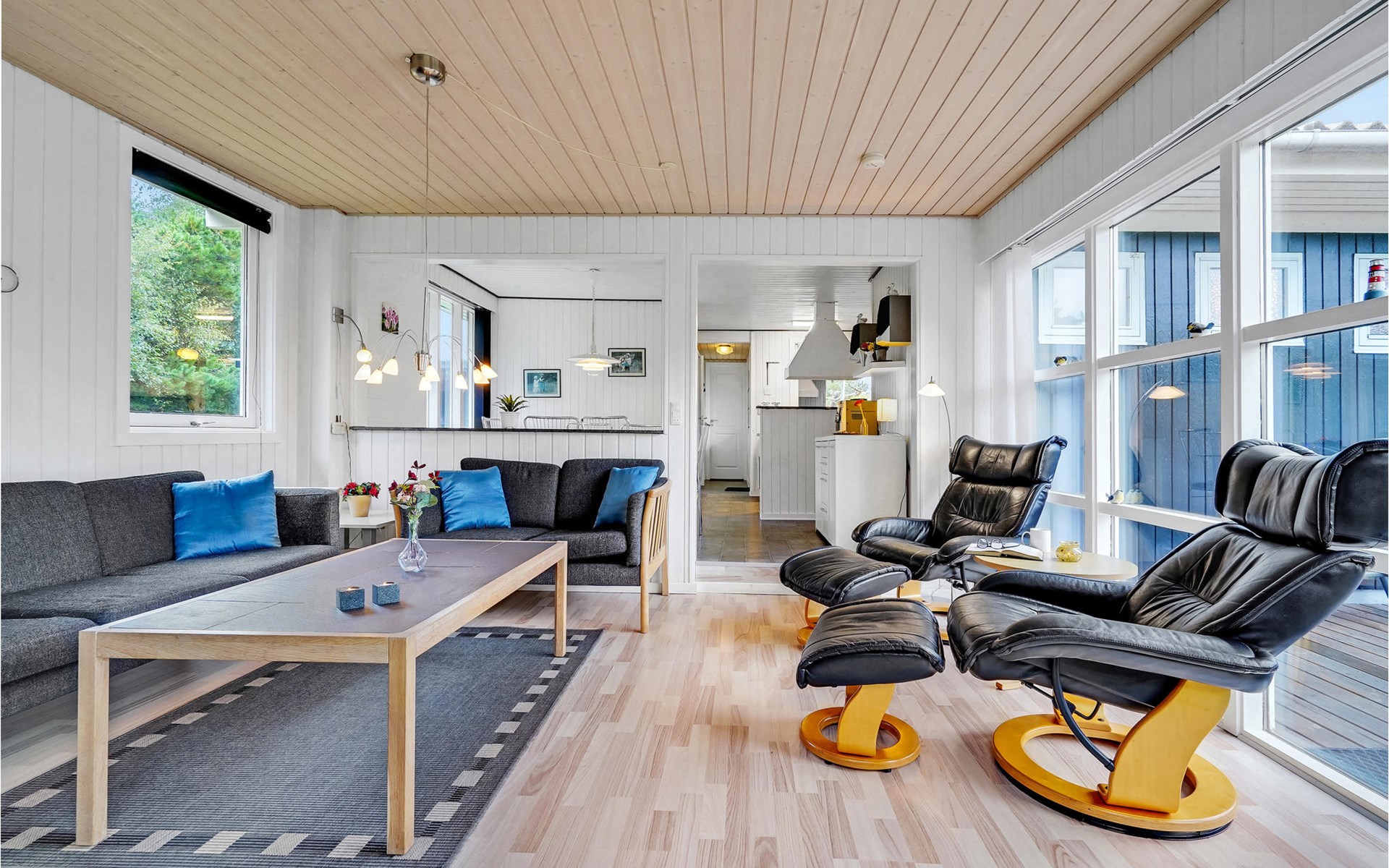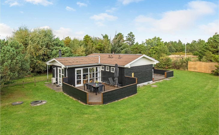 Die Holzwände und -decken schaffen eine gemütliche Atmosphäre. Zur reichen Ausstattung gehört ein Whirlpool für fünf Personen und eine Sauna, die zu verwöhnenden Momenten einladen. Im hellen Wohnzimmer können Sie sich im Sessel neben dem Kaminofen in ein gutes Buch vertiefen oder einen Film gucken. Zudem haben Sie Zugang zu einer großzügigen Terrasse auf einem sichtgeschützten Grundstück, mit Grill und Sonnenliegen. Somit haben Sie ideale Verhältnisse zum Sonnenbaden und eine überdachte Terrasse, wo Sie die frische Luft zu den ständig wechselnden Wolkenformationen genießen können. Außerdem gibt es auch ein Fußballtor, Schaukel und Sandkasten, sowie einen Spielturm. Hier werden alle Angehörigen glücklich werden und die Zeit in Dänemark genießen.