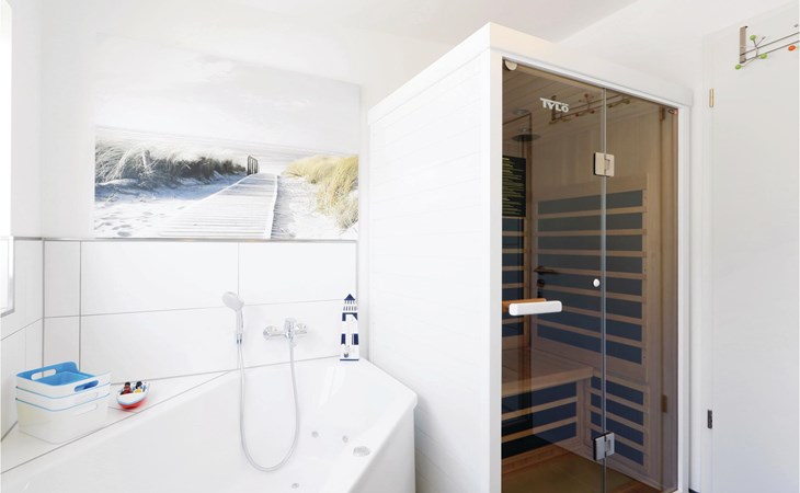 Hinter Ihnen liegt die Ostsee mit wunderschöner Dünenlandschaft und dem angrenzenden langen Sandstrand bis hinunter nach Schönhagen. Durch die bodentiefen Panoramafenster müssen Sie auch vom gemütlichen, hellen Wohnbereich aus nicht auf den Blick über die Wellen und Boote im Hafen verzichten. Vor dem Kaminofen können Sie es sich auch in der kühleren Jahreszeit im richtig gemütlich machen. Im Obergeschoss des Hauses befindet sich Ihr kleines, privates Wellness-Paradies: in der Infrarotsauna und in der großen Eckbadewanne mit Sprudelfunktion lässt es sich einfach herrlich entspannen.