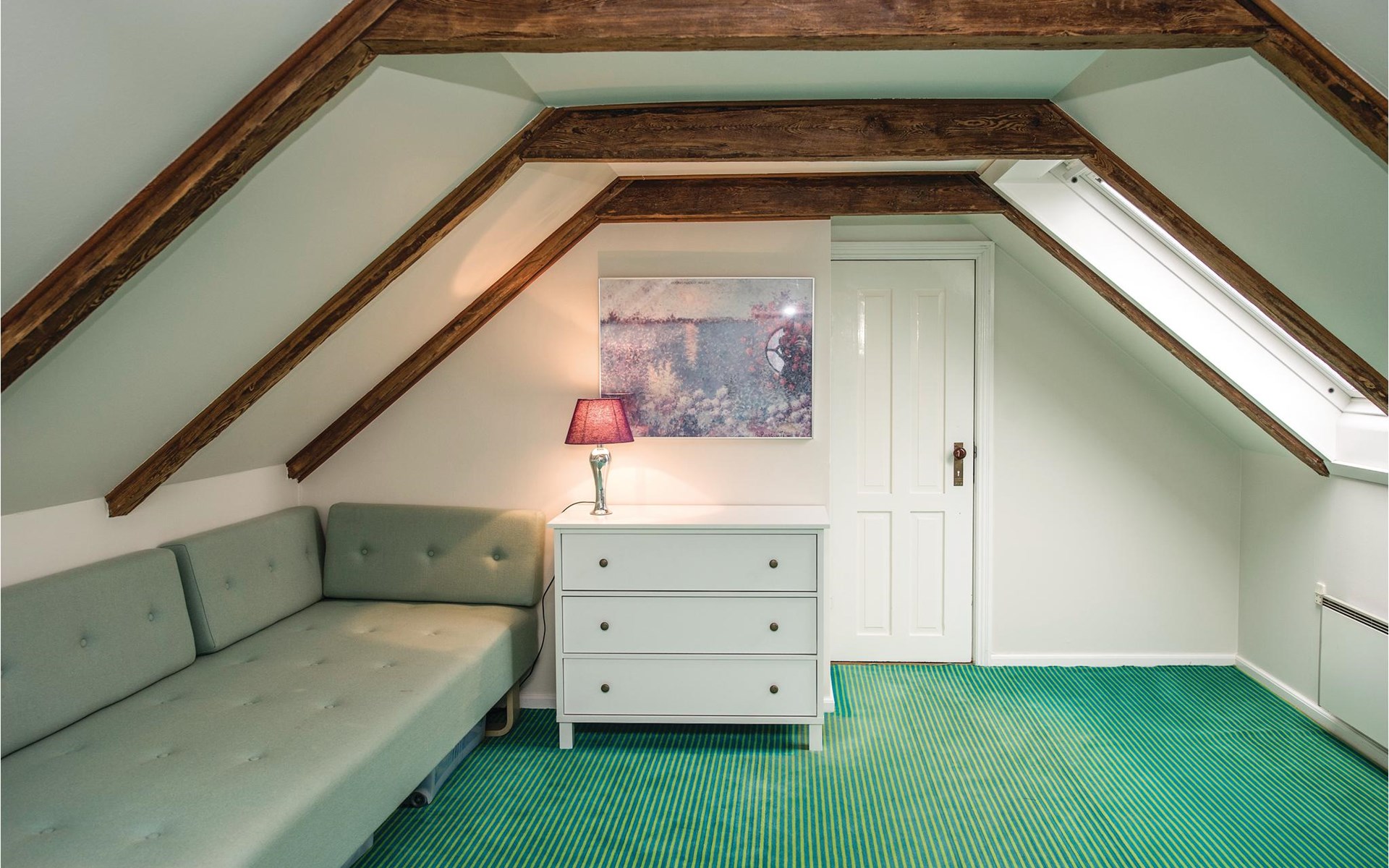 Willkommen in diesem Ferienhaus auf Masnedø, wo Tradition auf zeitgemäßen Komfort trifft. Die geschmackvoll eingerichteten Innenräume bewahren den ursprünglichen Charme des Hauses und schaffen eine gemütliche Atmosphäre. Die steile Treppe führt zu den charmanten Schlafräumen, die Ihnen eine entspannte Nachtruhe garantieren. Die offene Terrasse lädt dazu ein, den Panoramablick auf das Wasser und die Stostrømsbroen zu genießen, während Sie in der schönen Küche mit modernen Geräten köstliche Mahlzeiten zubereiten können. Das große Naturgrundstück bietet direkten Zugang zum Wasser und ist ideal für Angler.