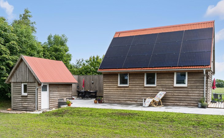 Genießen Sie naturnahe Urlaubstage in diesem schönen Holzhaus mit freiem Blick über Felder und Wiesen.