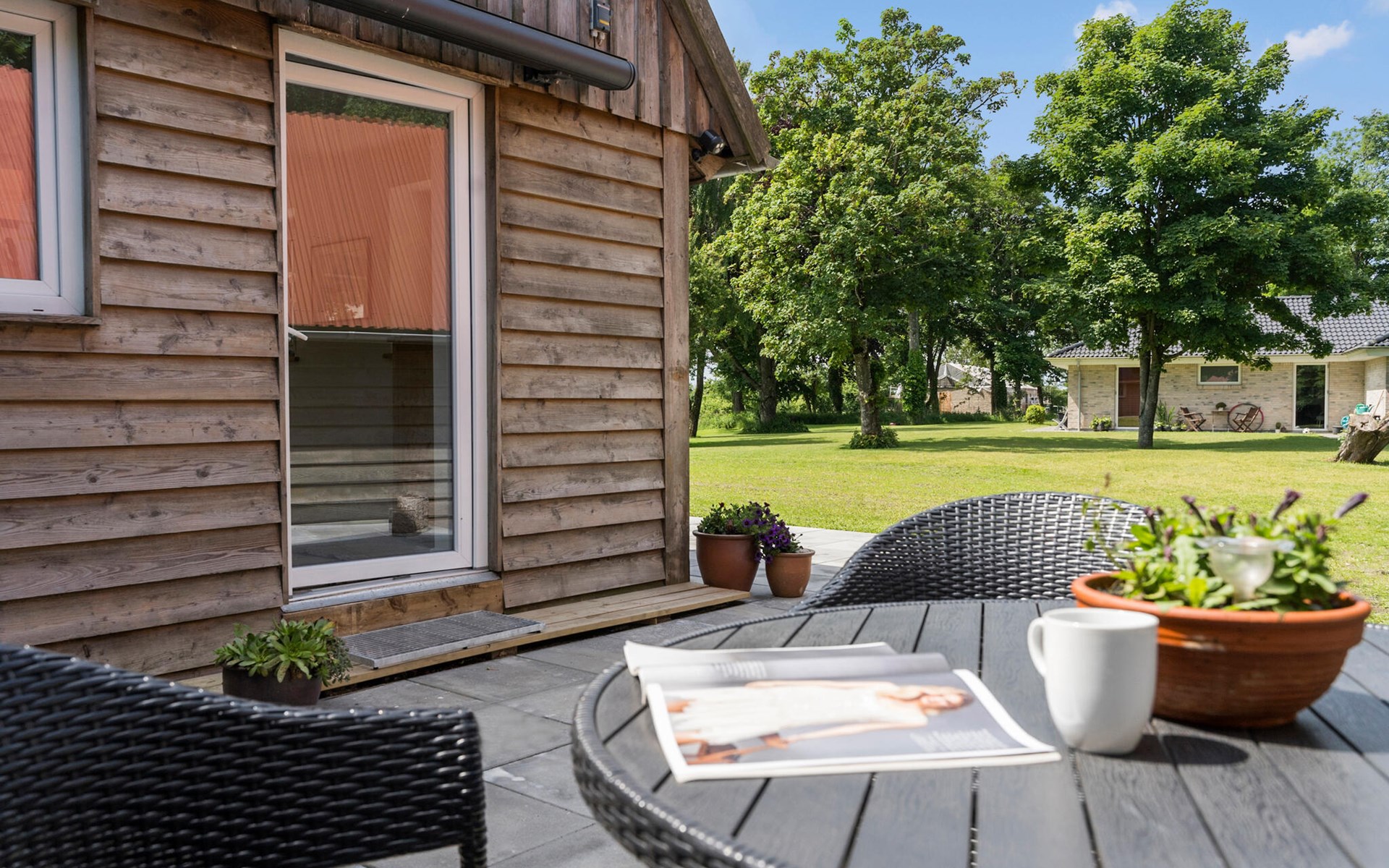 Nutzen Sie die geschützte Terrasse für Ihre Mahlzeiten im Freien oder starten Sie den Tag mit einer Tasse Kaffee und Blick ins Grüne. Der große Garten lädt zum Spielen, Entspannen und Grillen ein. Für Kinder gibt es eine Schaukel, für gemütliche Abende steht eine Feuerstelle bereit, ideal zum Stockbrot backen in geselliger Runde.