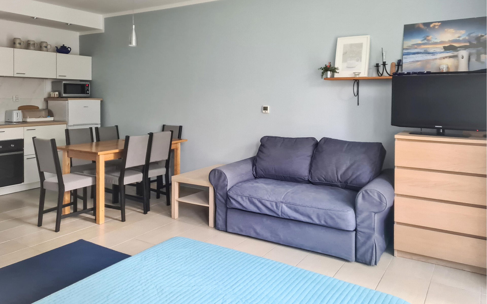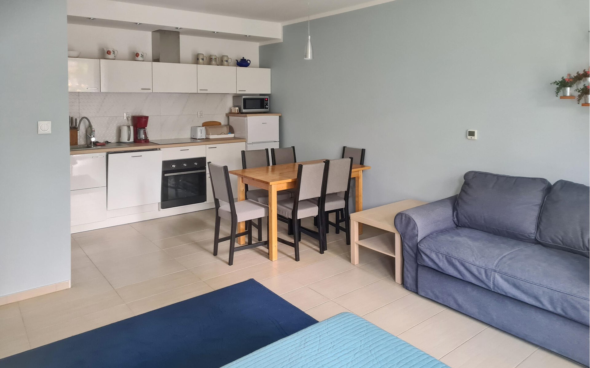 Von der Wohnung sind es fünf Kilometer zum örtlichen Golfplatz, oder wie wäre es mit einem Fahrradtour oder einer Wanderung nur wenige hundert Meter von der Wohnung? Später am Tag können Sie im Ort gemütlich essen gehen oder für ein leckeres Abendessen in der Ferienwohnung einkaufen.