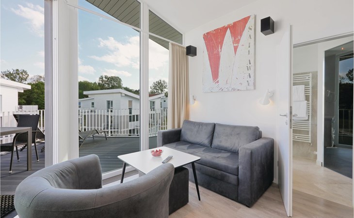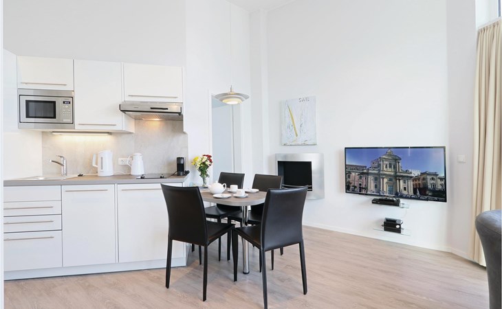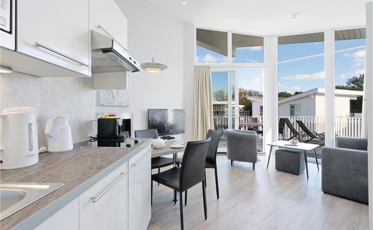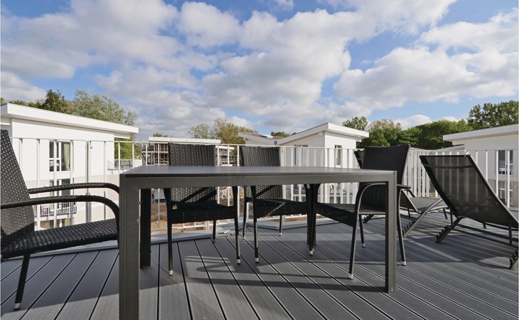 Das Penthouse ist hochwertig ausgestattet und überzeugt mit modernem Design. Das separate Schlafzimmer verfügt über ein gemütliches Doppelbett. Im Wohnbereich befinden sich zwei weitere Schlafplätze und Sie betreten von hier aus die großzügige Dachterrasse, das Highlight Ihrer Unterkunft. Genießen Sie den wunderschönen Blick über die Dünen und die Anlage. Auch für ein gemeinsames Frühstück oder einfach zum entspannen bietet sich die Dachterrasse an. Vor dem Bio-Ethanolkamin können Sie es sich an regnerischen Tagen gemütlich machen.
