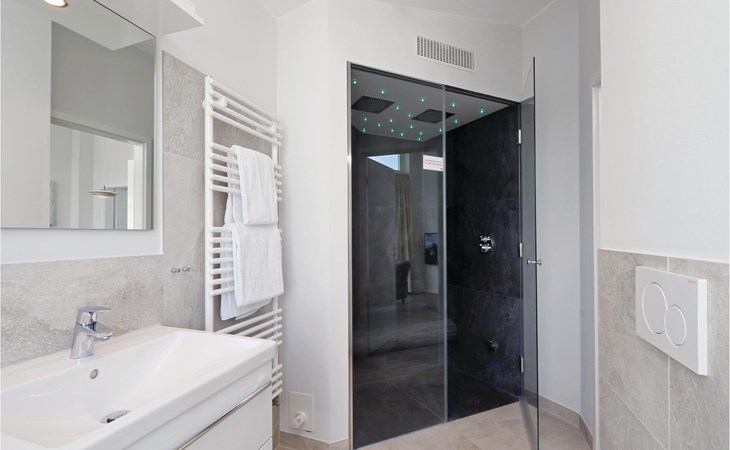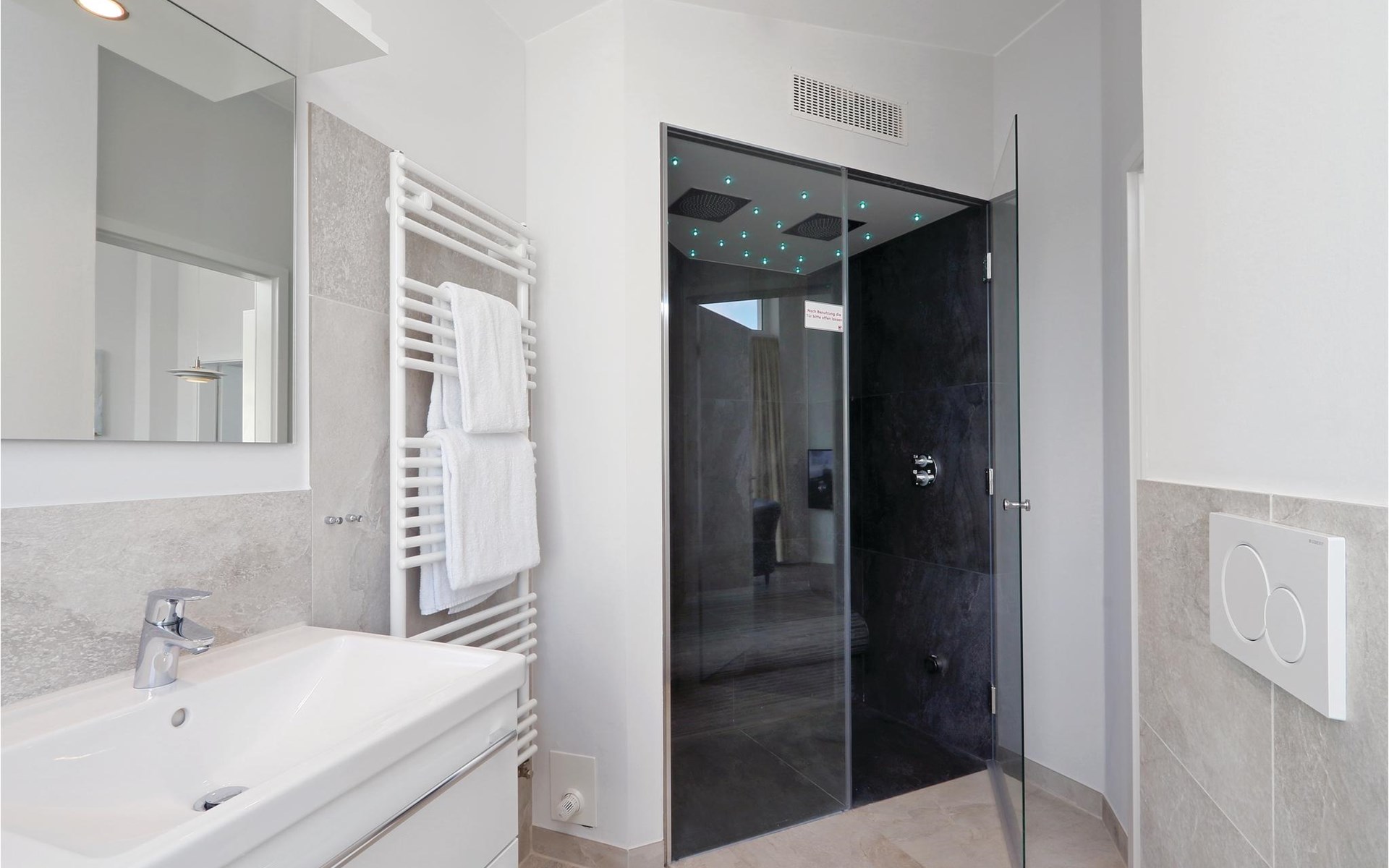 Im Badezimmer genießen Sie Ihren eigenen, kleinen Wellnessbereich mit Dampfbad und Doppelregendusche. Die Ferienwohnung verfügt außerdem über ein modernes Entertainmentsystem mit Blu-Ray-Player, zwei Flatscreen-TV und einer Musikanlage mit MP3-Anschluss.