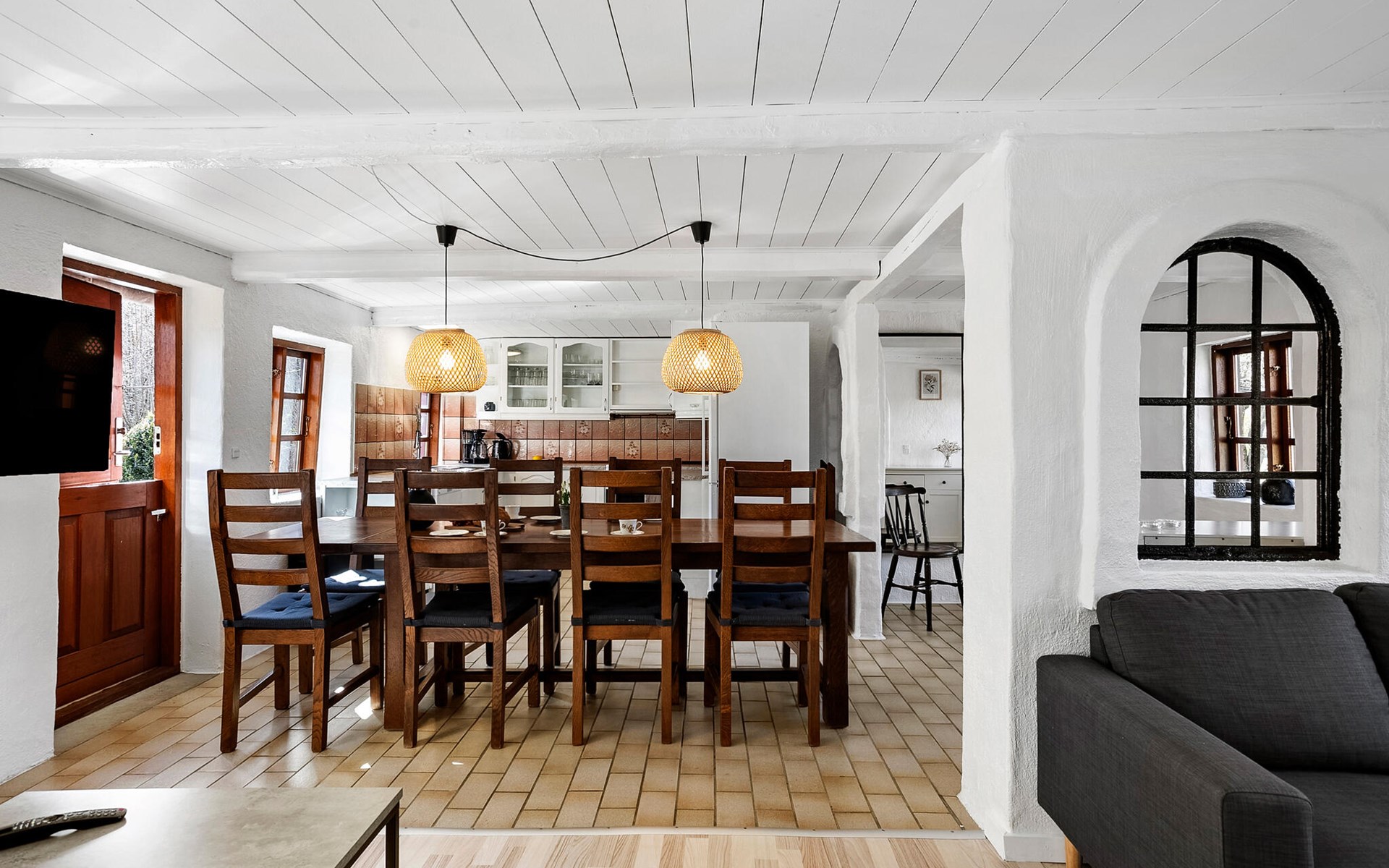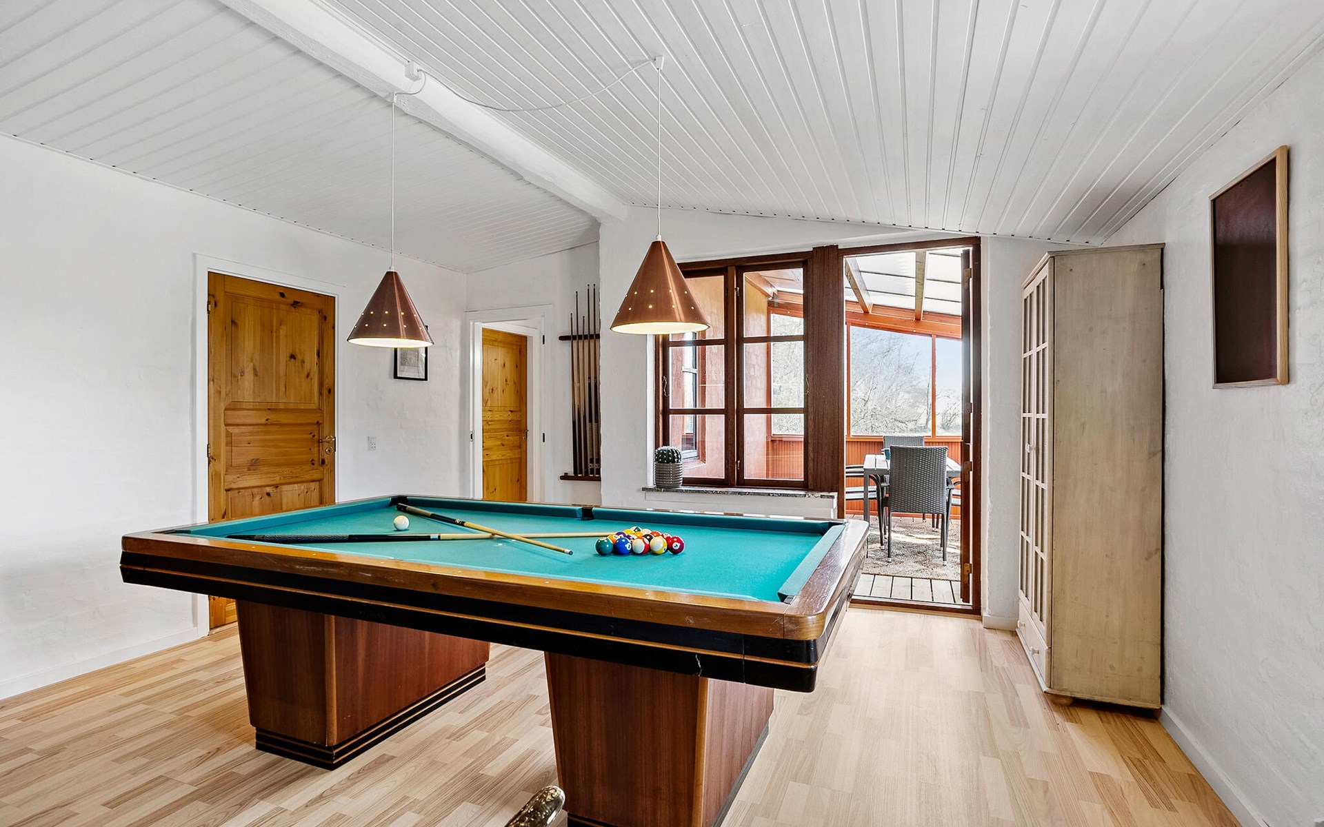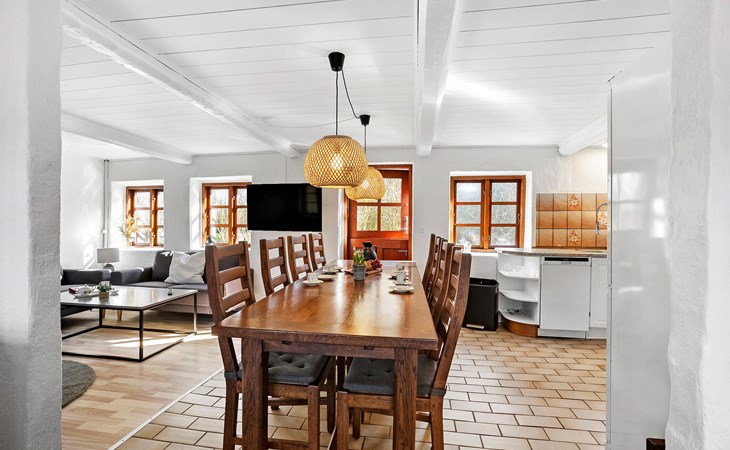 Genießen Sie die Ruhe der ländlichen Idylle in diesem liebevoll renovierten Ferienhaus. Hier erwartet Sie eine gelungene Kombination aus traditionellem Charme und modernen Annehmlichkeiten. Das gemütliche Innere des Hauses besticht durch helle Räume und rustikalen Charakter. Machen Sie es sich im Wohnzimmer in einer der Sofaecken bequem und verbringen Sie gemeinsame Filmabende oder entspannte Lesestunden. Der Essbereich ist offen gestaltet und grenzt direkt an die Küche, die viel Platz für die Zubereitung Ihrer Mahlzeiten bietet. Spielen Sie eine Runde Billard oder lassen Sie den Tag ganz in Ruhe im schönen Wintergarten ausklingen.