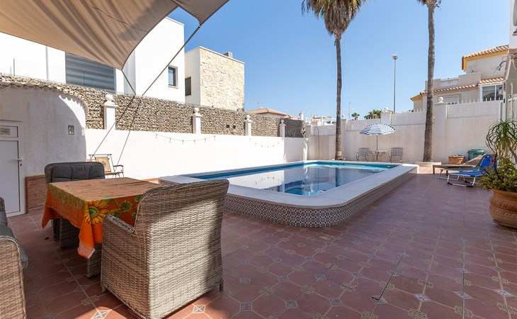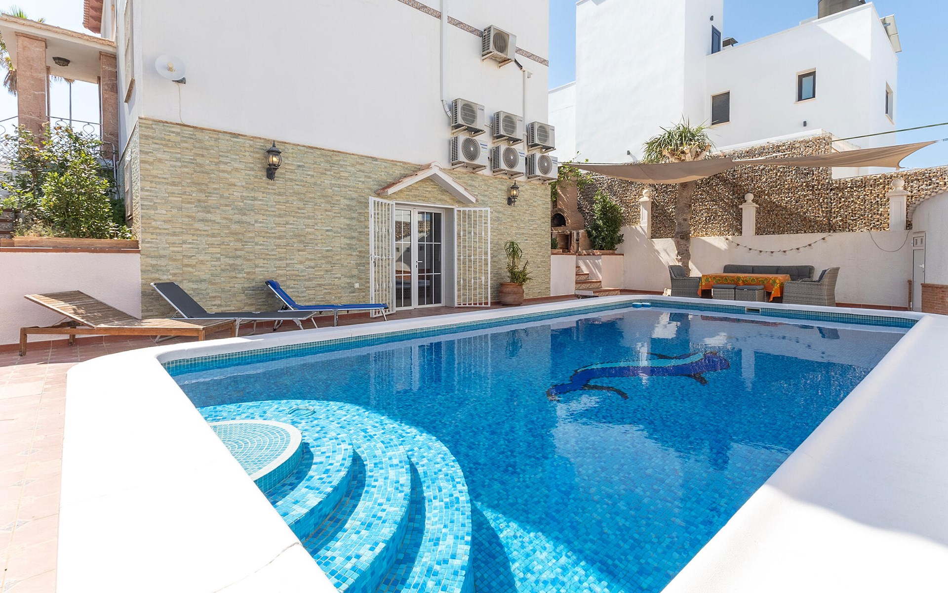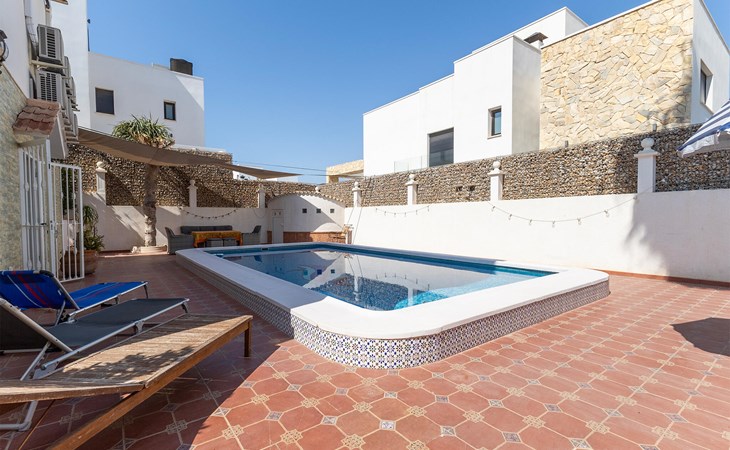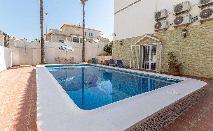 Packen Sie die Koffer und genießen Sie sonnige Tage in diesem geräumigen Ferienhaus mit Pool.