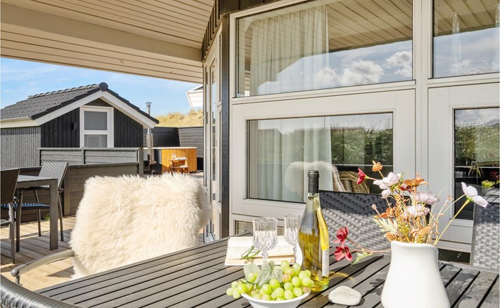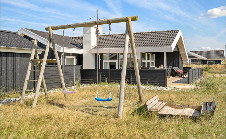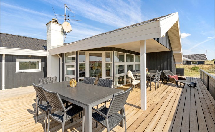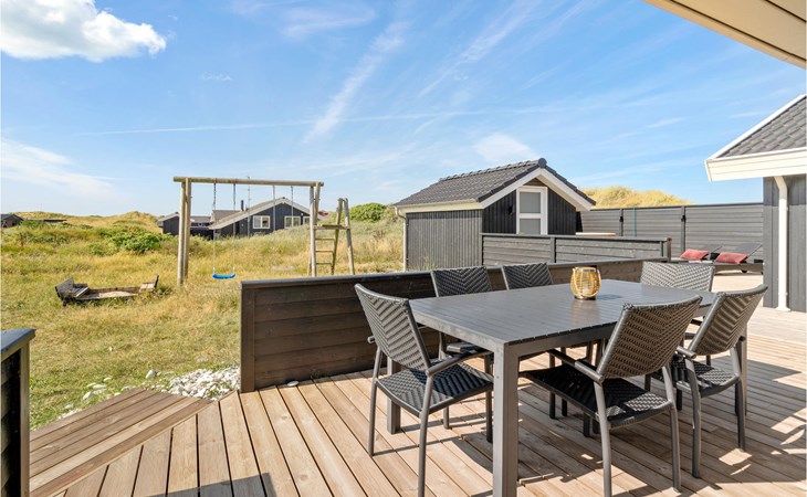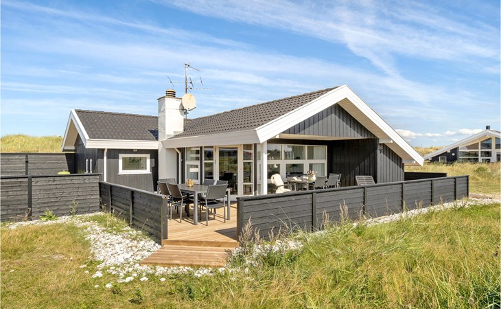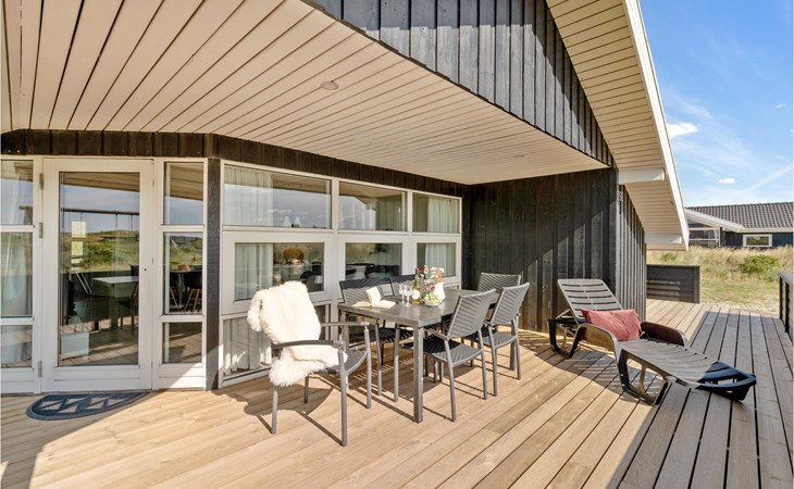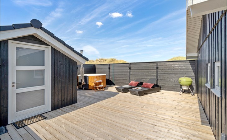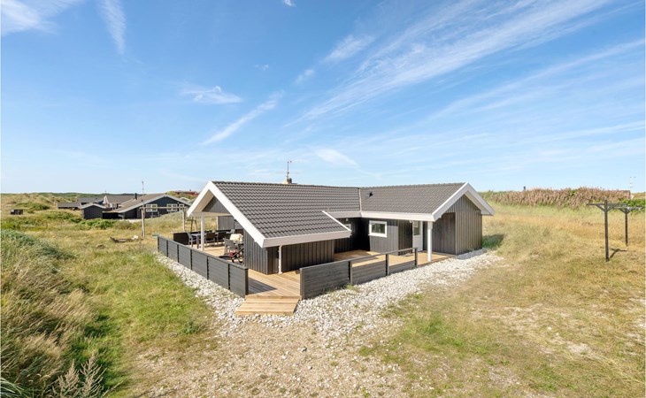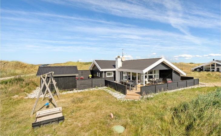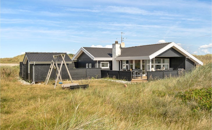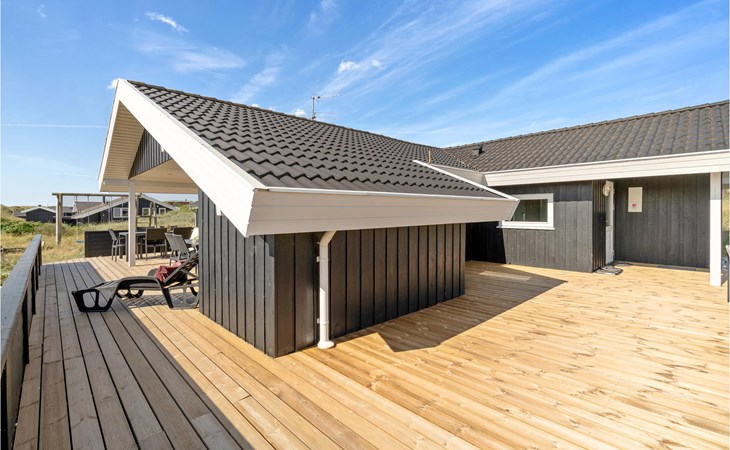 Auf einem schönen hügeligen Grundstück, nur 500 m von der Nordsee, liegt dieses gepflegte Luxusferienhaus.