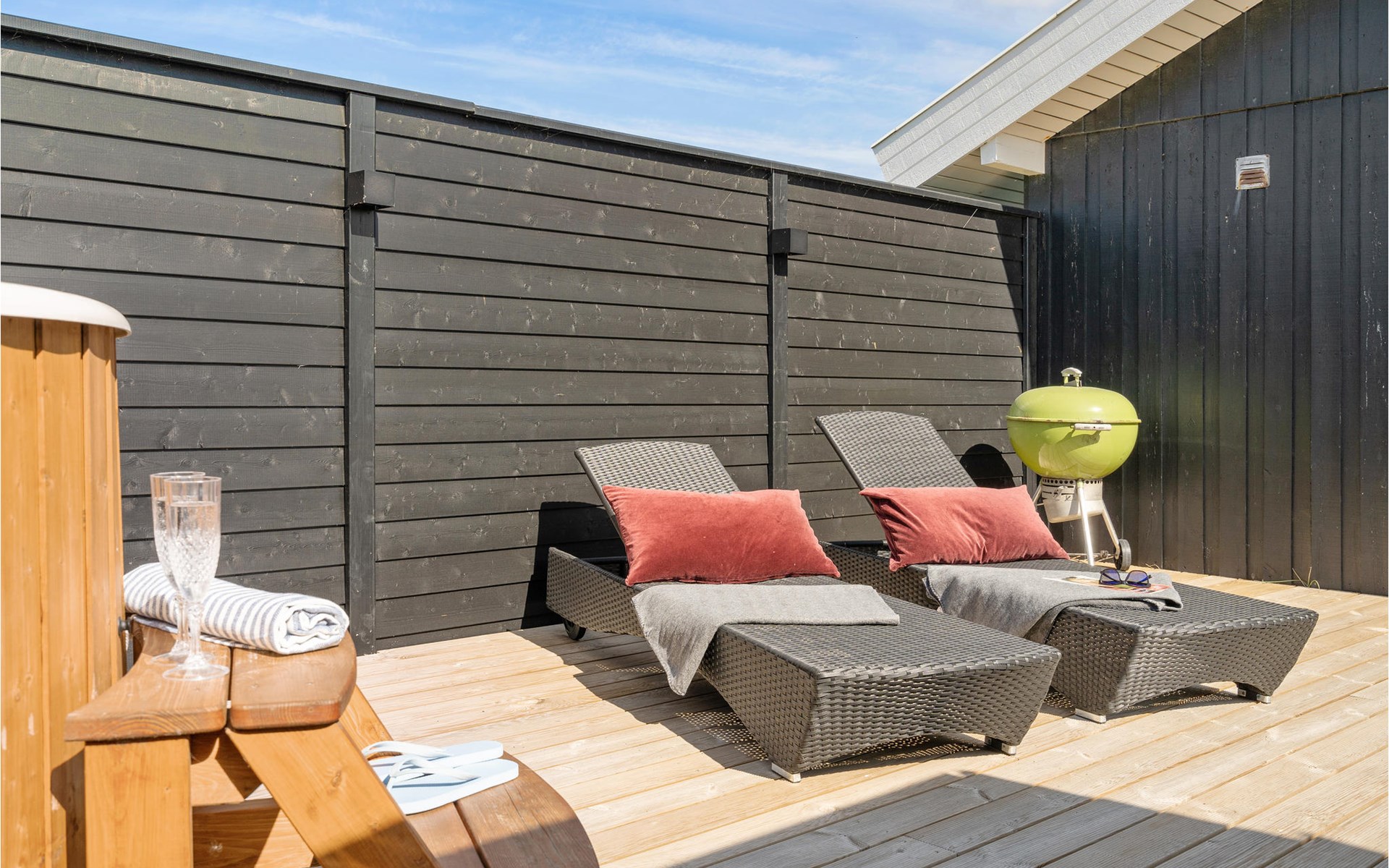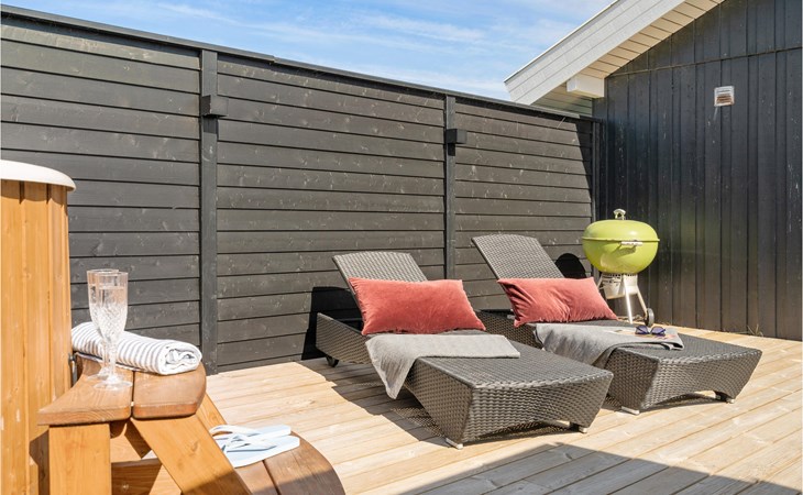 Es ist von einer grossen, teilweise überdachten Terrasse umgeben, die mit guten Gartenmöbeln ausgestattet ist. Das moderne und geschmackvoll eingerichtete Haus verfügt über einen schönen Küchen-Wohnbereich mit Kaminofen, 3 Schlafräume, sowie ein grosses Bad mit Whirlpool und Sauna. Im finnisches Holzbad können Sie entspannt den Abend im Freien ausklingen lassen. Ein weiteres Schlazimmer finden Sie im Annex.