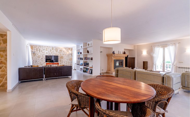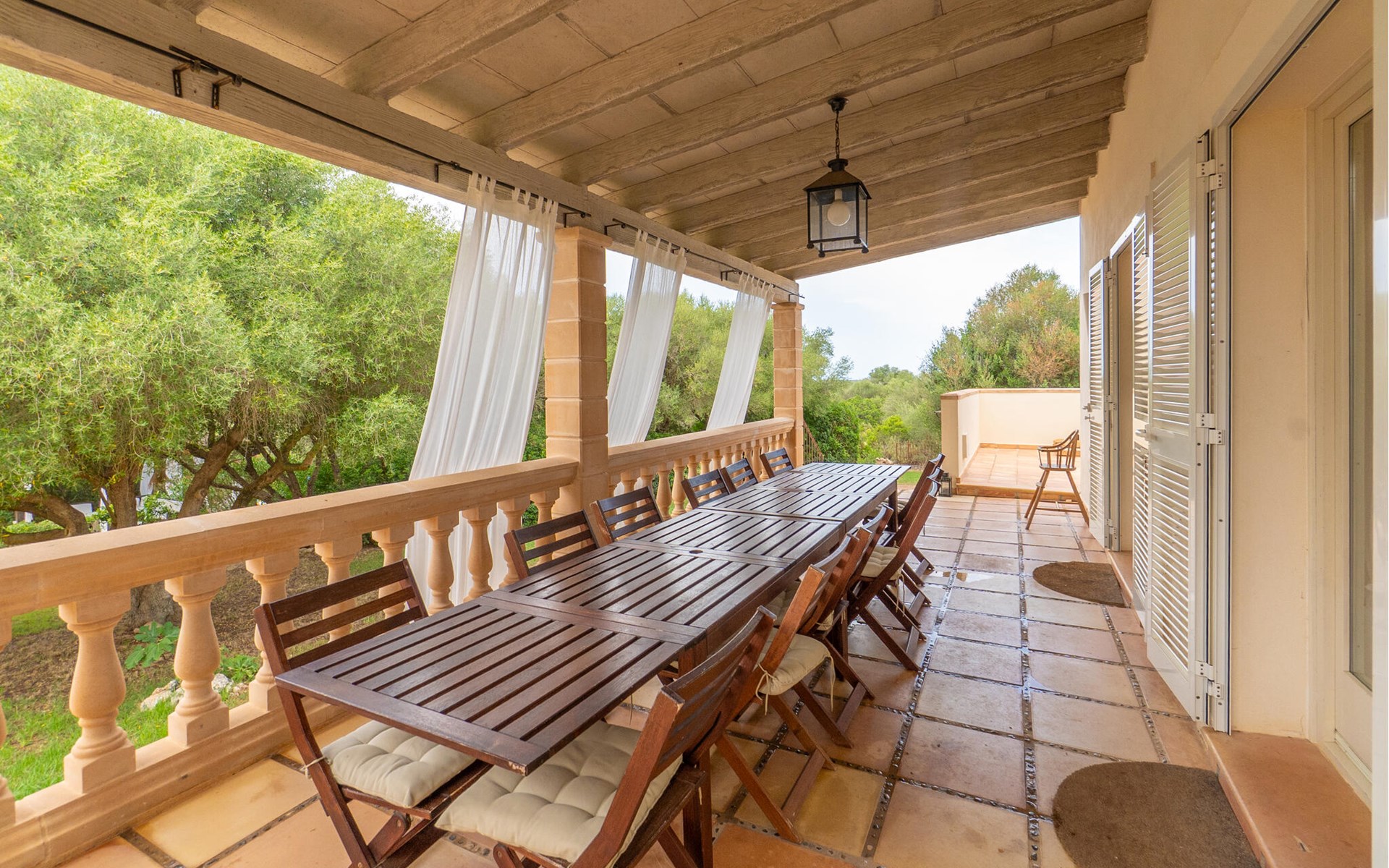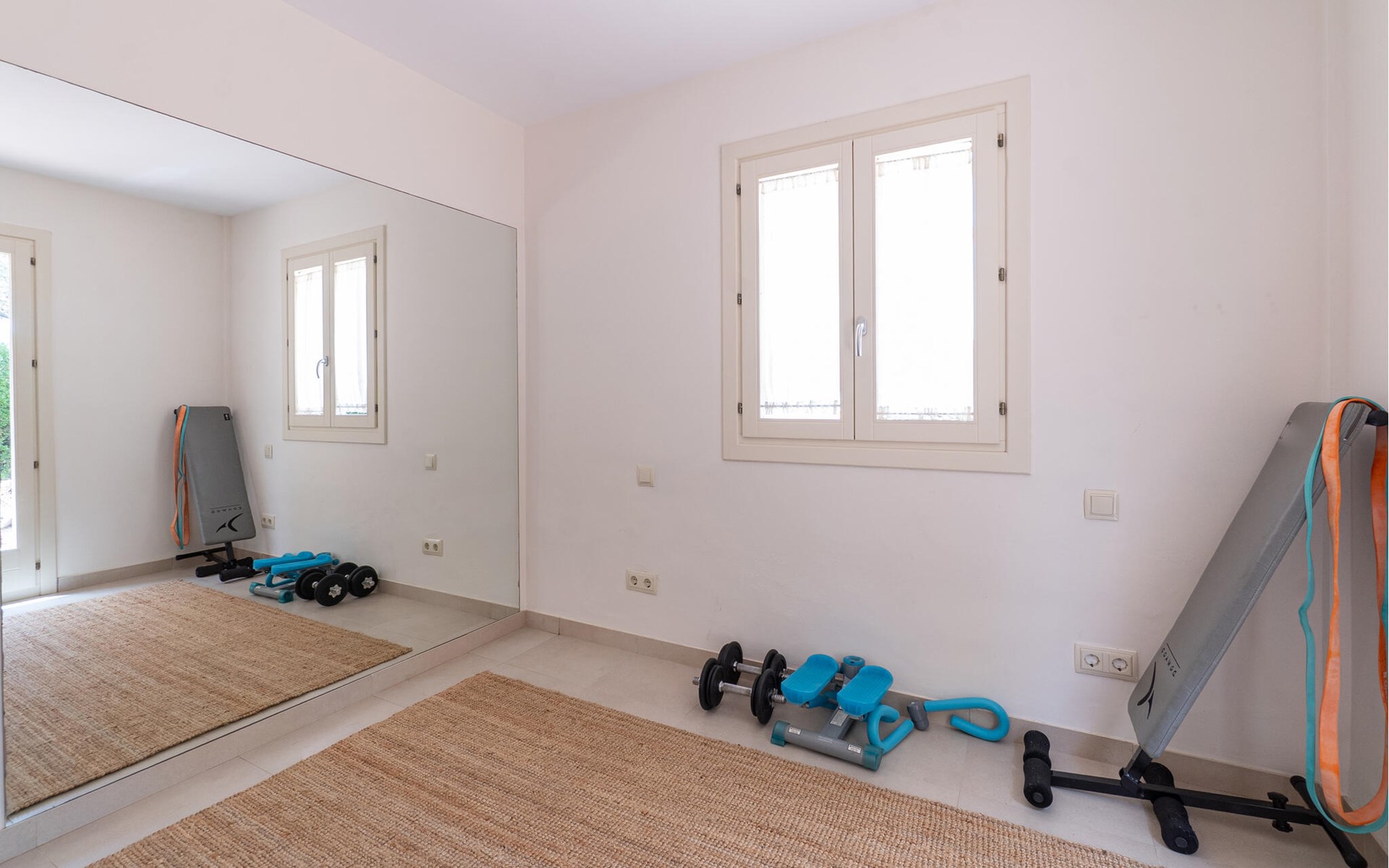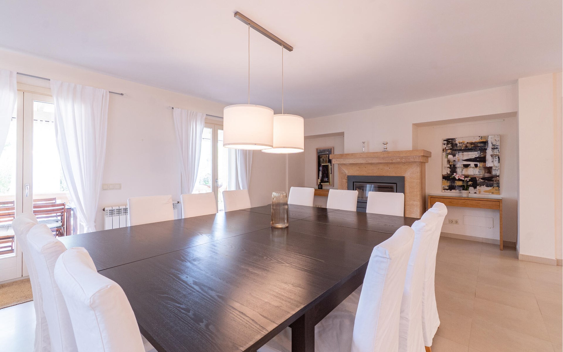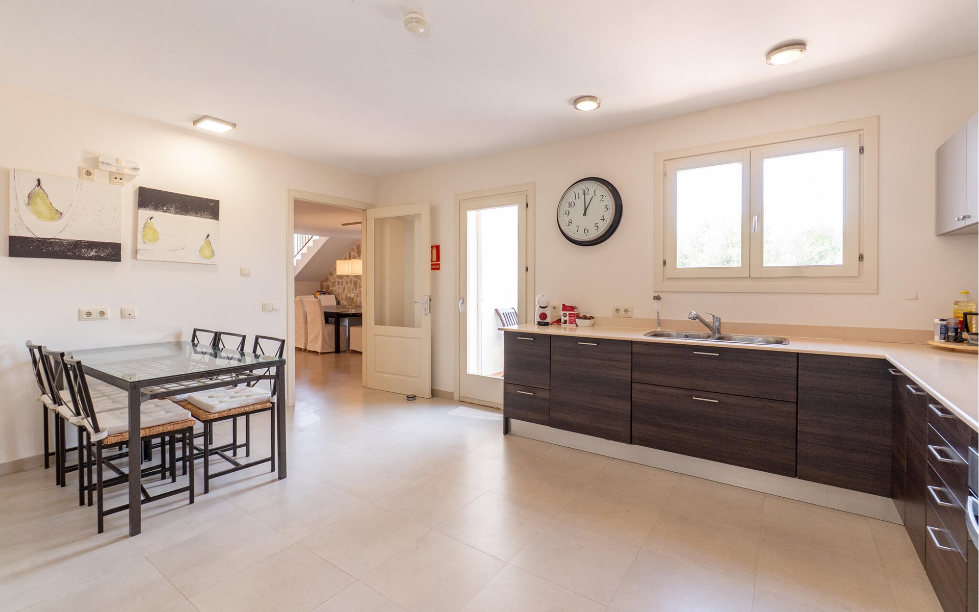 Eingebettet in ein großes, idyllisches Grundstück, das Ihnen maximale Privatsphäre verschafft, heißt Sie diese komfortable mallorquinische Finca willkommen. Dieses traumhafte Anwesen verwöhnt Sie mit allem, was einen Urlaub auf der bezaubernden Mittelmeerinsel zu einem unvergesslichen Erlebnis macht, und bietet reichlich Platz für geselliges Beisammensein – auch mit einer größeren Gruppe von Ruhesuchenden. Treten Sie ein und lassen Sie sich vom hellen und geschmackvoll eingerichteten Interieur begeistern. In der geräumigen Küche können Sie gemeinsam kulinarische Highlights aus frischen Zutaten vom Markt zubereiten und an einem der vielen Essplätze servieren. Gönnen Sie sich nach ausgedehnten Mahlzeiten eine erholsame Siesta in Ihrem behaglichen Schlafzimmer oder nutzen Sie die Trimmgeräte für Ihr Workout. Plaudern Sie vor dem Kamin über vergangene Zeiten oder ziehen Sie sich für einen Film oder ruhige Lesestunden ins einladende TV-Zimmer zurück.
