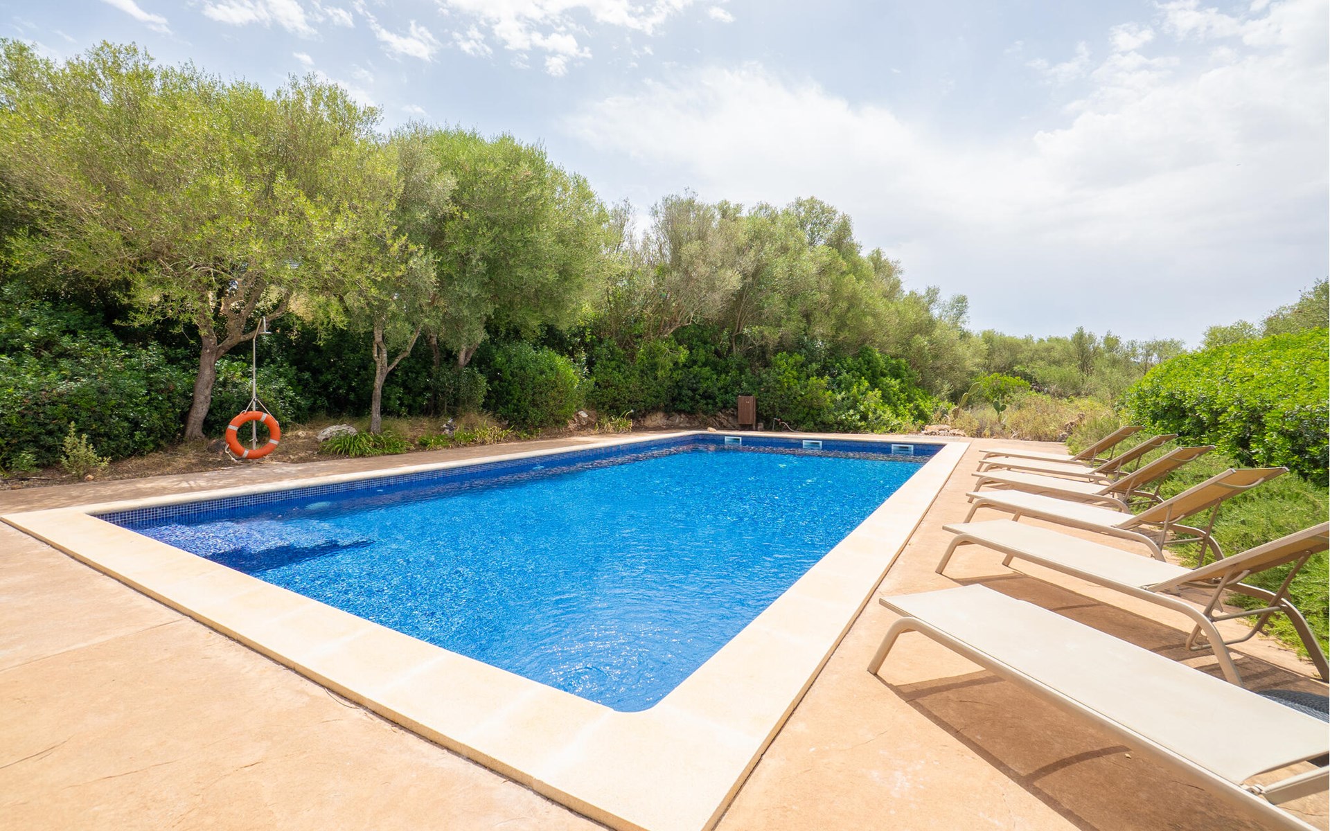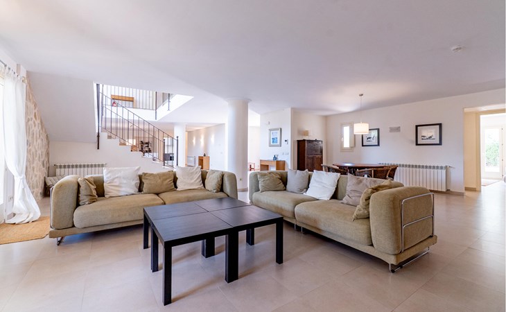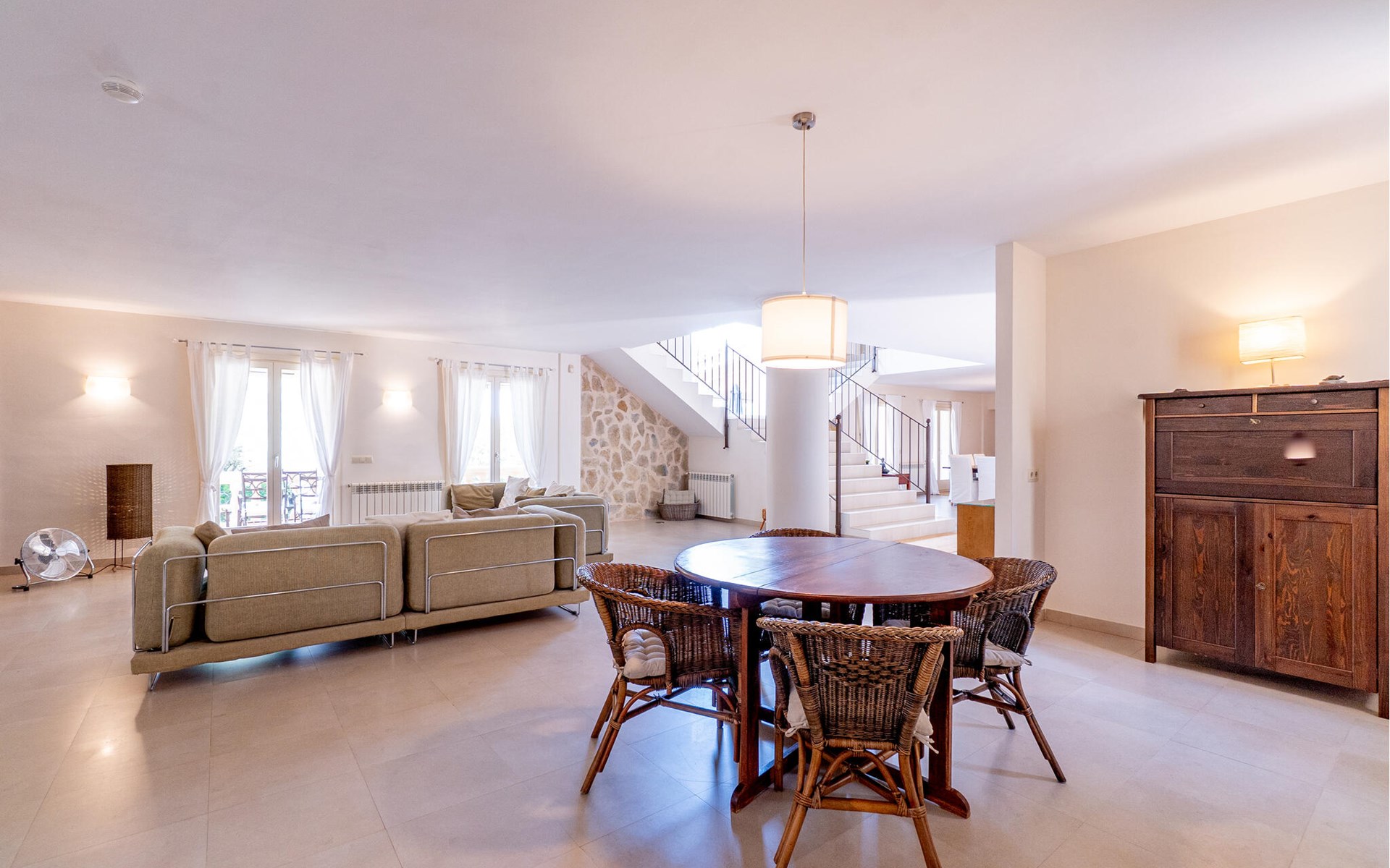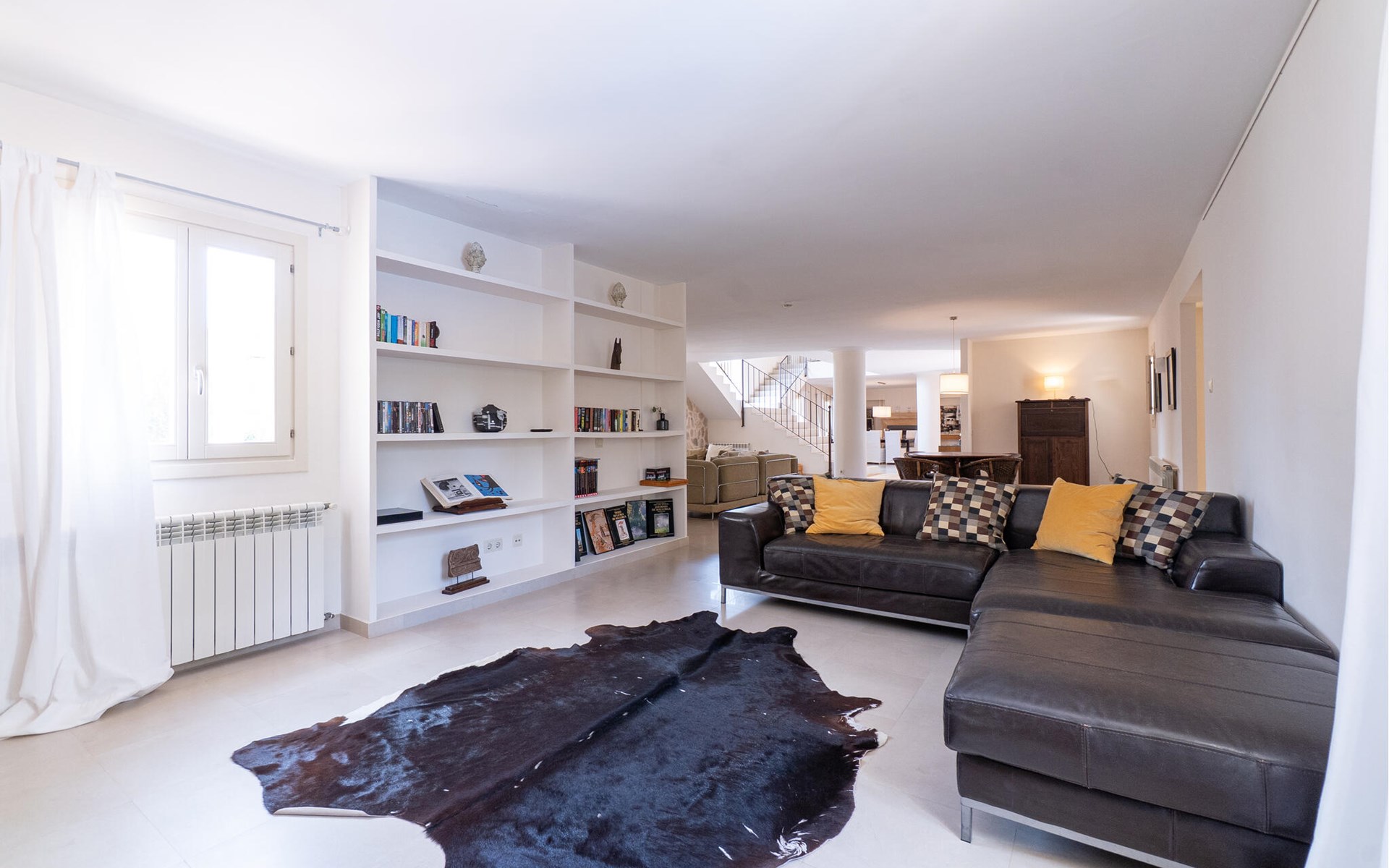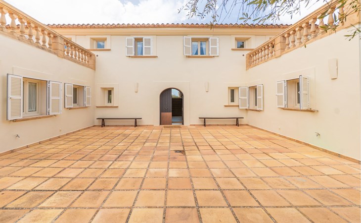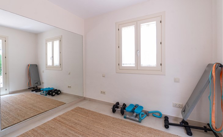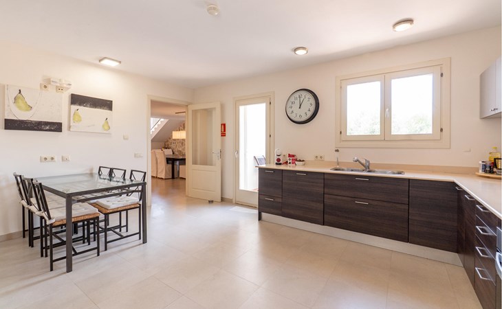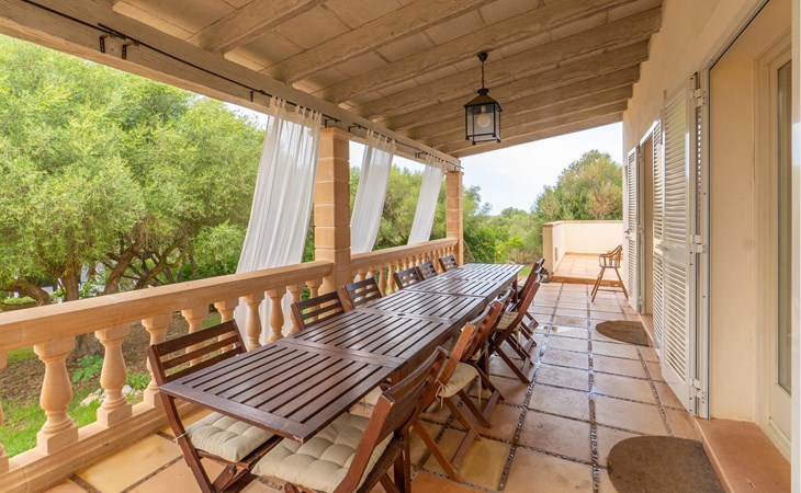 Eingebettet in ein großes, idyllisches Grundstück, das Ihnen maximale Privatsphäre verschafft, heißt Sie diese komfortable mallorquinische Finca willkommen. Dieses traumhafte Anwesen verwöhnt Sie mit allem, was einen Urlaub auf der bezaubernden Mittelmeerinsel zu einem unvergesslichen Erlebnis macht, und bietet reichlich Platz für geselliges Beisammensein – auch mit einer größeren Gruppe von Ruhesuchenden. Treten Sie ein und lassen Sie sich vom hellen und geschmackvoll eingerichteten Interieur begeistern. In der geräumigen Küche können Sie gemeinsam kulinarische Highlights aus frischen Zutaten vom Markt zubereiten und an einem der vielen Essplätze servieren. Gönnen Sie sich nach ausgedehnten Mahlzeiten eine erholsame Siesta in Ihrem behaglichen Schlafzimmer oder nutzen Sie die Trimmgeräte für Ihr Workout. Plaudern Sie vor dem Kamin über vergangene Zeiten oder ziehen Sie sich für einen Film oder ruhige Lesestunden ins einladende TV-Zimmer zurück.