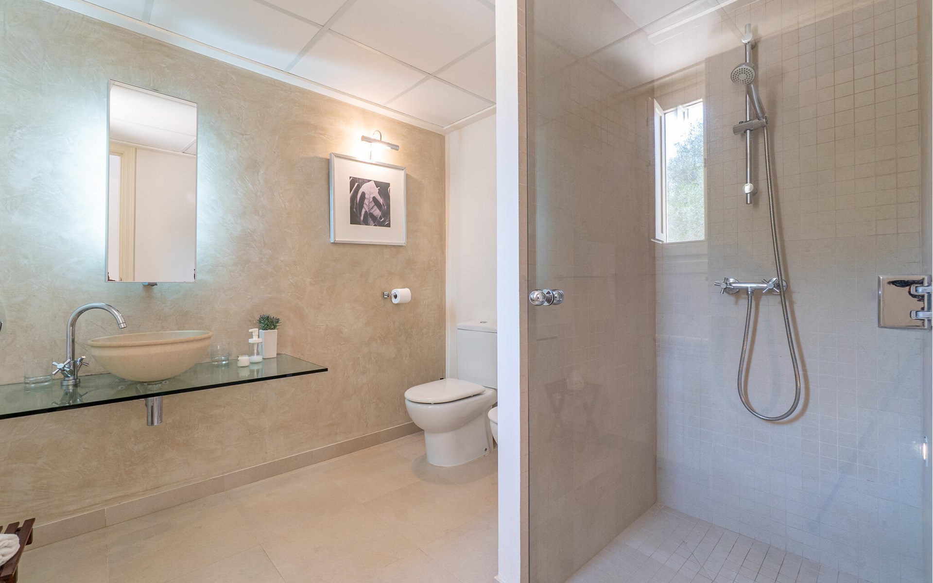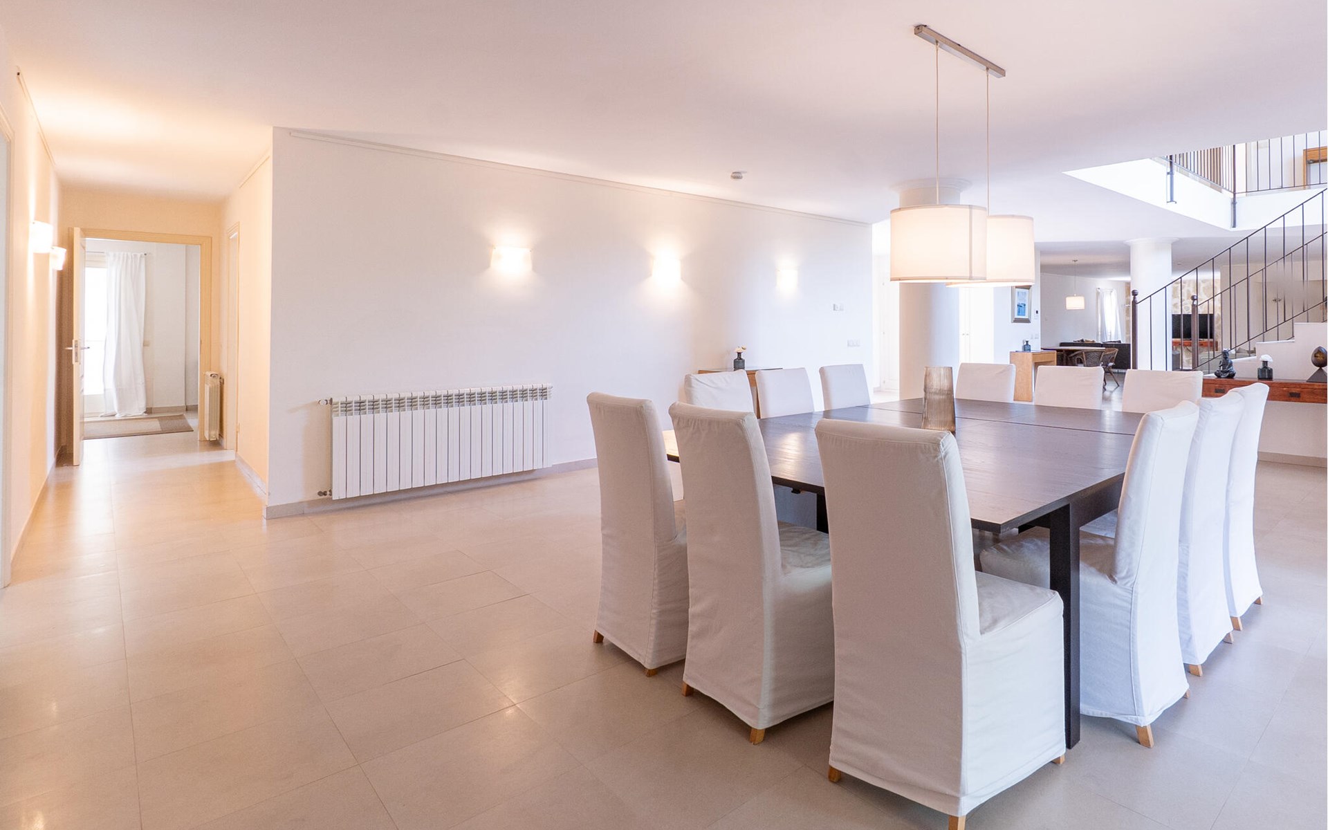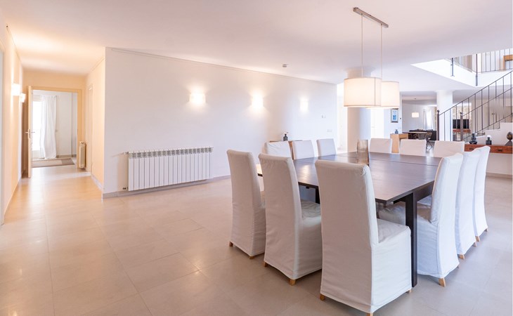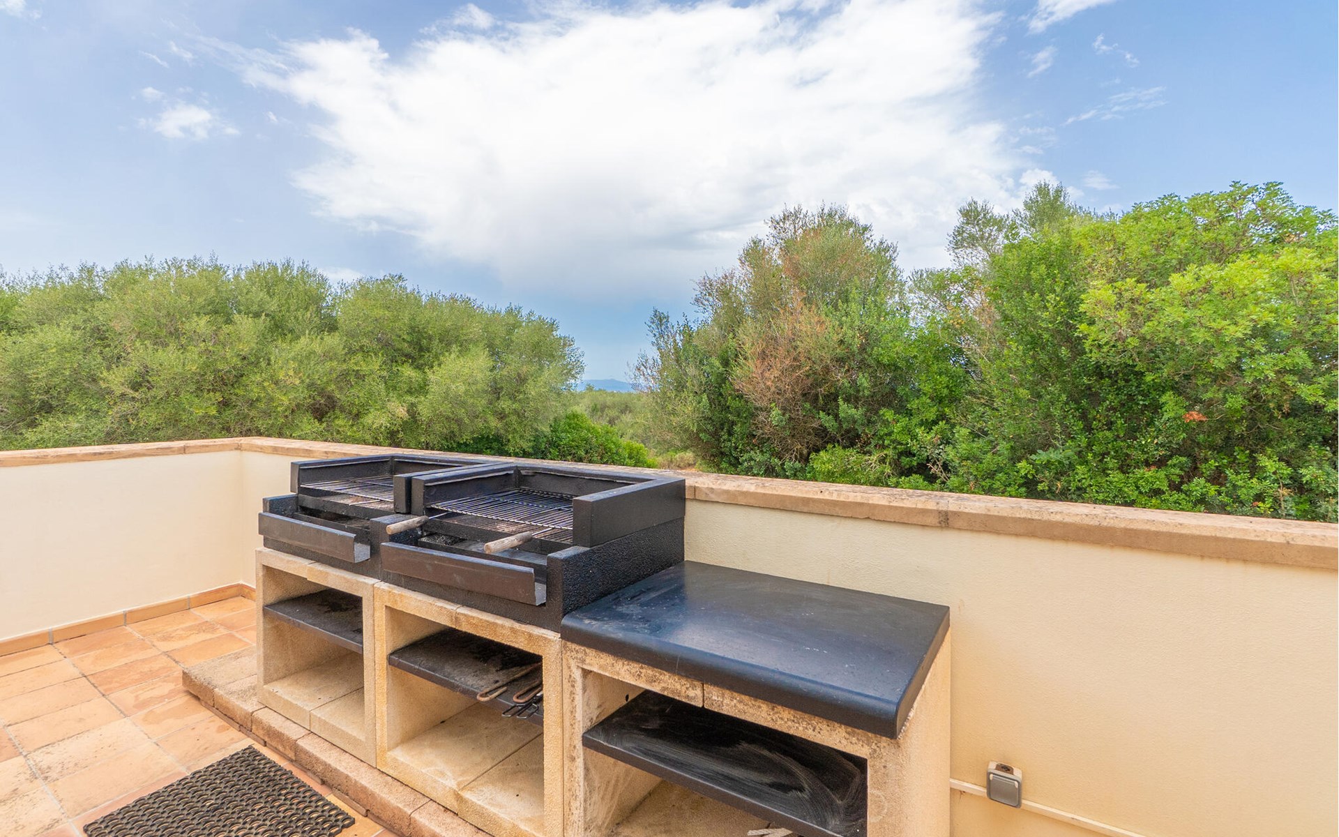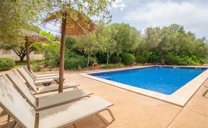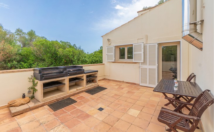 Eingebettet in ein großes, idyllisches Grundstück, das Ihnen maximale Privatsphäre verschafft, heißt Sie diese komfortable mallorquinische Finca willkommen. Dieses traumhafte Anwesen verwöhnt Sie mit allem, was einen Urlaub auf der bezaubernden Mittelmeerinsel zu einem unvergesslichen Erlebnis macht, und bietet reichlich Platz für geselliges Beisammensein – auch mit einer größeren Gruppe von Ruhesuchenden. Treten Sie ein und lassen Sie sich vom hellen und geschmackvoll eingerichteten Interieur begeistern. In der geräumigen Küche können Sie gemeinsam kulinarische Highlights aus frischen Zutaten vom Markt zubereiten und an einem der vielen Essplätze servieren. Gönnen Sie sich nach ausgedehnten Mahlzeiten eine erholsame Siesta in Ihrem behaglichen Schlafzimmer oder nutzen Sie die Trimmgeräte für Ihr Workout. Plaudern Sie vor dem Kamin über vergangene Zeiten oder ziehen Sie sich für einen Film oder ruhige Lesestunden ins einladende TV-Zimmer zurück.