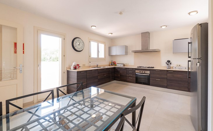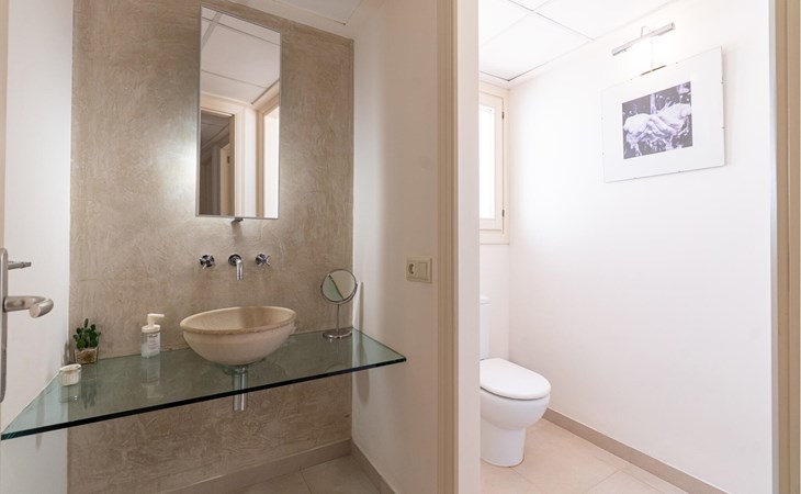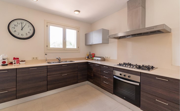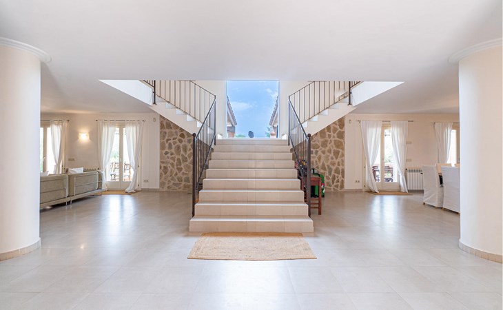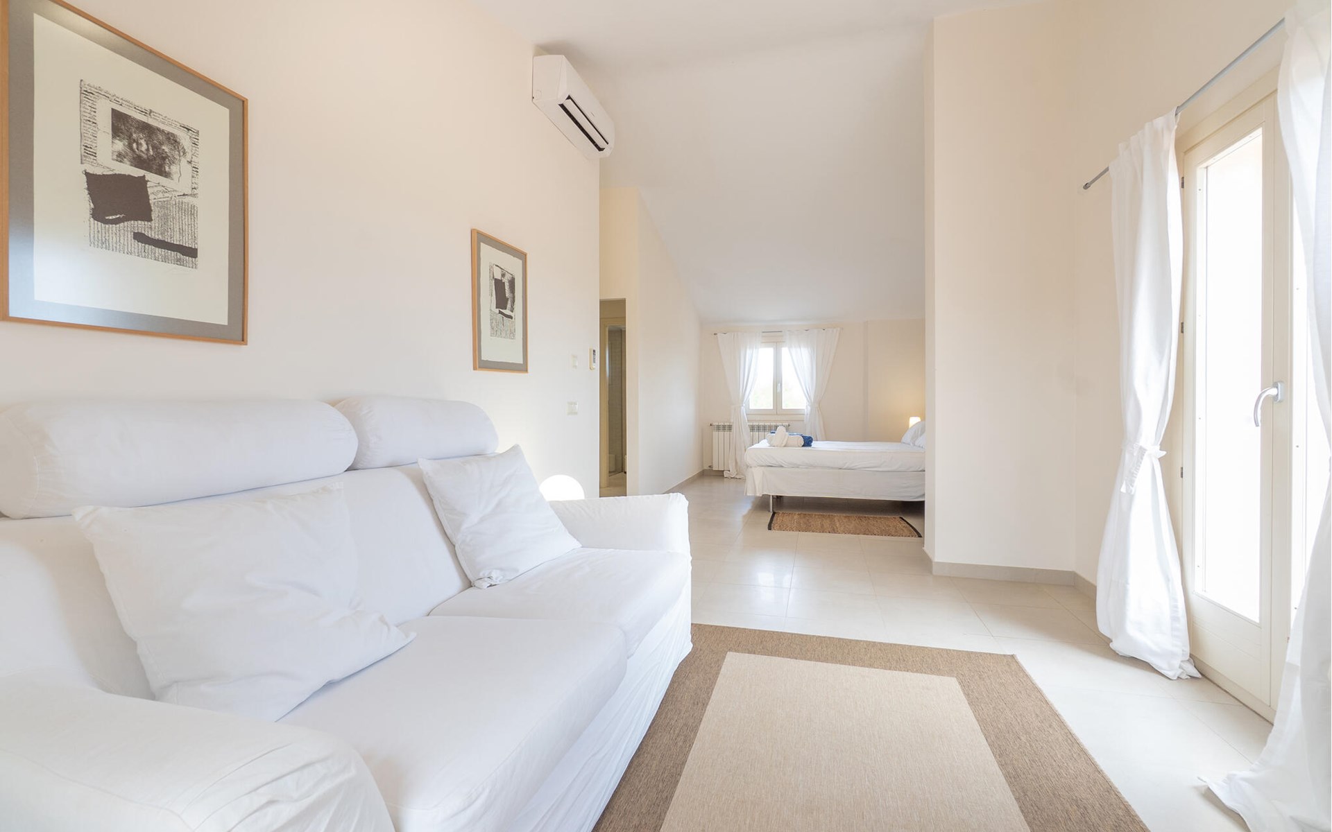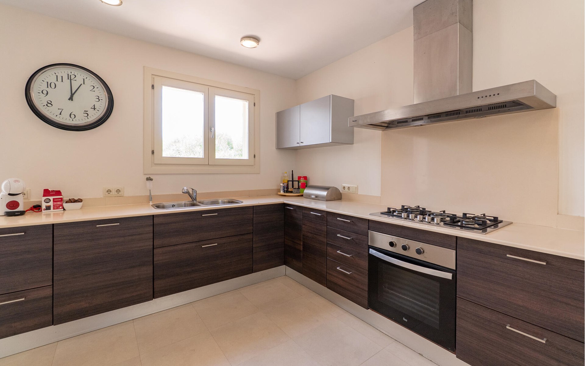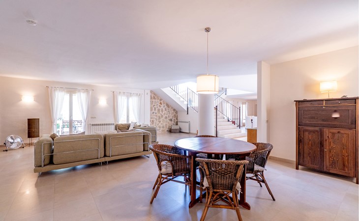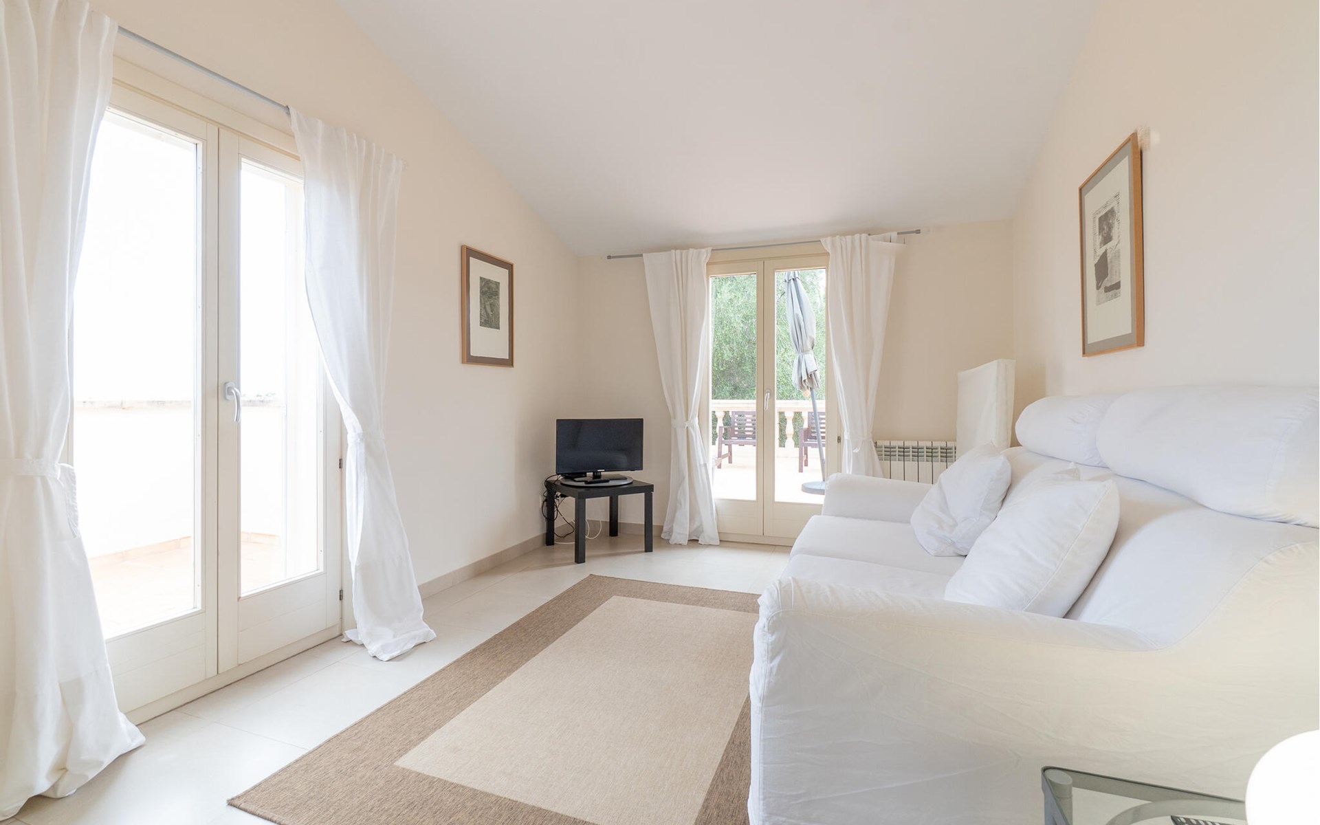 Eingebettet in ein großes, idyllisches Grundstück, das Ihnen maximale Privatsphäre verschafft, heißt Sie diese komfortable mallorquinische Finca willkommen. Dieses traumhafte Anwesen verwöhnt Sie mit allem, was einen Urlaub auf der bezaubernden Mittelmeerinsel zu einem unvergesslichen Erlebnis macht, und bietet reichlich Platz für geselliges Beisammensein – auch mit einer größeren Gruppe von Ruhesuchenden. Treten Sie ein und lassen Sie sich vom hellen und geschmackvoll eingerichteten Interieur begeistern. In der geräumigen Küche können Sie gemeinsam kulinarische Highlights aus frischen Zutaten vom Markt zubereiten und an einem der vielen Essplätze servieren. Gönnen Sie sich nach ausgedehnten Mahlzeiten eine erholsame Siesta in Ihrem behaglichen Schlafzimmer oder nutzen Sie die Trimmgeräte für Ihr Workout. Plaudern Sie vor dem Kamin über vergangene Zeiten oder ziehen Sie sich für einen Film oder ruhige Lesestunden ins einladende TV-Zimmer zurück.