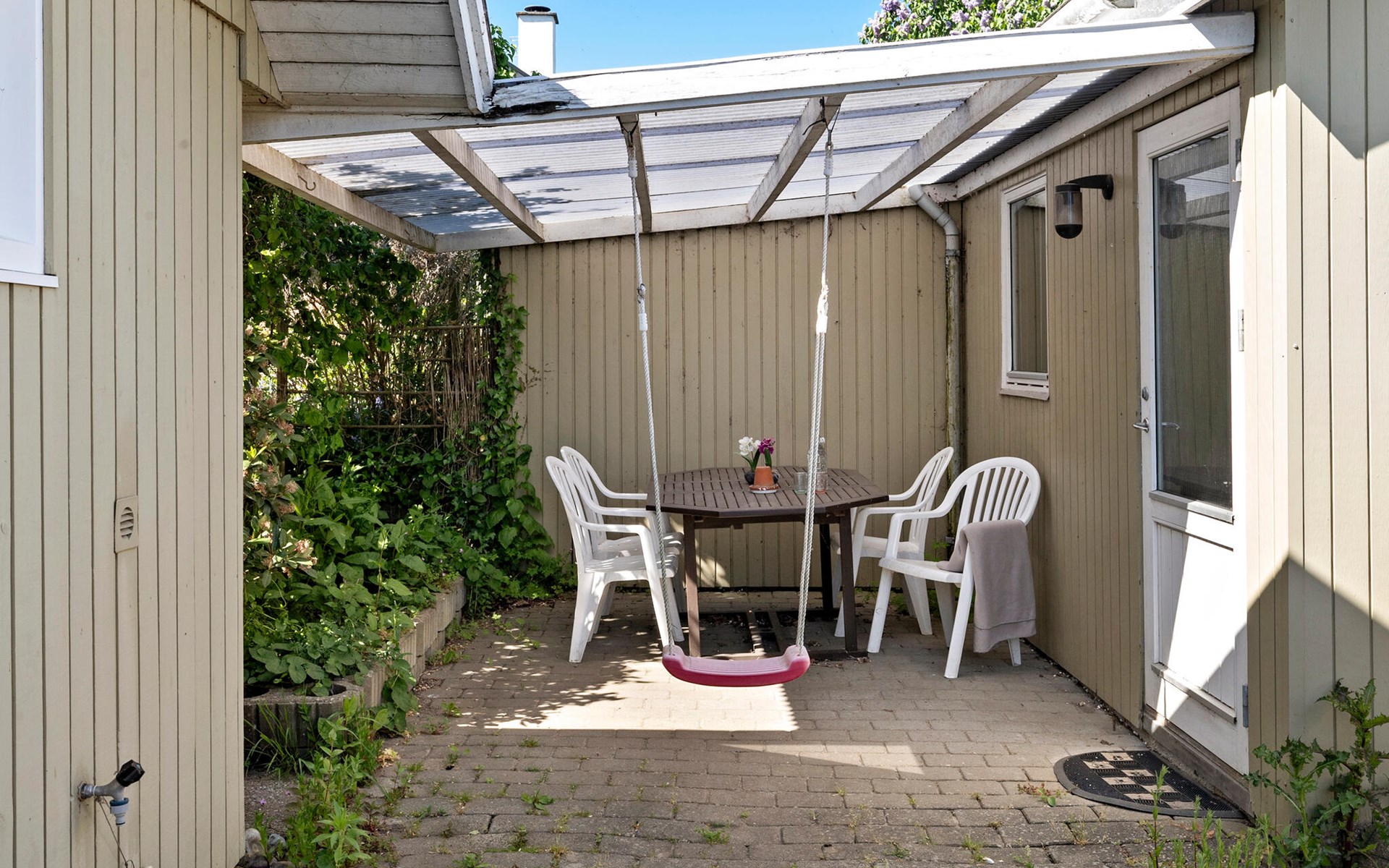 Verbringen Sie ruhige Stunden im Wintergarten oder nutzen Sie die verschiedenen Terrassenbereiche rund ums Haus. Entspannen Sie auf der gepolsterten Gartensitzgruppe, nehmen Sie Ihre Mahlzeiten im überdachten Innenhof ein oder beobachten Sie Ihre Kinder beim Schaukeln. Der Außenbereich bietet mehrere geschützte Plätze für Sonne oder Schatten.