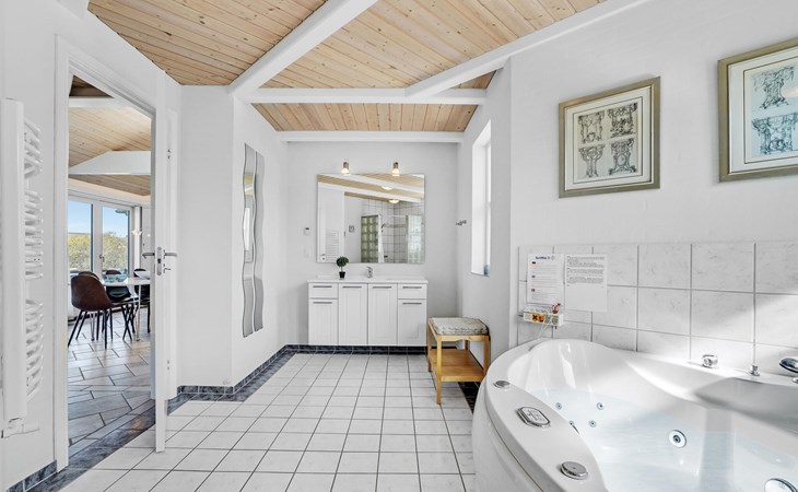 Willkommen in diesem schönen Ferienhaus, das Platz in 4 Schlafzimmern, 1 Badezimmer und einem Wohnraum mit Küche bietet. Das Haus ist hell und mit einer modernen Ausstattung eingerichtet. Entspannen Sie am Abend im Innen- oder Außenwhirlpool mit einem kühlen Getränk und lassen Sie den Tag entspannt ausklingen. Eine Sauna steht ebenfalls für schöne Wellness-Momente zur Verfügung. An warmen Tagen lädt die offene Terrasse zu einem Frühstück oder einem geselligen Grillabend mit Familie und Freunden ein.