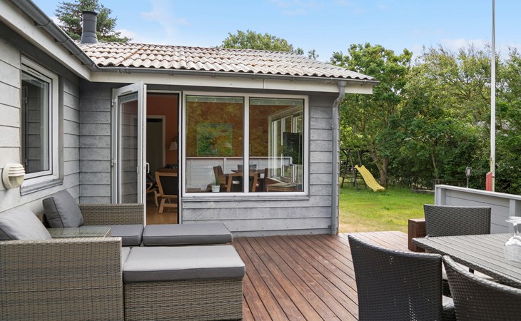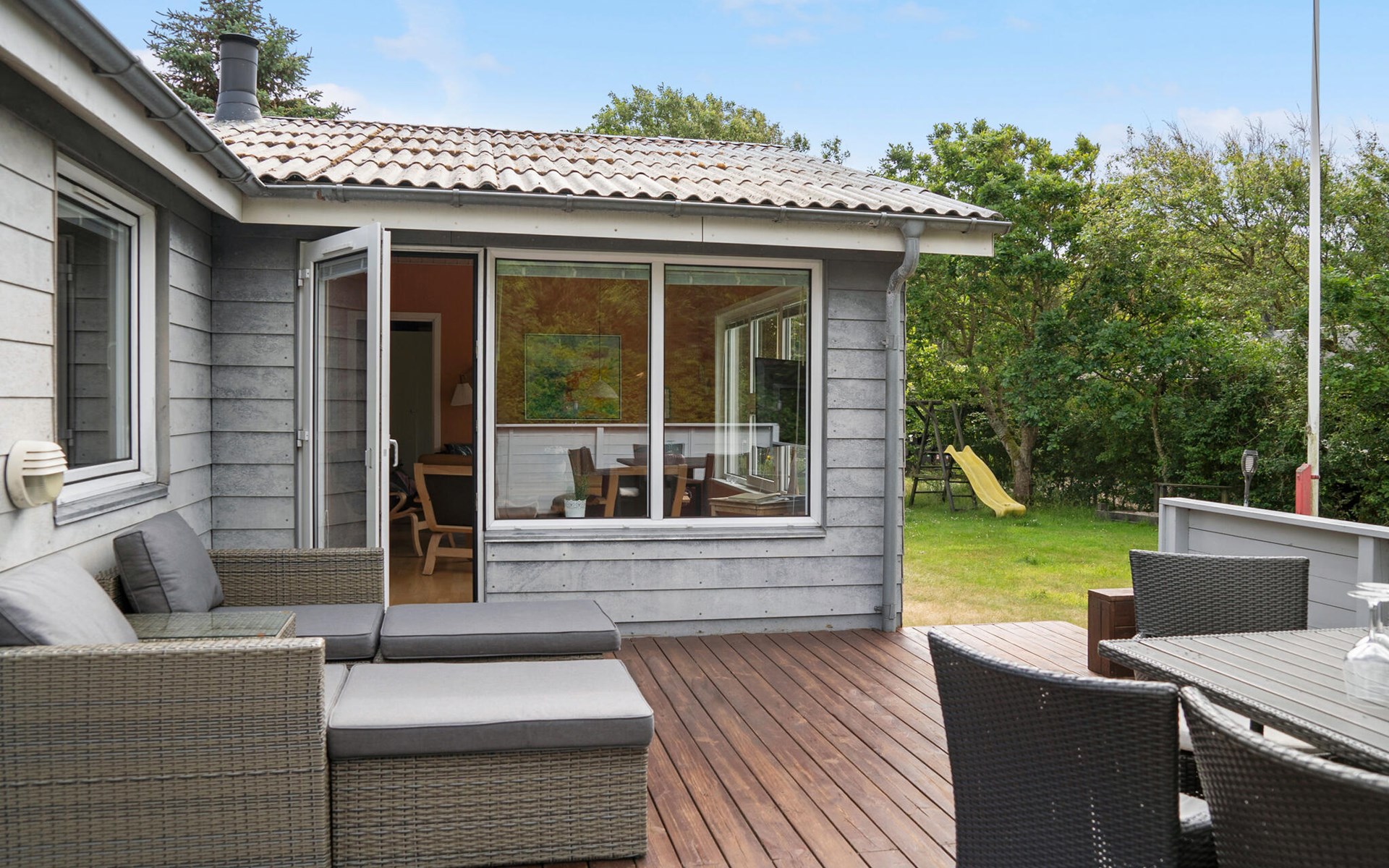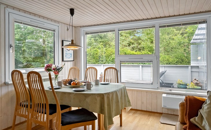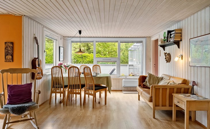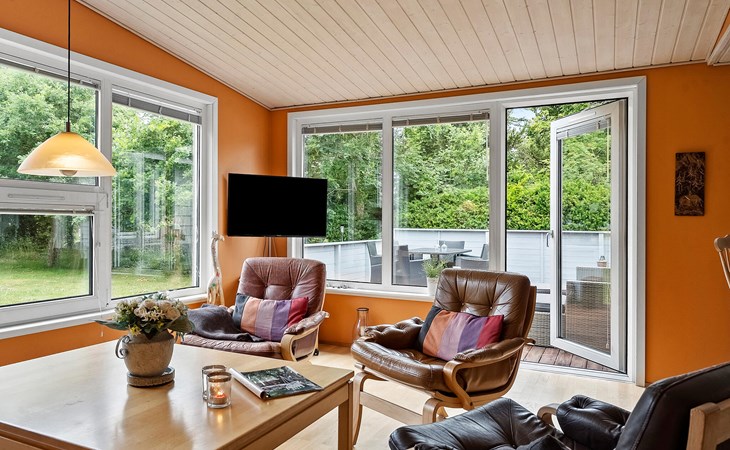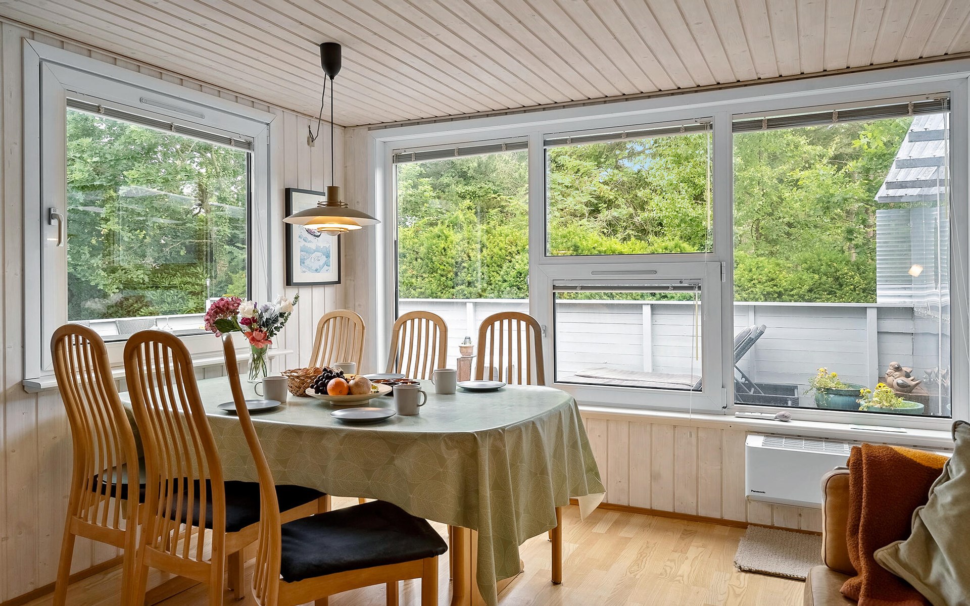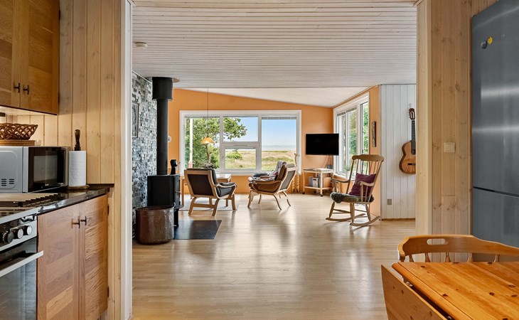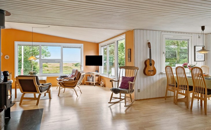 Eingebettet in die ruhige, malerische Dünenlandschaft des Limfjords und angrenzend an seine Ufer begrüßt Sie dieses behaglich eingerichtete Ferienhaus mit einer hellen und angenehmen Wohnatmosphäre. Dank großer Fensterfronten genießen Sie hier einen wunderschönen Ausblick auf den Fjord und in den grünen Garten. Freuen Sie sich auf harmonische Mahlzeiten und gemütliche Abende auf dem Sofa, wo Sie sich bei einem Brettspiel vergnügen oder bei einem Film entspannen können.