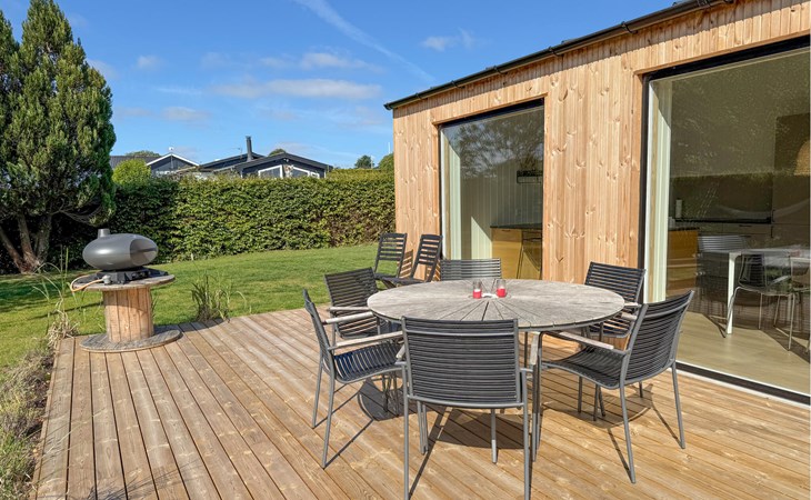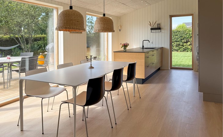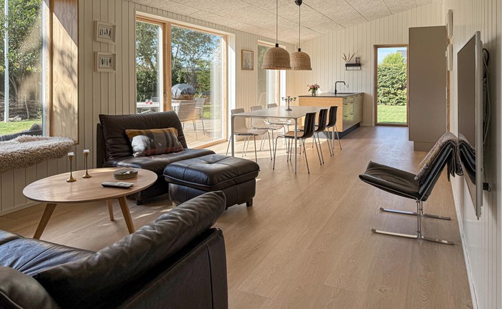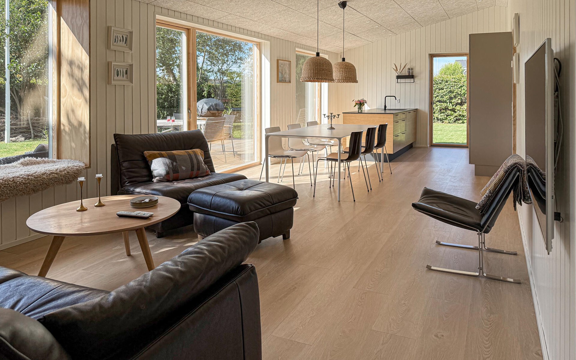 Dieses einladende Haus verspricht Ihnen einen erholsamen Urlaub der Extraklasse. Viel warmes Licht durchflutet die Innenräume, eine große Sofalandschaft lädt zu entspannten Stunden bei einer Tasse Kaffee ein und in der modernen Küche lassen sich leckere Mahlzeiten zubereiten. Tanken Sie hier neue Energie und genießen Sie Komfort und Erholung auf hohem Niveau.