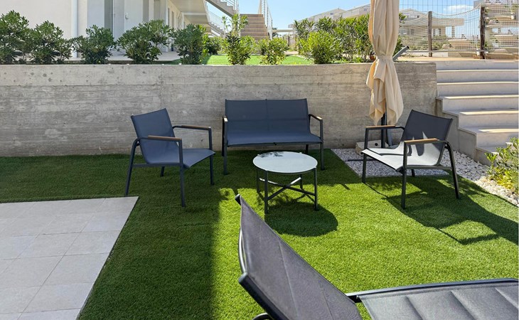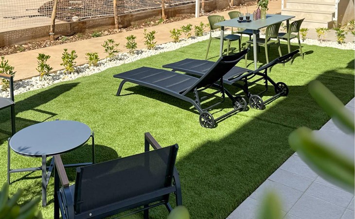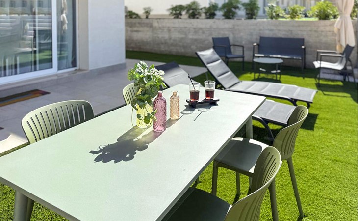 Der Pool, den Sie sich mit anderen teilen, sorgt jederzeit für eine erfrischende Abkühlung. Springen Sie schon morgens in ruhiger Atmosphäre ins glitzernde Wasser oder abends nach einem erlebnisreichen Tag. Sonnenliegen laden zum Entspannen ein, und wer Lust auf Bewegung hat, kann im Fitnessraum trainieren oder sich beim Beachvolleyball und Padeltennis mit anderen Gästen messen.