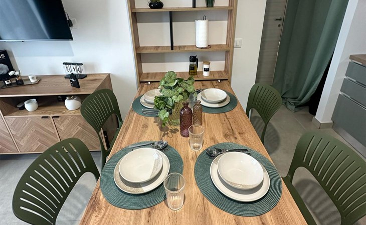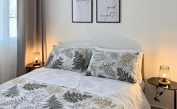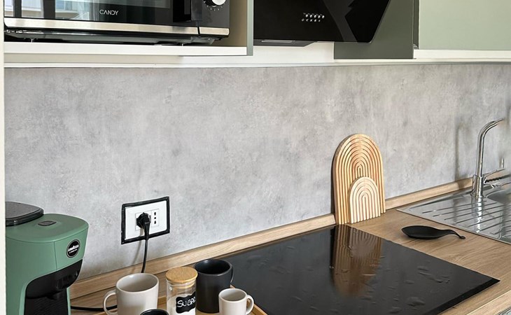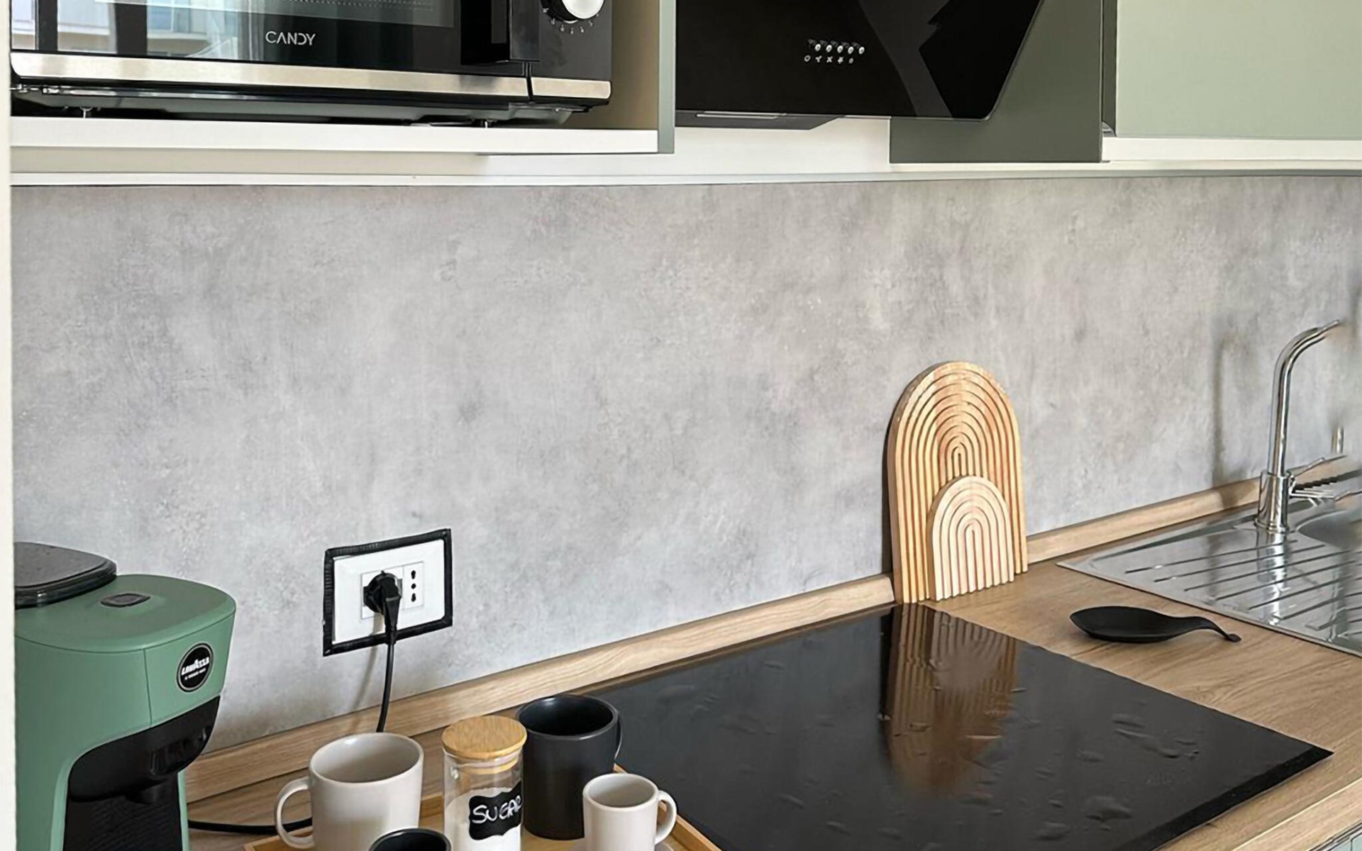 Diese Wohnung ist klar und gemütlich gestaltet – von der modernen Küche bis zum bequemen Sofa und den liebevoll ausgesuchten Details. Ob beim Kochen mit Familie oder Freunden, beim gemeinsamen Essen mit einem Glas Wein oder beim Ausklang des Tages auf dem Sofa: Hier finden Sie schnell Ruhe und Erholung.
