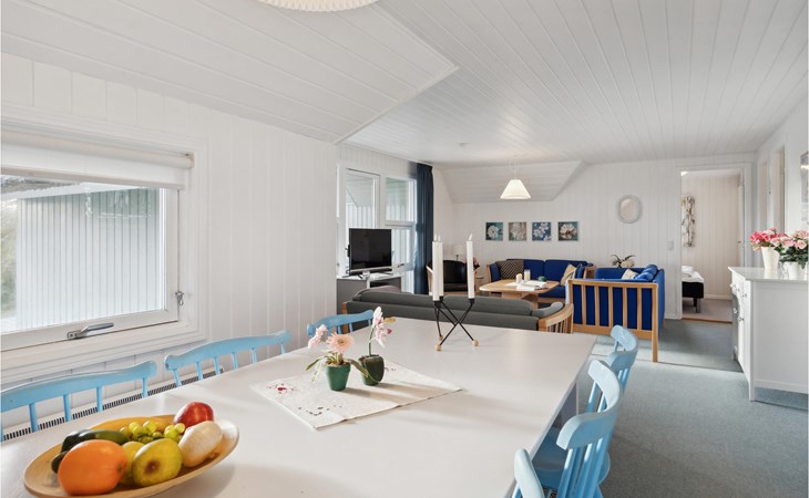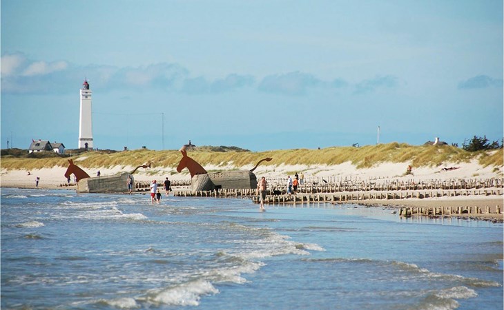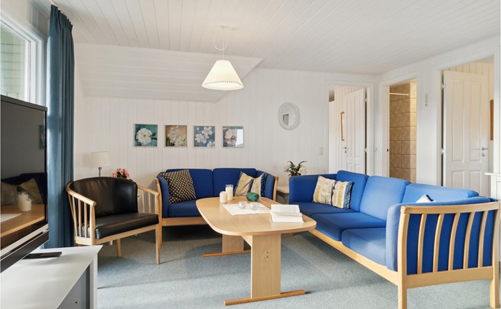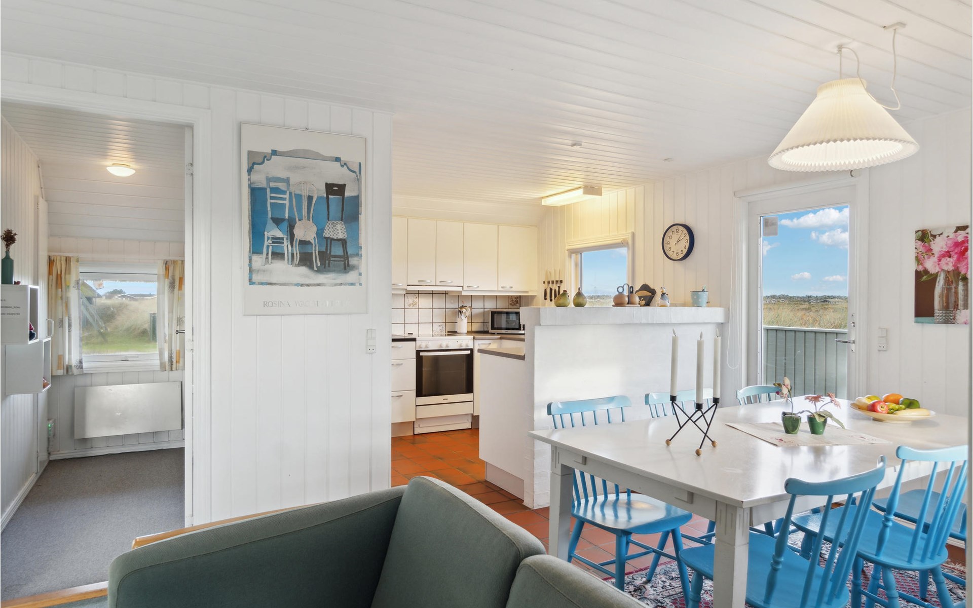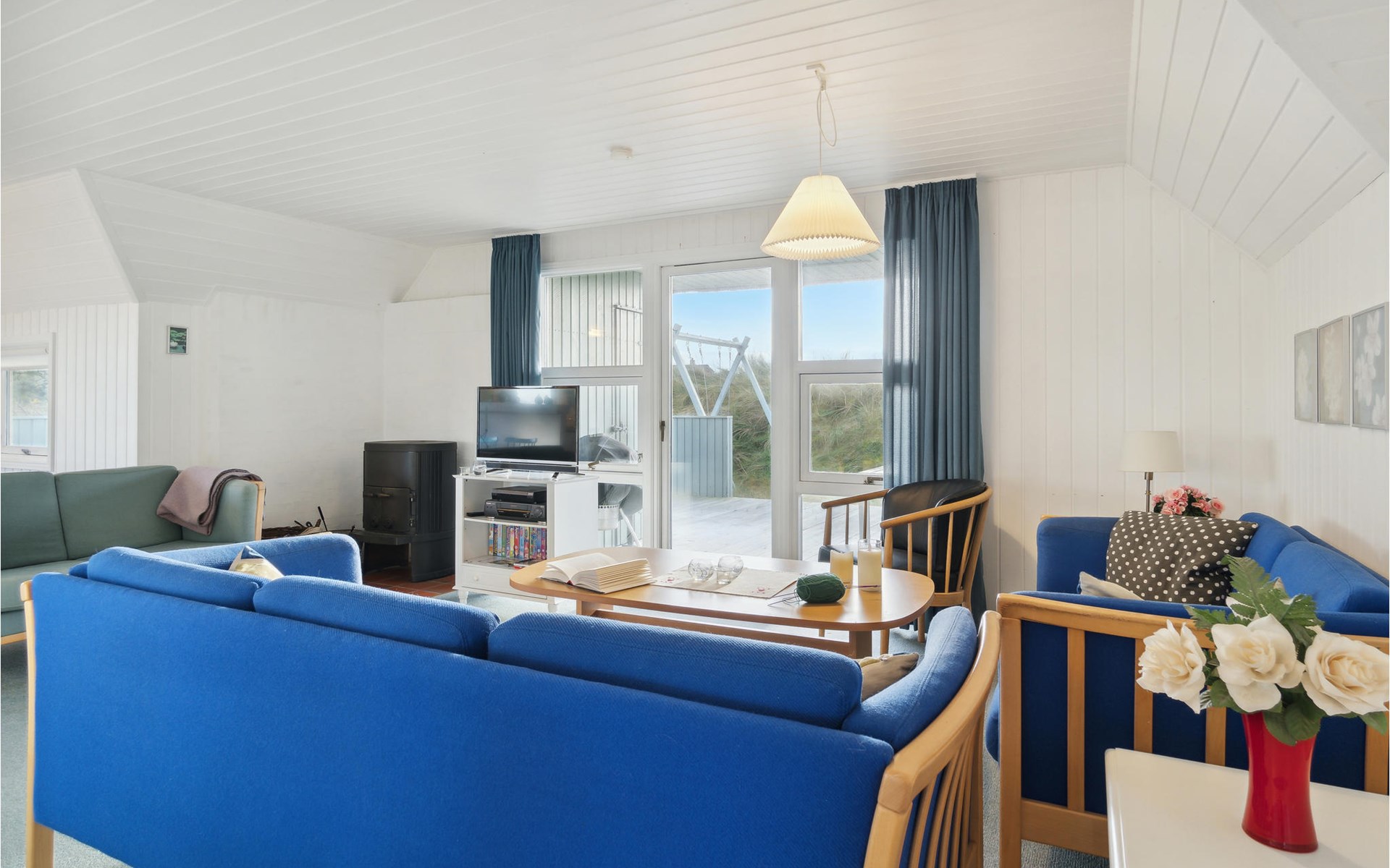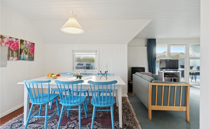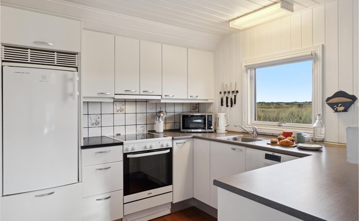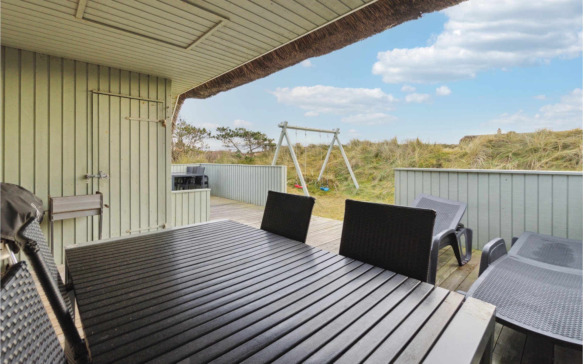 Im westlichsten Teil von Blåvand, 300 m vom Meer entfernt, steht dieses schöne Ferienhaus von Dünen umgeben. Es fügt sich mit seinem für die Gegend so charakteristischen Strohdach in die Natur schön hinein. Es ist in einem guten Stand gebaut, und drinnen ist es mit funktionellen und komfortablen Möbeln hell und einladende eingerichtet. Dieses sehr gemütliche Ferienhaus wird Ihnen den schönen Rahmen Ihres Urlaubs bilden. Draußen gibt es eine große Terrasse, wo Sie mehrere windgeschützte Ecken finden. Sie wird an lauen Sommertagen ohne Zweifel der Treffpunkt sein. Die naturschöne Umgebung ist ideal für Spaziergänge in der frischen Nordseeluft.