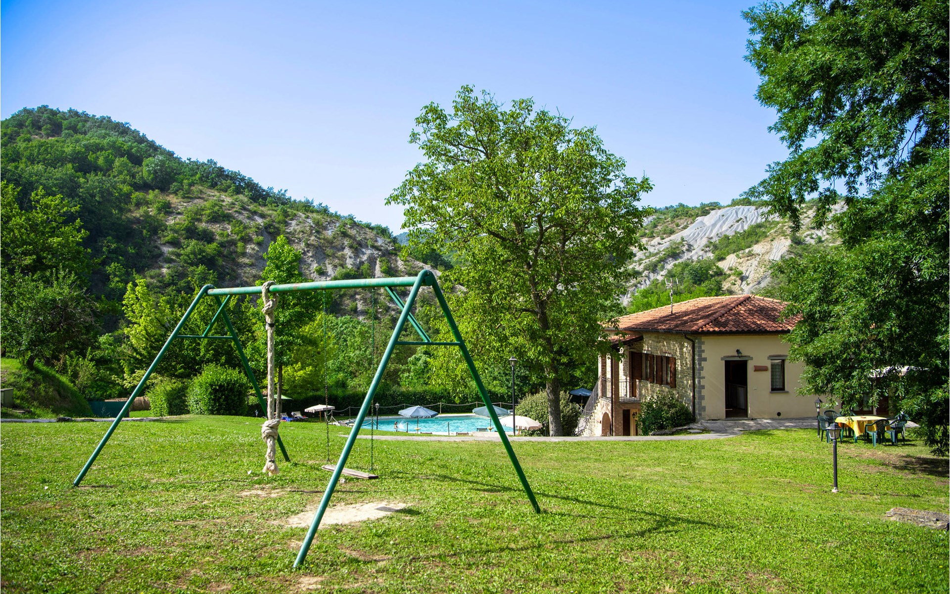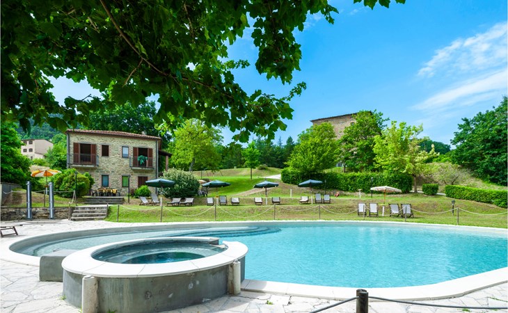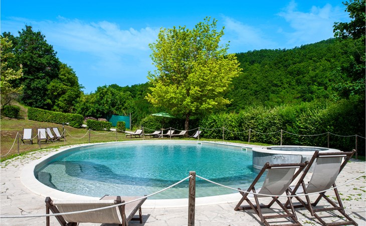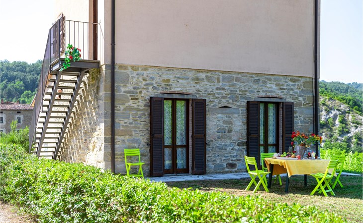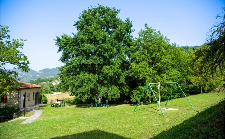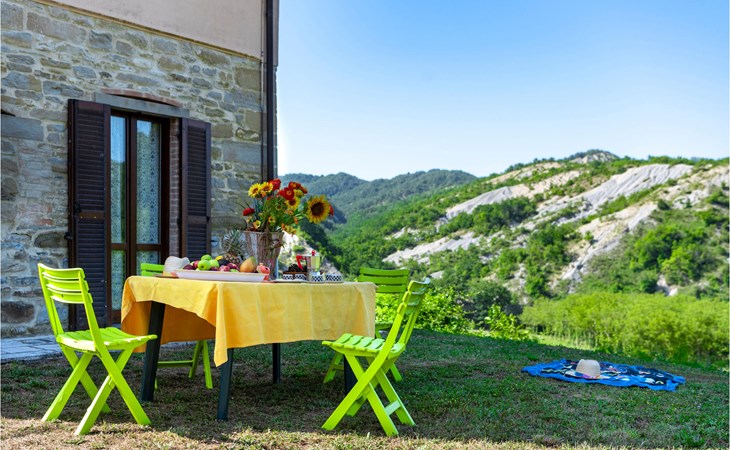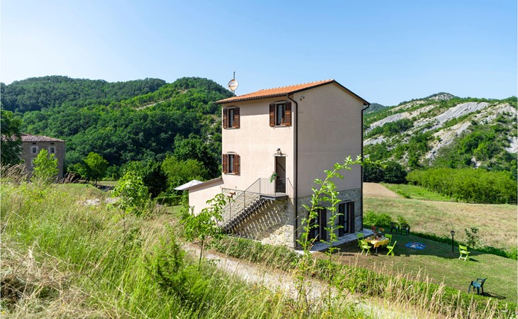 Diese Ferienwohnung befindet sich auf dem Anwesen namens Valguerriera ca. 4 km von Piobbico entfernt in einem Tal im Apennin, ein ideales Reiseziel für all diejenigen, die einen erholsamen Urlaub in unberührter Natur verbringen möchten. Das Anwesen besteht aus dem Herrenhaus und drei Landhäusern, den großzügigen, gemeinschaftlichen Außenbereichen und dem schönen, gemeinschaftlichen Schwimmbad (17x10m) mit Unterwassermassage. In den Landhäusern entstanden insgesamt 11 ansprechend eingerichtete Ferienwohnungen. Die Wohnung verfügt über einen eigenen Außenbereich mit Tisch, Stühlen und Sonnenschirm, wo Sie sich entspannen und Ihre Mahlzeiten im Freien einnehmen können. Grill und Waschmaschine zur gemeinschaftlichen Benutzung. Parkplatz auf dem Grundstück. 1 Babybett verfügbar. Das Anwesen befindet sich in den Marken an der Grenze zu den Regionen Toskana und Umbrien in der Nähe von Piobbico (Provinz Pesaro und Urbino), in einem ruhigen Tal namens Candigliano, eins der schönsten und ursprünglichsten Täler im Hinterland von Pesaro, das über ein mildes Klima verfügt und von wo aus Sie einen wundervollen Blick auf den Apennin genießen. In der Umgebung finden Sie Kunst- und Renaissancestädte wie beispielsweise Urbino, UNESCO-Welterbe, bezaubernde, mittelalterliche Dörfer wie Piobbico, Apecchio, Sant’Angelo in Vado und Acqualagna, bekannt für ihre Trüffel, oder Urbania, Cagli, San Marino, Gradara und San Leo. Die Lage des Anwesens ist günstig auch für etwas weitere Tagesausflüge nach Gubbio, Assisi, Perugia, Città di Castello, Arezzo, San Sepolcro, Loreto, Florenz und Siena, alles Orte von großem, kunsthistorischem Interesse, oder nach San Marino, zur Burg von Gradara, den Grotten von Frasassi bzw. zum Furlopass. ENTFERNUNGEN: 4 km Piobbico (Lebensmittelgeschäft und andere Einkaufsmöglichkeiten, Bank, Apotheke, Arzt), 30 km Urbino, 55 km Fano und die Strände der Adriaküste, die man in etwa einer Autostunde erreicht. 6 km ein Wellnesscenter und 10 km entfernt eine Reitbahn. Möglichkeit zu geführten Ausflügen. Die 11 Ferienwohnungen und das unabhängige Ferienhaus, das sich aus 3 der insgesamt 11 Ferienwohnungen zusammensetzt, haben die folgenden Referenznummern: IMM127/422/423/424; IMM128/129/130/131; IMM421/412/419/420. Als Willkommensgeschenk erhalten die Gäste eine Flasche Wein und eine Weinprobe (einmal pro Woche) in einem Weinkeller mit Weinen und typischen Produkten. Für Novasol Gäste gibt es auch Sonderpreise bei einem 10 km entfernten Ausritt und bei einem 6 km entfernten Wellnesscenter. WLAN in den Außengemeinschaftsbereichen.