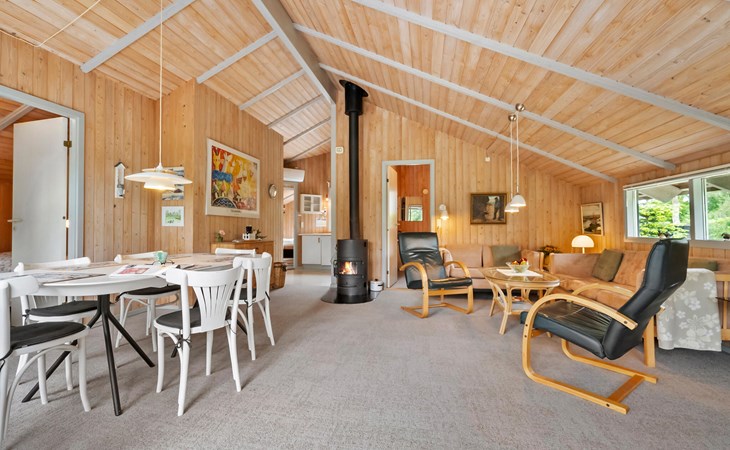 Treten Sie ein und lassen Sie sich vom geräumigen und gemütlichen Innenbereich dieses komfortablen Ferienhauses am Ringkøbing Fjord begeistern. Hier ist alles für harmonische und erholsame Tage mit Ihren Liebsten vorbereitet. Freuen Sie sich auf gesellige Mahlzeiten und gemütliche Spieleabende, gönnen Sie sich wohlige Momente in der Sauna und lauschen Sie dem leisen Knistern des Kamins, während Sie es sich für einen gemeinsamen Filmabend bequem machen.
