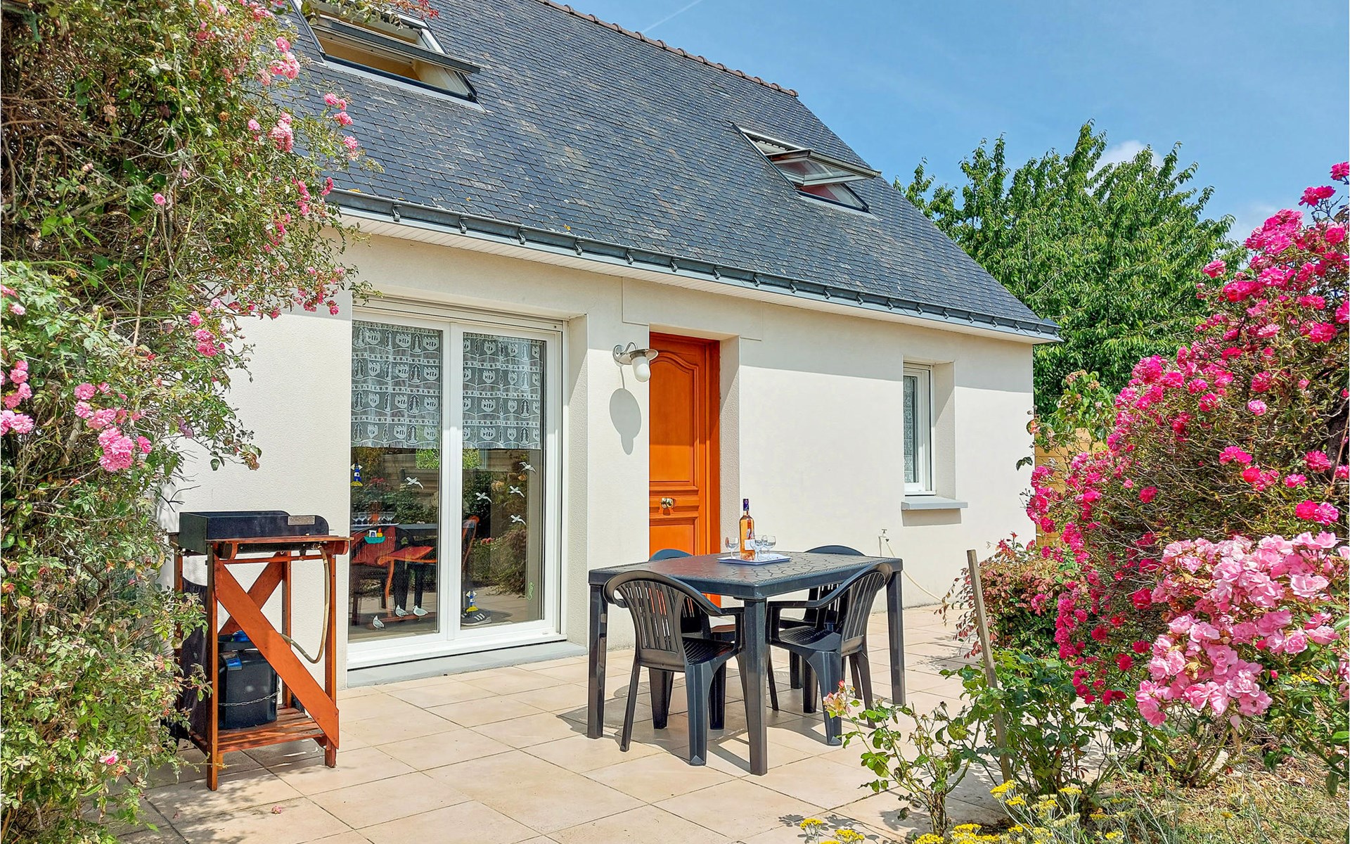 Zum Zentrum von Clohars-Carnoët und zum malerischen Hafen von Doëlan ist es nicht weit. Unternehmen Sie viele herrliche Spaziergänge, z. B. durch den Wald, am Fluss Laïta oder entlang der Küste. Die Strände von Pouldu bieten in der Hochsaison beste Bedingungen für Badevergnügen und sind ebenfalls bei Surfern beliebt. Abends lädt die wunderschöne Stadt Quimperlé zum Flanieren auf ihren gepflasterten Straßen ein.