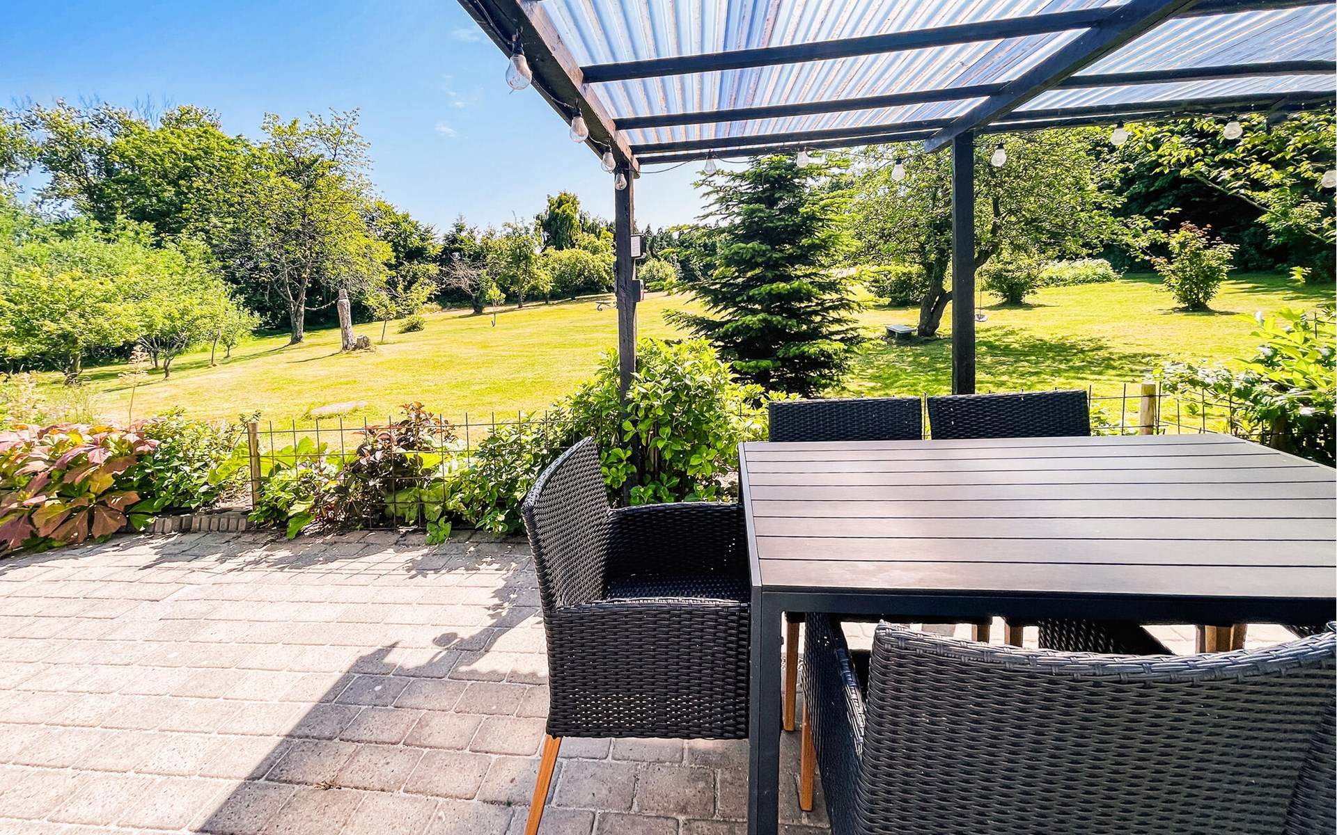 Draußen erwartet Sie eine weitläufige Gartenlandschaft, in der Ihre Kinder spielerisch die Natur entdecken können. Beginnen Sie den Tag mit einer Tasse Kaffee auf der sonnigen Terrasse und veranstalten Sie stimmungsvolle Barbecues unter freiem Himmel.