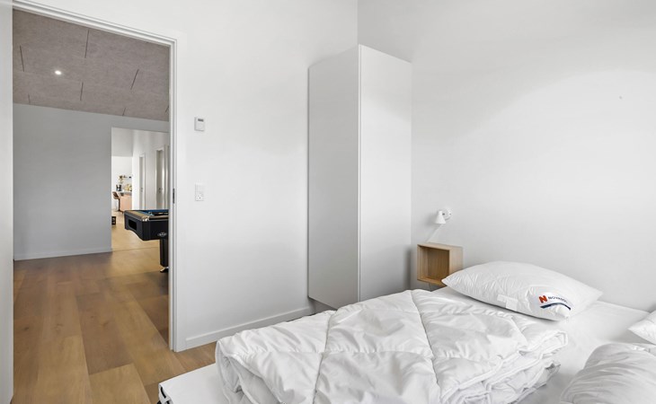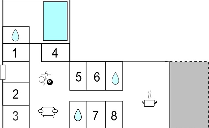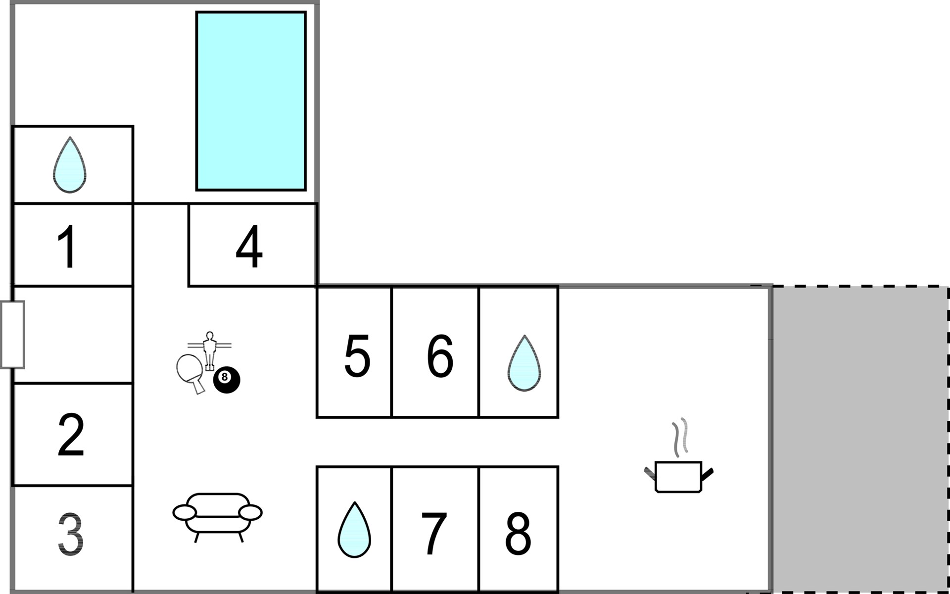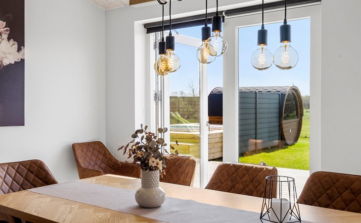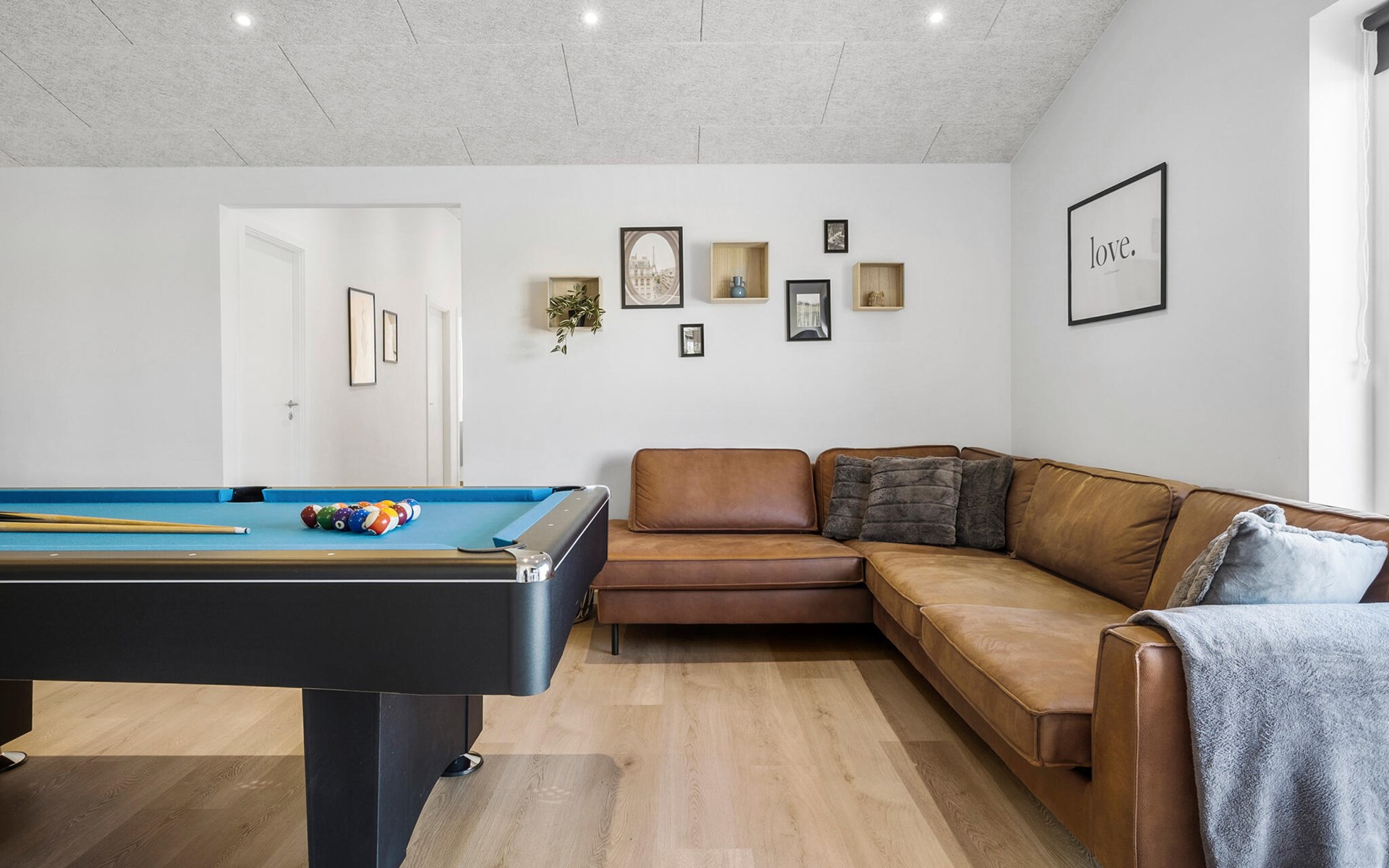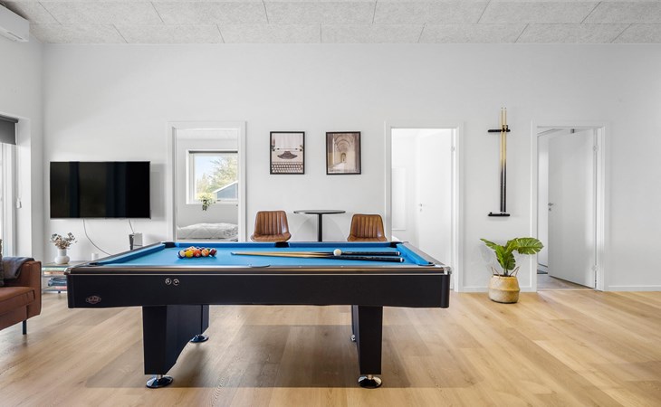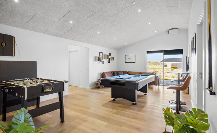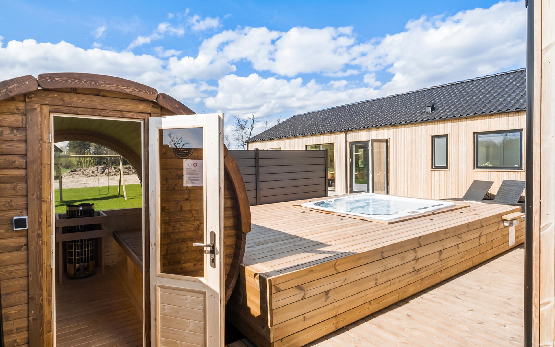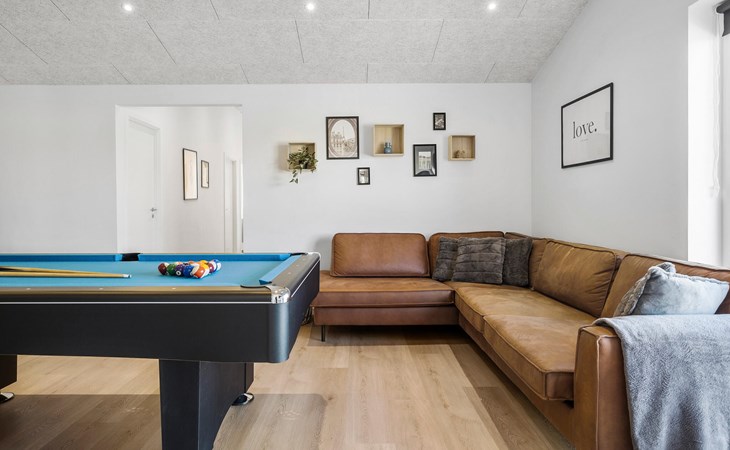 Freuen Sie sich auf dieses luxuriöse Haus mit Schwimmbad und tollem Außen-Wellnessbereich und reisen mit befreundeten Familien hier an und genießen eine wohltuende Auszeit von Ihrem Alltag. Das moderne und große Haus hat allerhand zu bieten und verspricht Ihnen Entspannung und Unterhaltung. Egal ob Sie beim Kochen und Essen in der hellen Essküche verweilen oder sich im Aktivitätsraum zu Billard, Darts oder Tischfußball herausfordern, Sie werden Ihre Zeit hier genießen und sich wohlfühlen. Freuen Sie sich auch auf das Schwimmbad im Haus oder treten durch die Terrassentür hinaus, wo ein Whirlpool und eine Fasssauna Sie zum Relaxen auffordern. Entdecken Sie zudem die große und teilweise überdachte Terrasse, die ideale Umgebung für BBQs während Ihre Kinder die Spielgeräte im Garten erkunden.