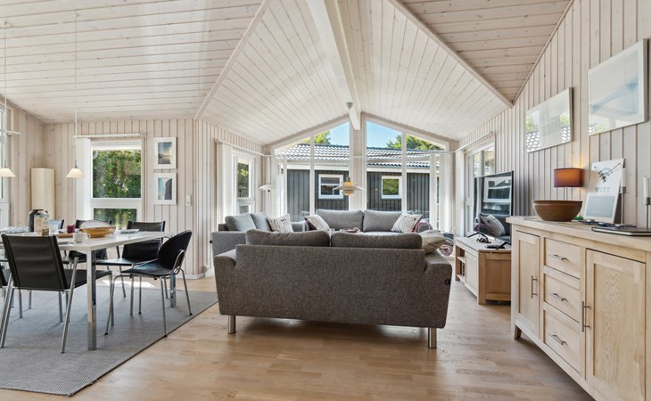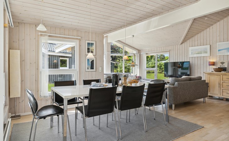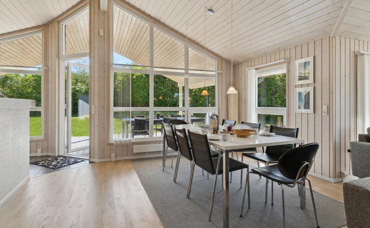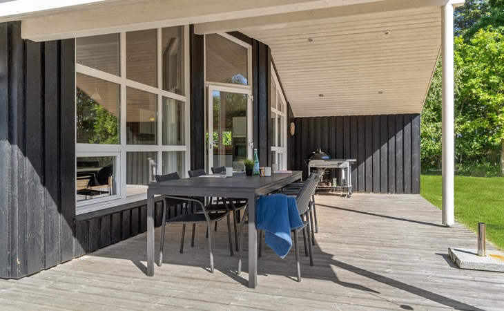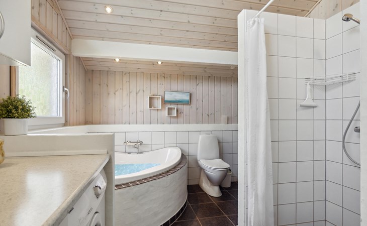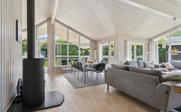 Willkommen in diesem hellen und einladenden Ferienhaus, das sich ideal dafür eignet, gemeinsam mit einer befreundeten Familie zu verreisen. Fühlen Sie sich wie zuhause und nehmen die Räume für sich ein. Der freundliche und lichtdurchflutete Wohnraum ist perfekt, um sich auf den Sofas zu entspannen, am Esstisch Brettspiele zu spielen oder in der Küche zu zaubern. Für Ihre Entspannung sorgt die Whirlwanne, in der Sie es sich gemütlich machen können. Je nach Tageszeit können Sie sich Ihre Lieblingsterrasse aussuchen, die Sonne genießen oder gemeinsam grillen. Schauen Sie dabei Ihren Kindern beim Spielen auf dem großen und offenen Grundstück zu.