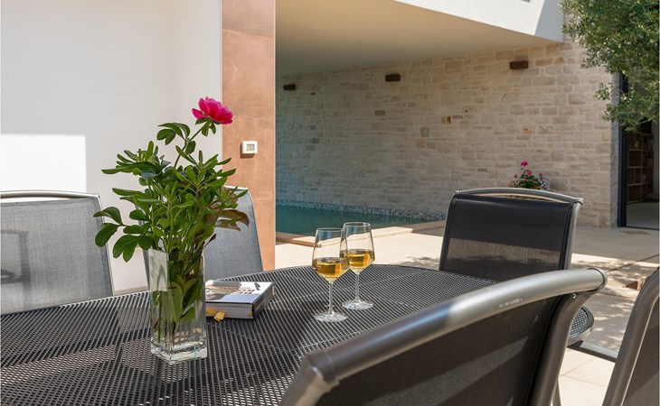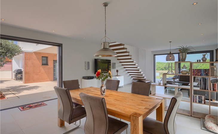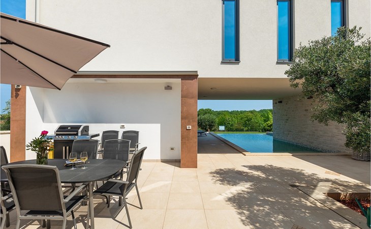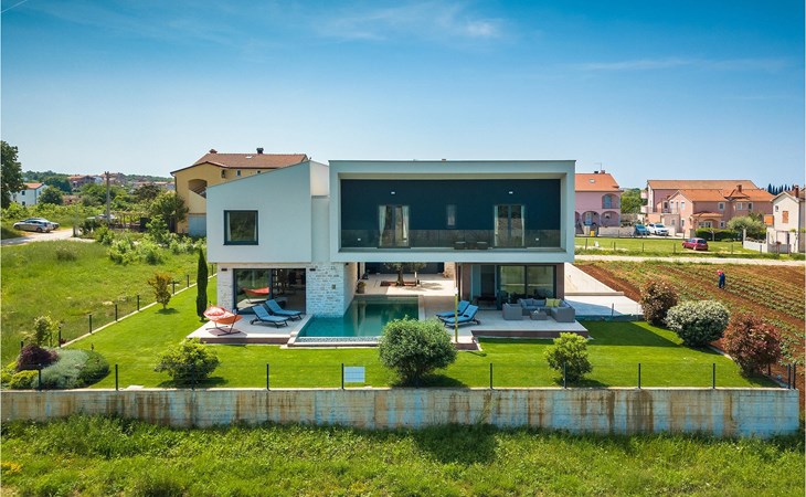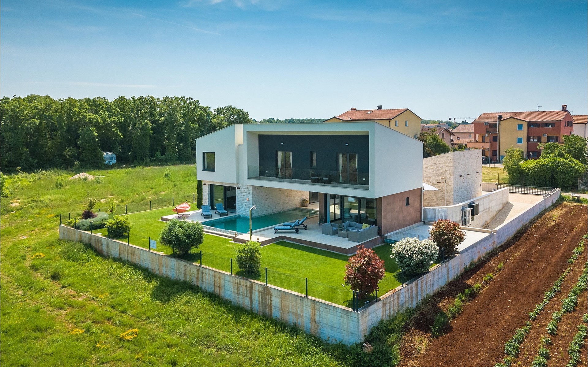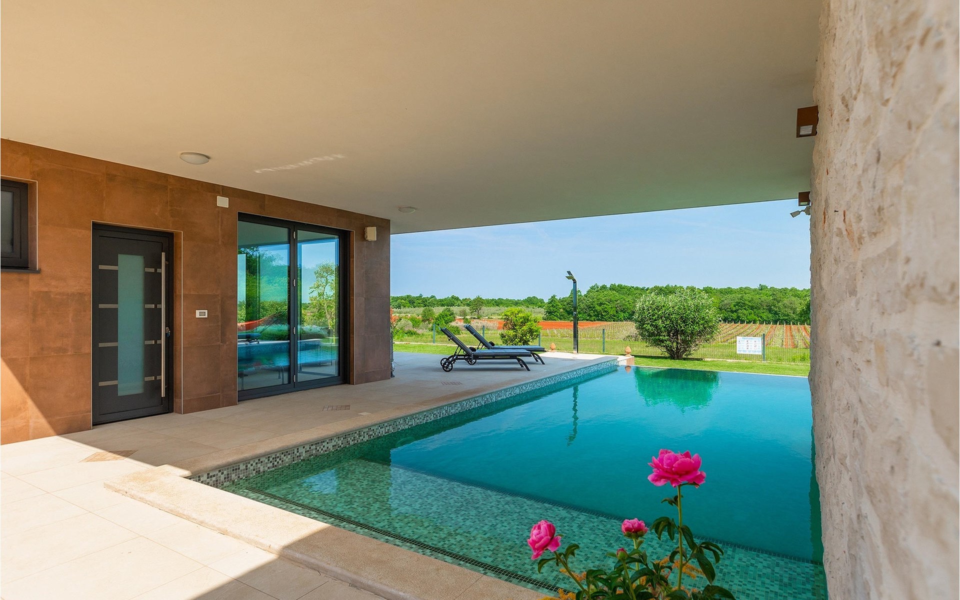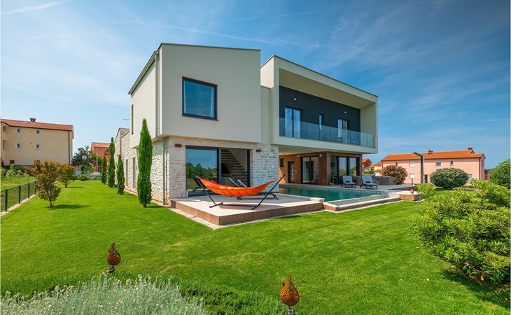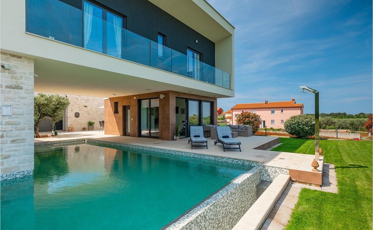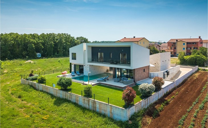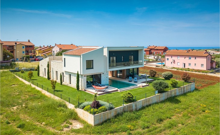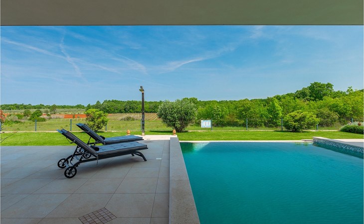 Am Stadtrand von Novigrad an der Westküste Istriens liegt die luxuriöse Villa Felice Novigrad umgeben von grüner Landschaft. Dies ist die Villa, in der Sie Ihren wohlverdienten Urlaub mit Familie und Freunden in vollen Zügen genießen können. Der absolute Hingucker ist neben dem modernen Design der Villa sicherlich der 50m2 große private Pool. Erfrischen Sie sich hier an heißen Sommertagen und lassen Sie die Seele baumeln, während Sie Ihren Blick über die grüne Umgebung schweifen lassen. Entspannen Sie auf einer der Sonnenliegen und tanken Sie die istrische Sonne.