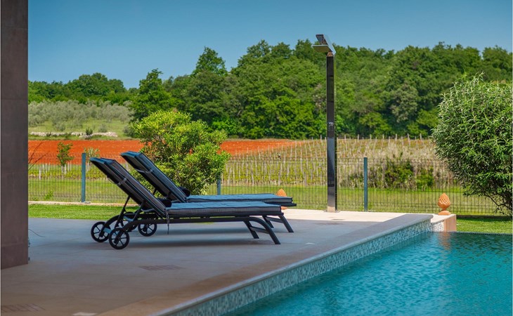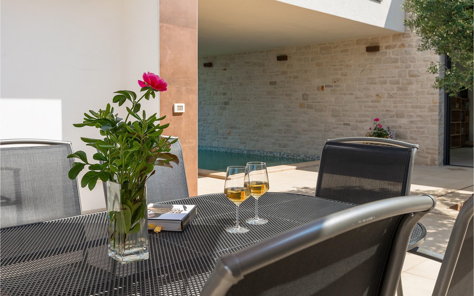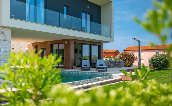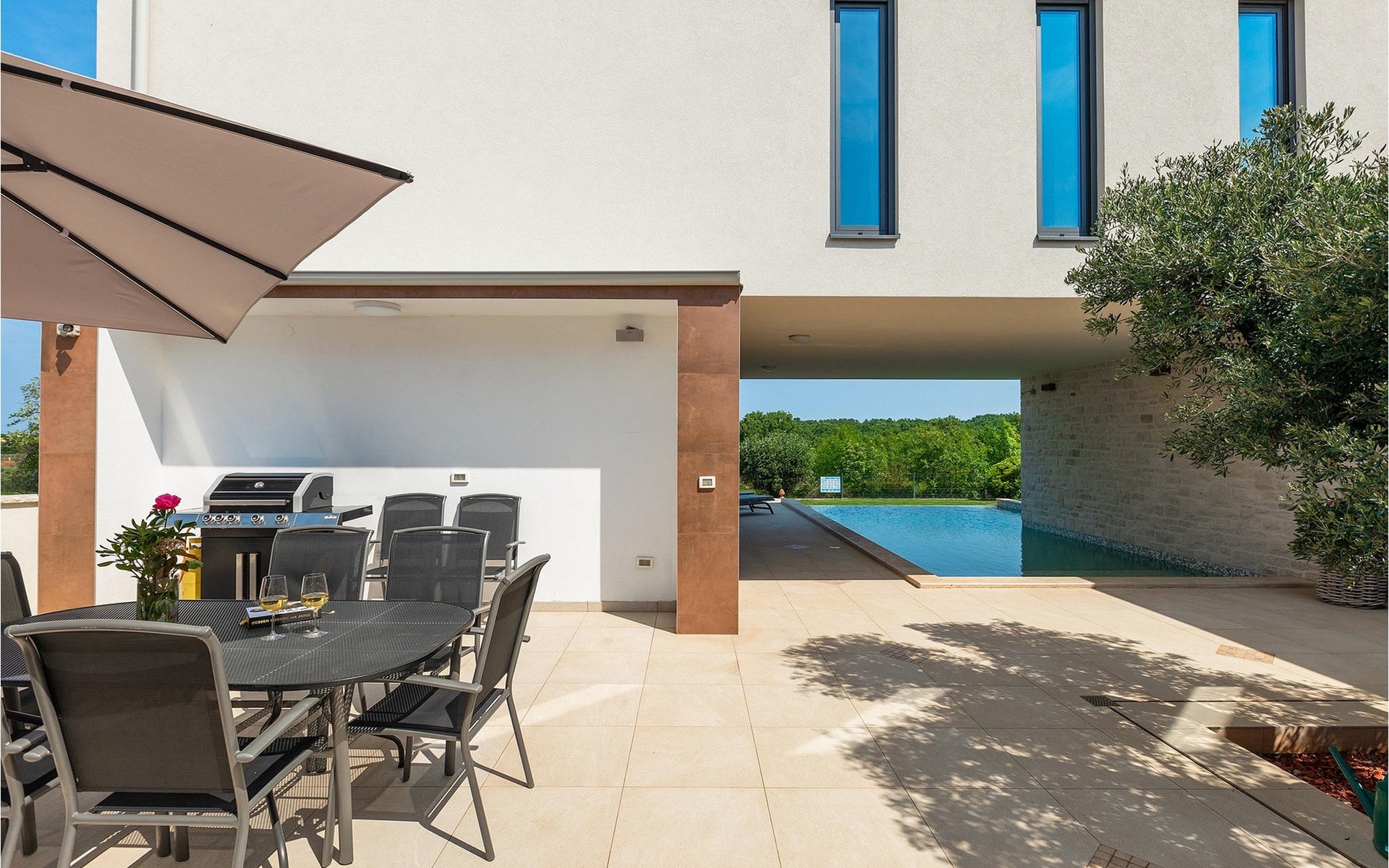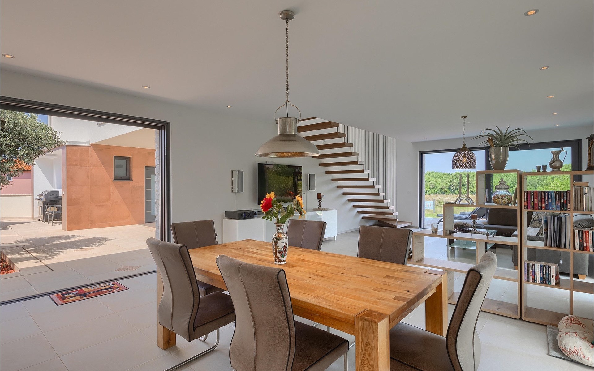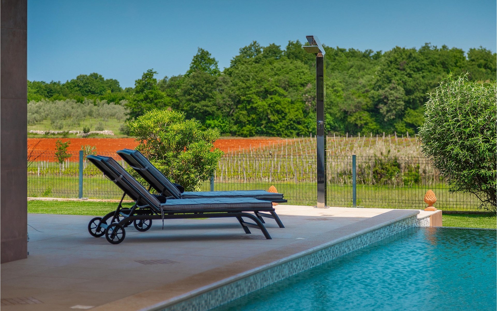 Am Stadtrand von Novigrad an der Westküste Istriens liegt die luxuriöse Villa Felice Novigrad umgeben von grüner Landschaft. Dies ist die Villa, in der Sie Ihren wohlverdienten Urlaub mit Familie und Freunden in vollen Zügen genießen können. Der absolute Hingucker ist neben dem modernen Design der Villa sicherlich der 50m2 große private Pool. Erfrischen Sie sich hier an heißen Sommertagen und lassen Sie die Seele baumeln, während Sie Ihren Blick über die grüne Umgebung schweifen lassen. Entspannen Sie auf einer der Sonnenliegen und tanken Sie die istrische Sonne.